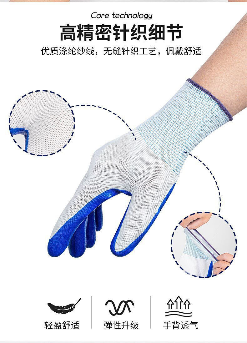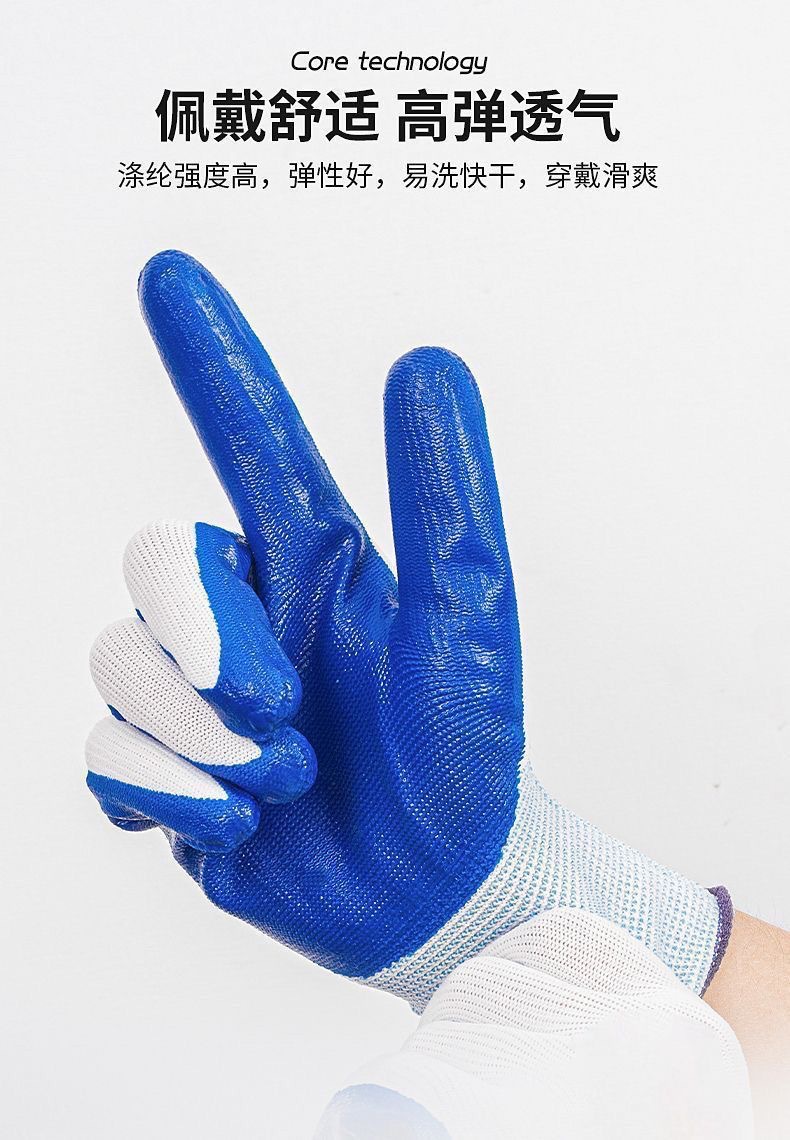 13 핀 나일론 니트릴 장갑 미끄럼 방지 디퍼 사이트 통기성 라텍스 장갑 노동 보호 장갑 Ding Qing 장갑