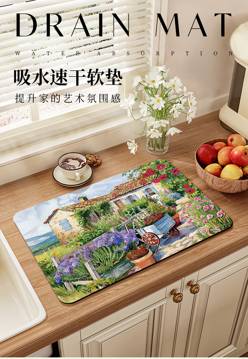 카운터 탑 흡수성 매트 디 아톰 머드 주방 배수 매트 식기 그릇 플레이트 플레이스 워터 컨트롤 매트 바 매트 데스크탑 티 매트