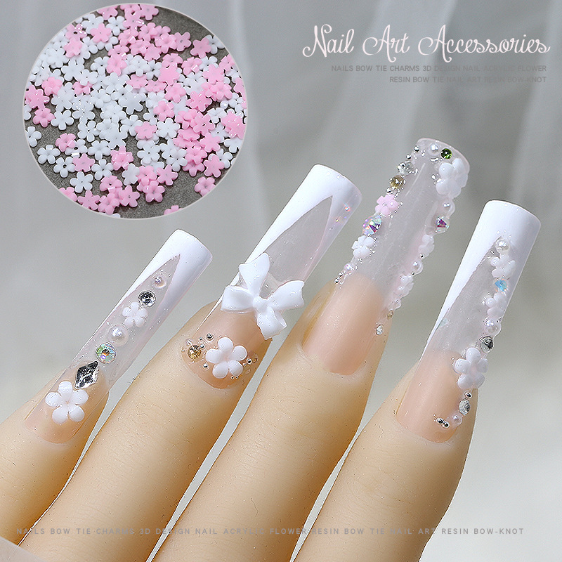 100 그물 붉은 5 꽃잎 꽃 네일 쥬얼리 화이트 핑크 미니 꽃 꽃 수지 diy 3 차원 네일 액세서리