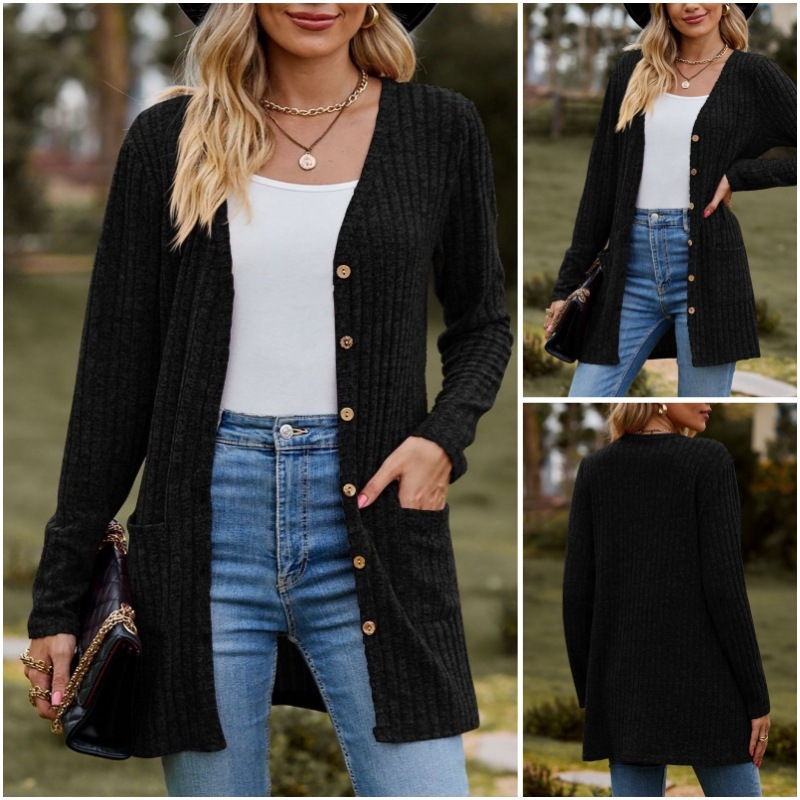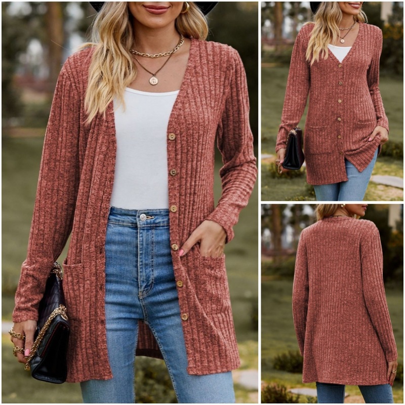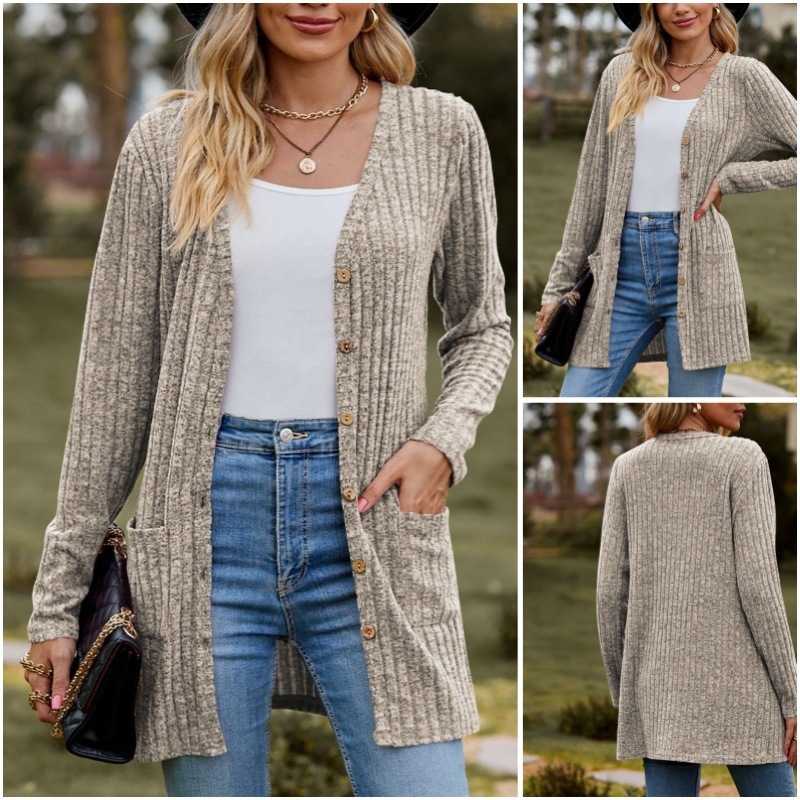 2023 국경 가을 새로운 여성 아마존 여성 샌딩 핏 솔리드 컬러 긴 소매 여성용 카디건 재킷