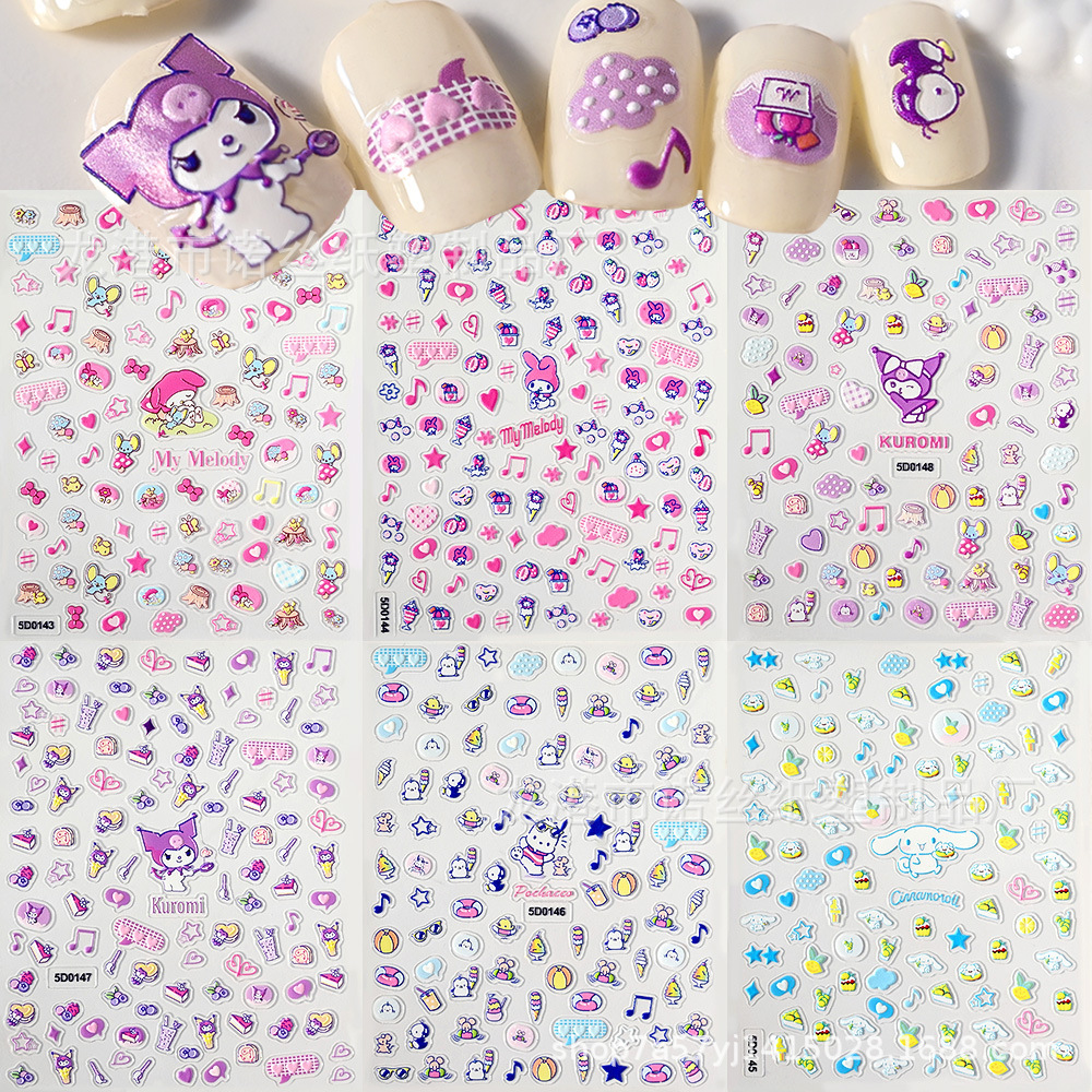 국경 젤리 네일 아트 스티커 3d 네일 스티커 어린이 네일 스티커 빛나는 5D 양각 스티커 네일 아트 공장 도매