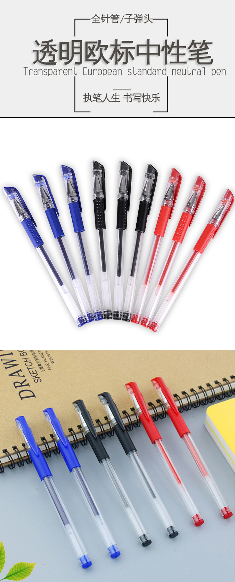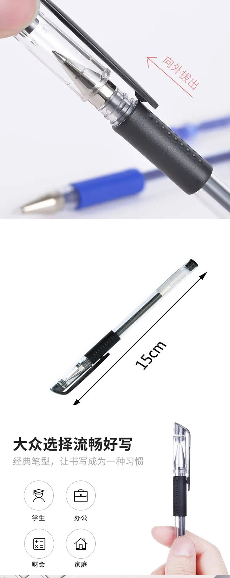유럽 표준 젤 펜 0.5mm 총알 검은 탄소 물 펜 학생 사무실 문구 서명 펜 도매