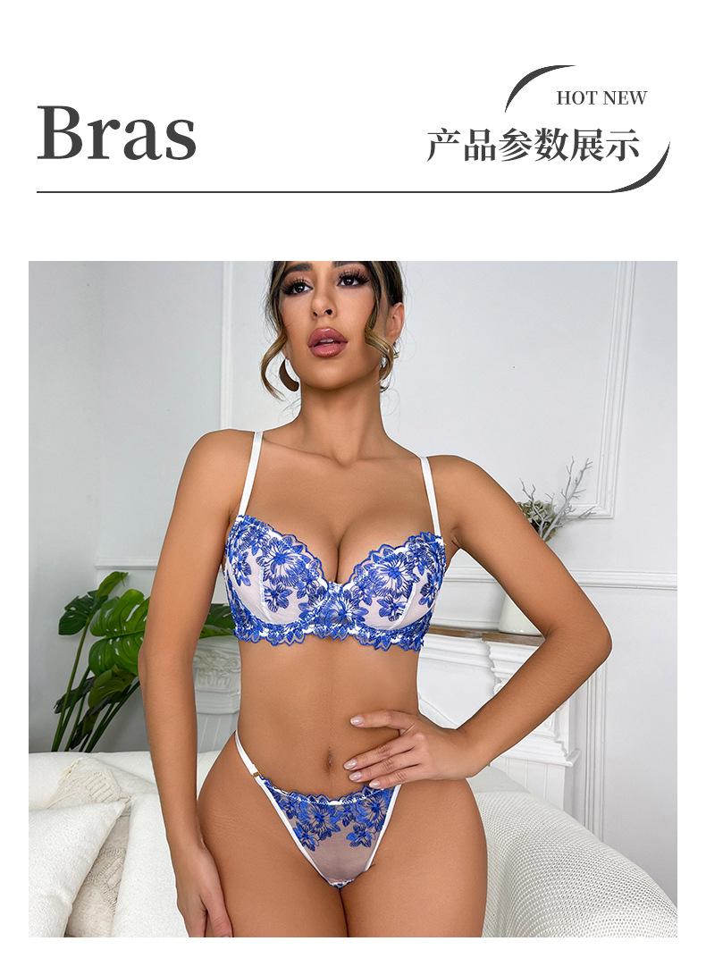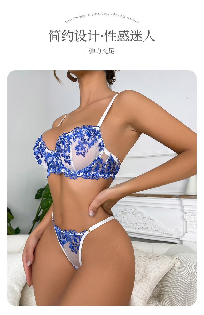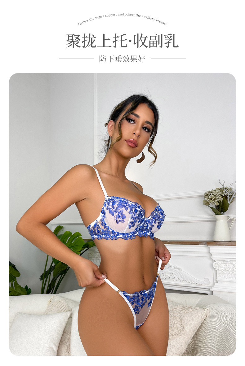 섹시한 블루 컬러의 편안한 속옷 세트, 심플하고 섹시한 레이스 장식의 순수한 욕망 속옷, 유혹적인 란제리