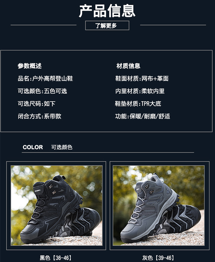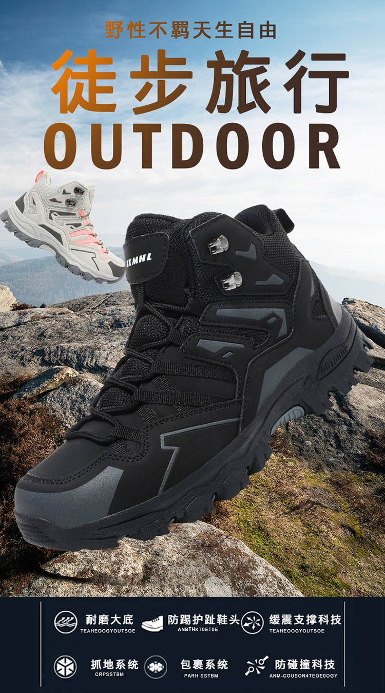 새로운 대외 무역 신발 야외 신발 남성 신발 하이킹 신발 여성 커플 미끄럼 방지 하이킹 신발 하이 탑 여행 운동화