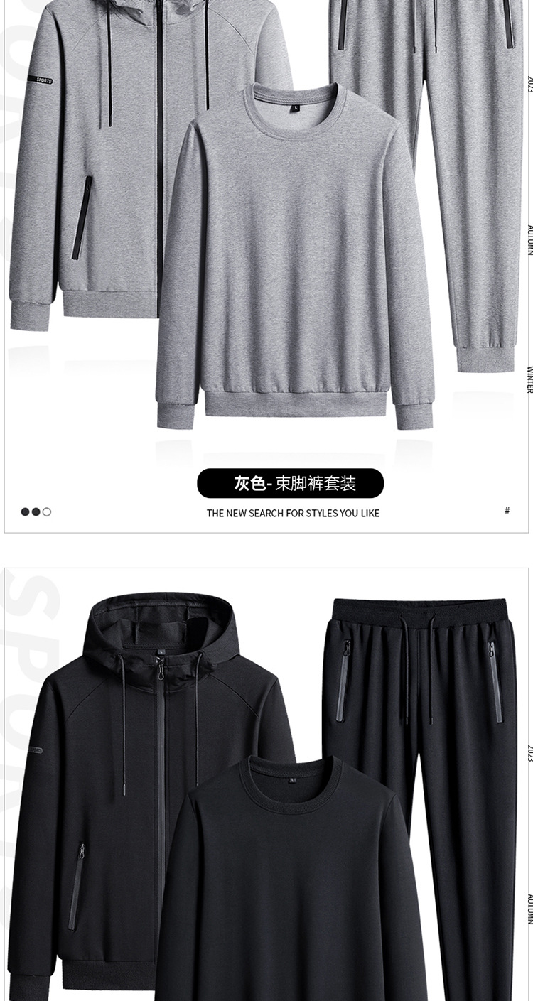봄과 가을 후드 재킷 남자의 느슨한 캐주얼 스포츠 세트 젊고 중년의 느슨한 캐주얼 스웨터 세트