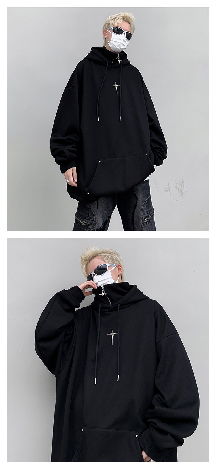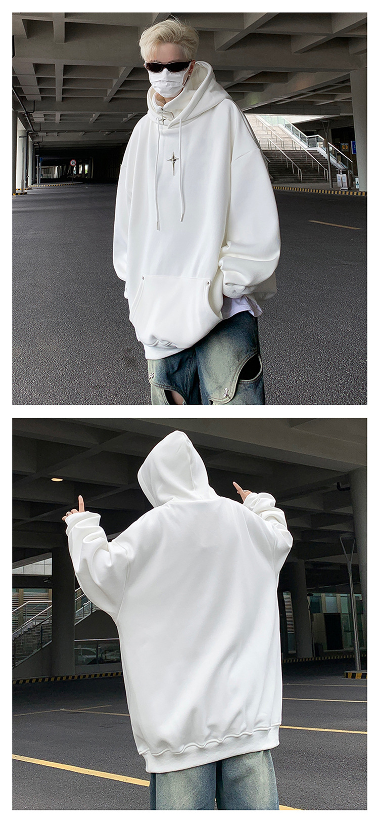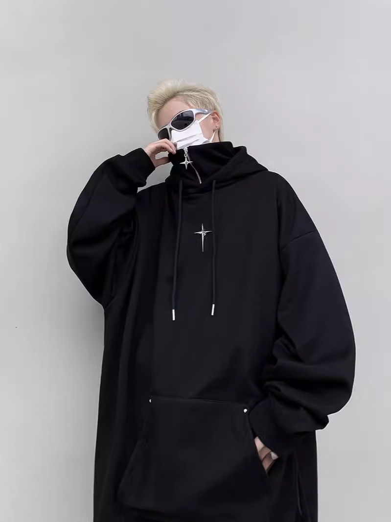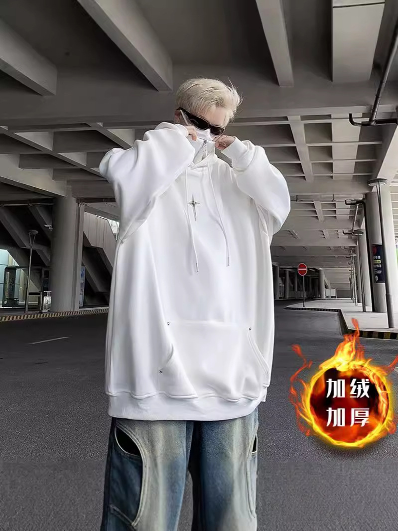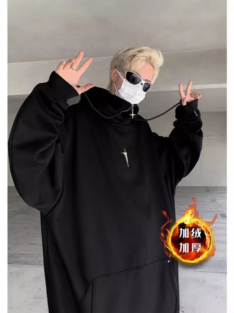 하이 칼라 후드 스웨트 셔츠 남성 기모 겨울 아메리칸 스타일 바이브 하이 스트리트 패션 브랜드 디자인 센스 루즈 하프 지퍼 스웨트 셔츠