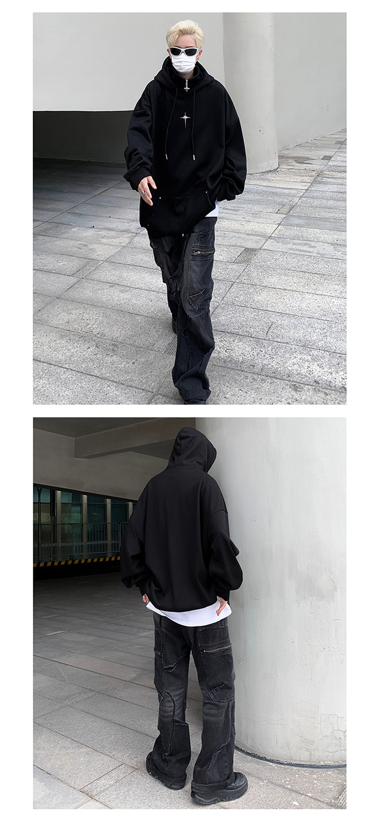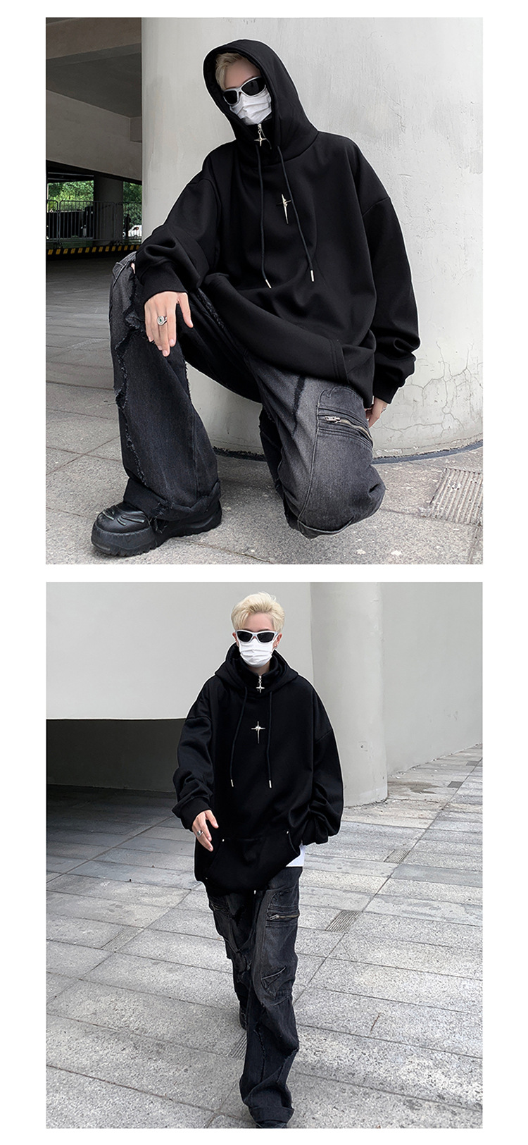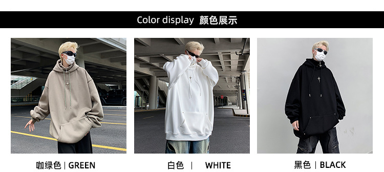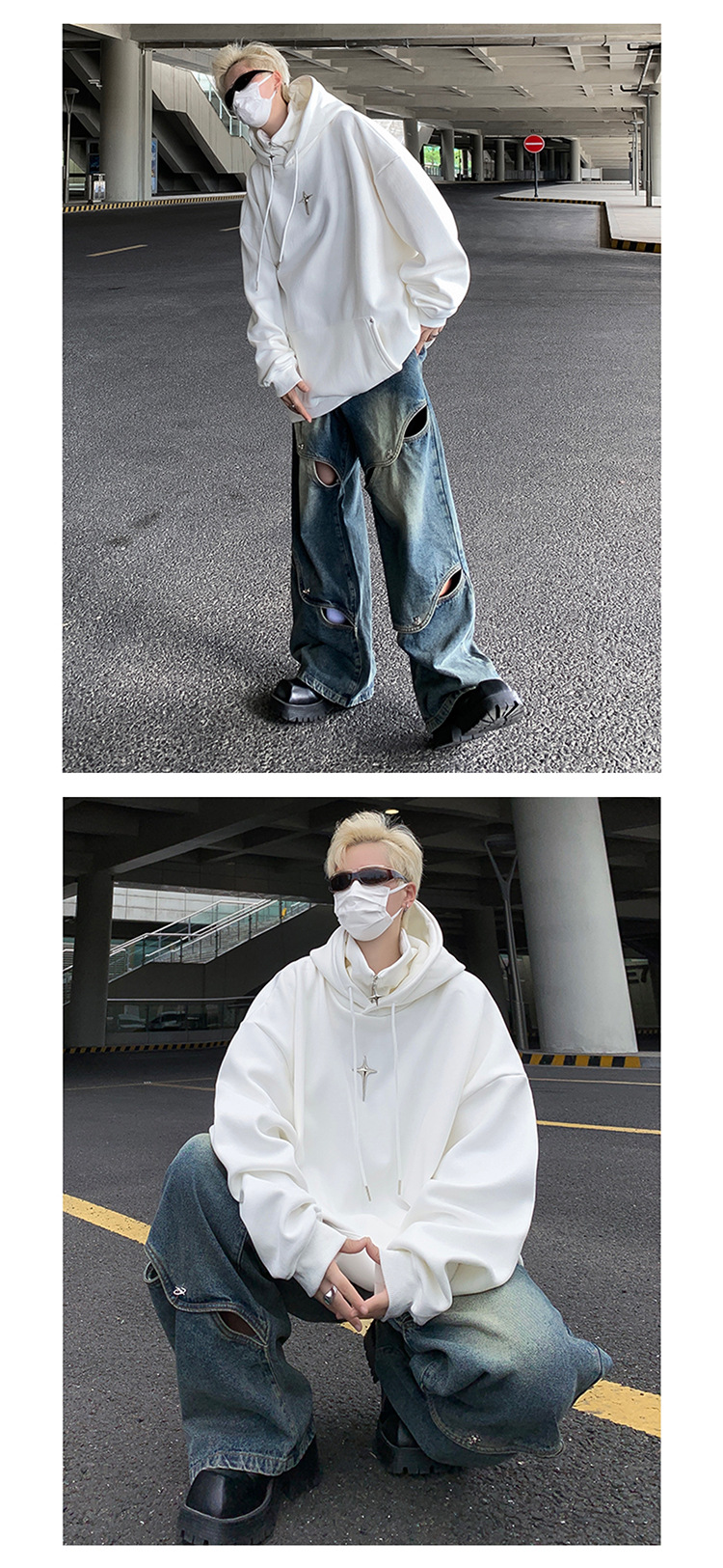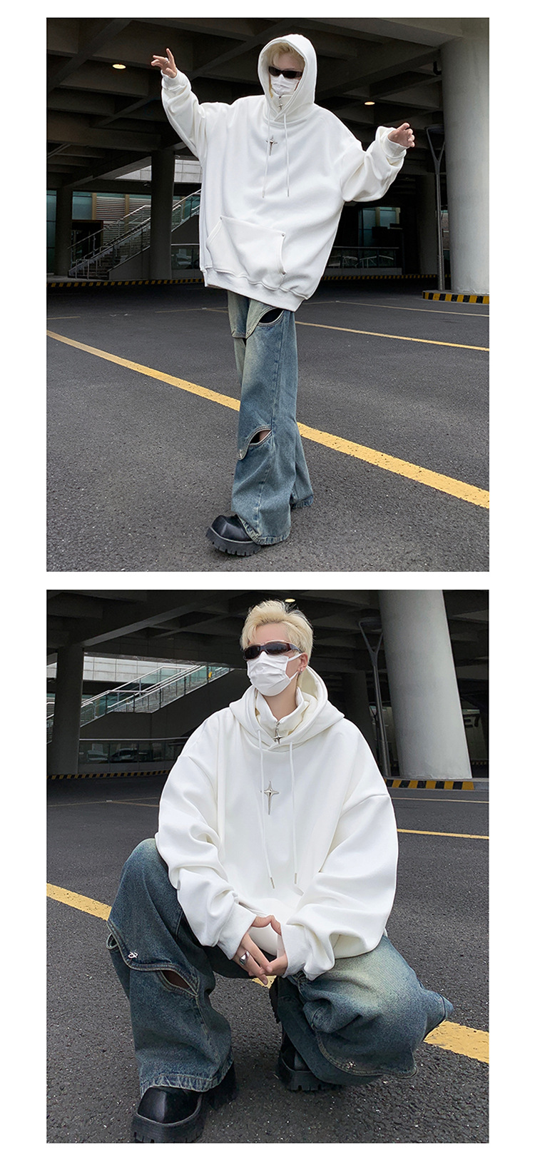 하이 칼라 후드 스웨트 셔츠 남성 기모 겨울 아메리칸 스타일 바이브 하이 스트리트 패션 브랜드 디자인 센스 루즈 하프 지퍼 스웨트 셔츠