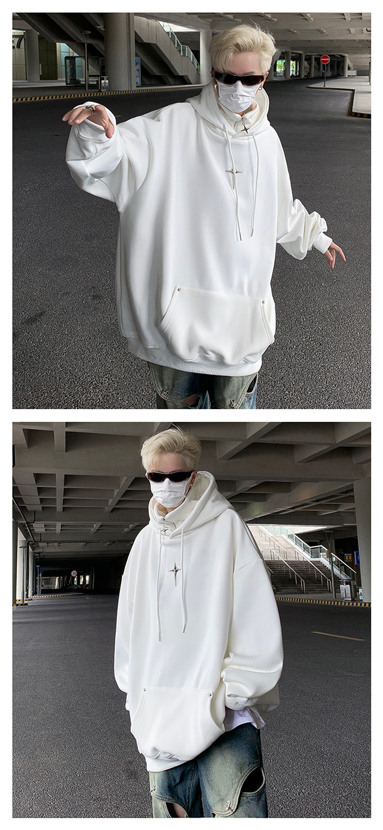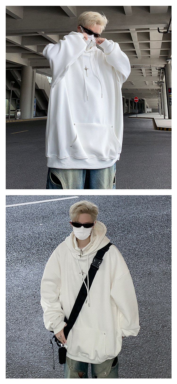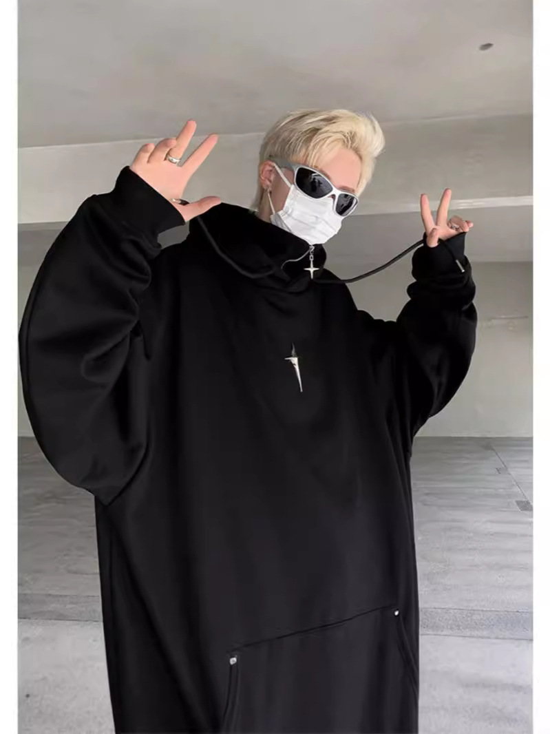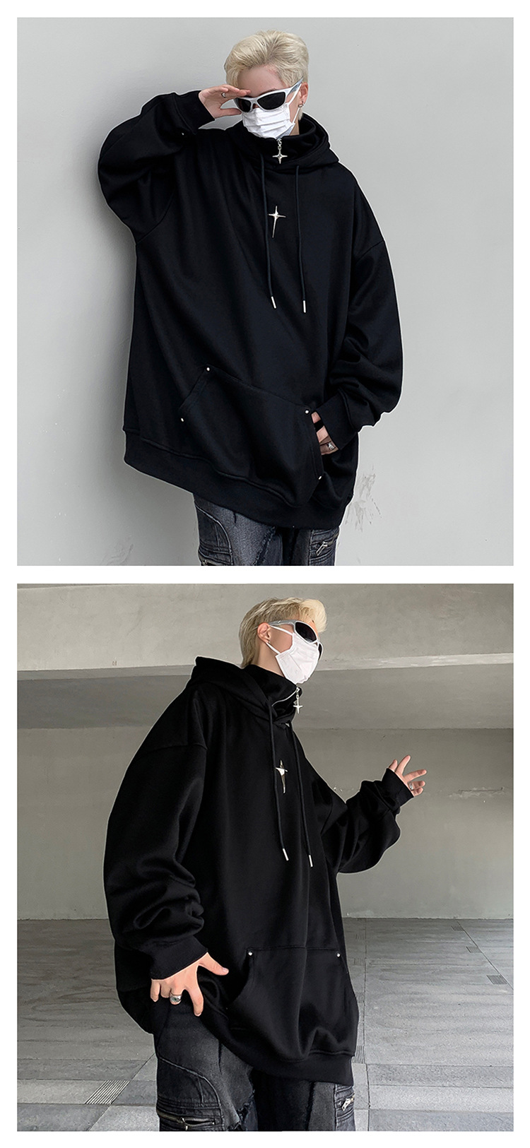 하이 칼라 후드 스웨트 셔츠 남성 기모 겨울 아메리칸 스타일 바이브 하이 스트리트 패션 브랜드 디자인 센스 루즈 하프 지퍼 스웨트 셔츠