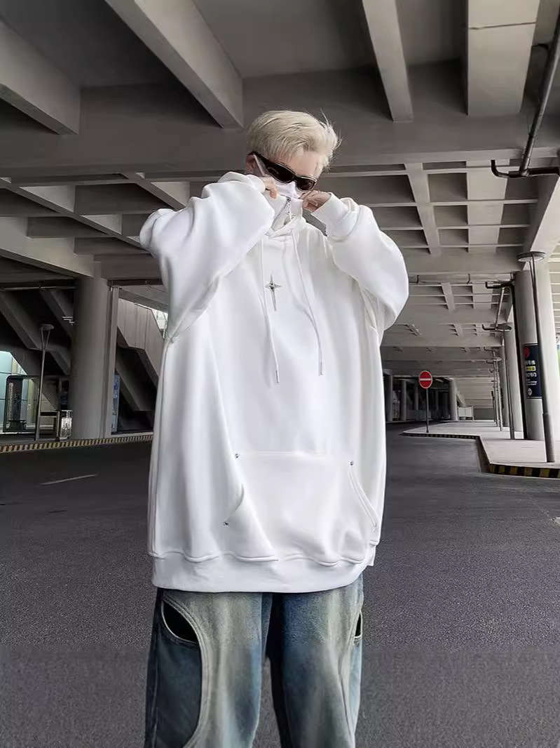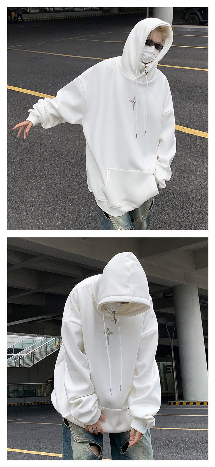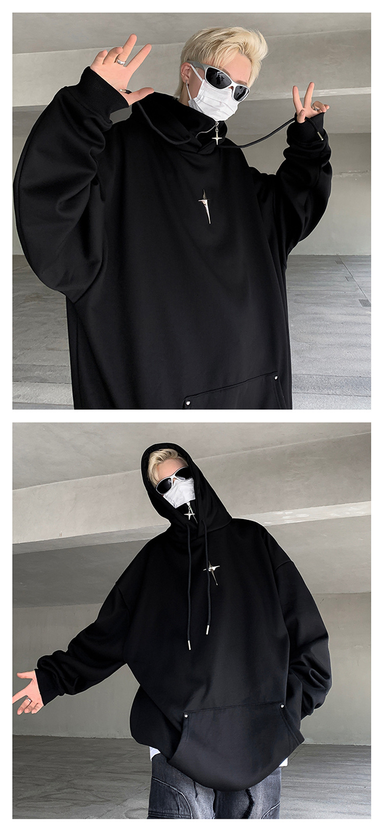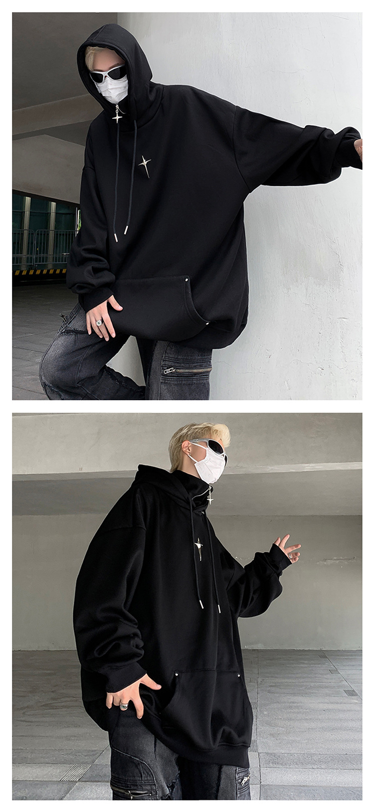 하이 칼라 후드 스웨트 셔츠 남성 기모 겨울 아메리칸 스타일 바이브 하이 스트리트 패션 브랜드 디자인 센스 루즈 하프 지퍼 스웨트 셔츠