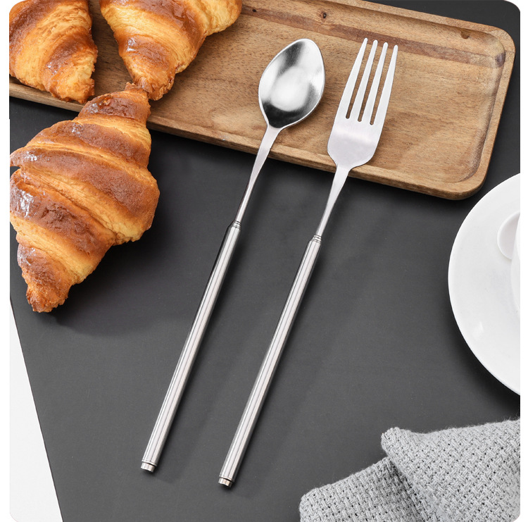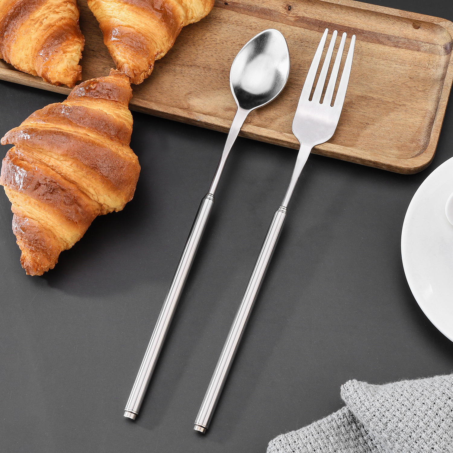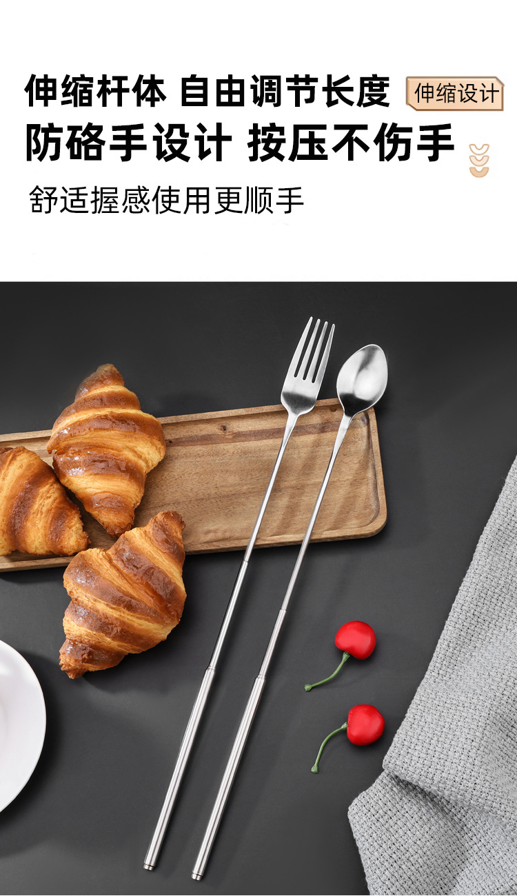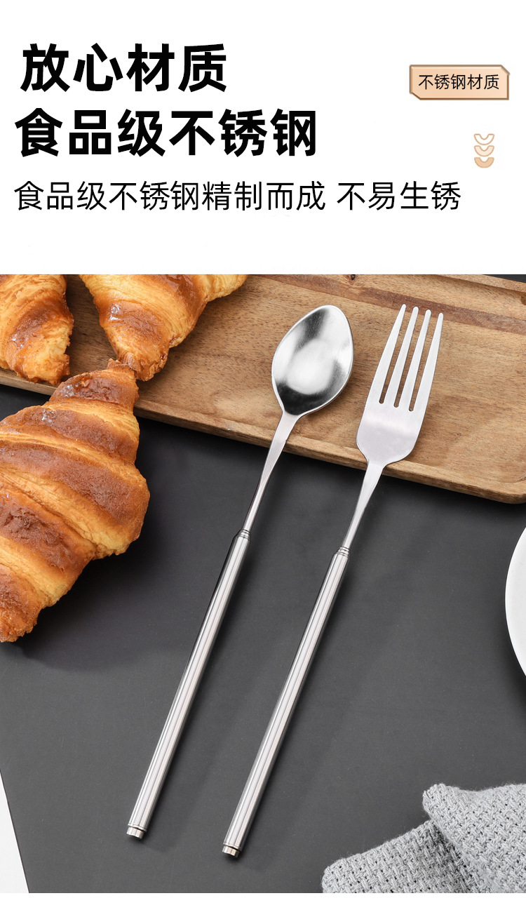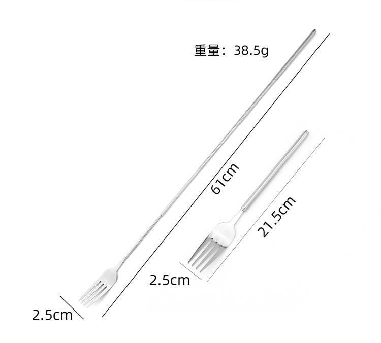 공장 현장 고품질 일체형 용접 스테인레스 스틸 텔레스코픽 서양 음식 포크와 스푼 휴대용 식기 슈퍼 롱 포크와 스푼 유물