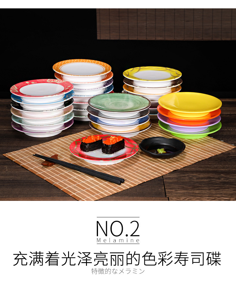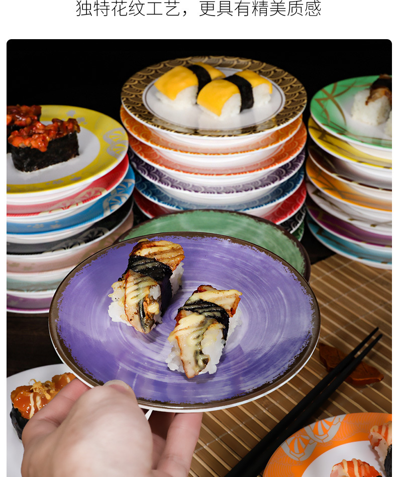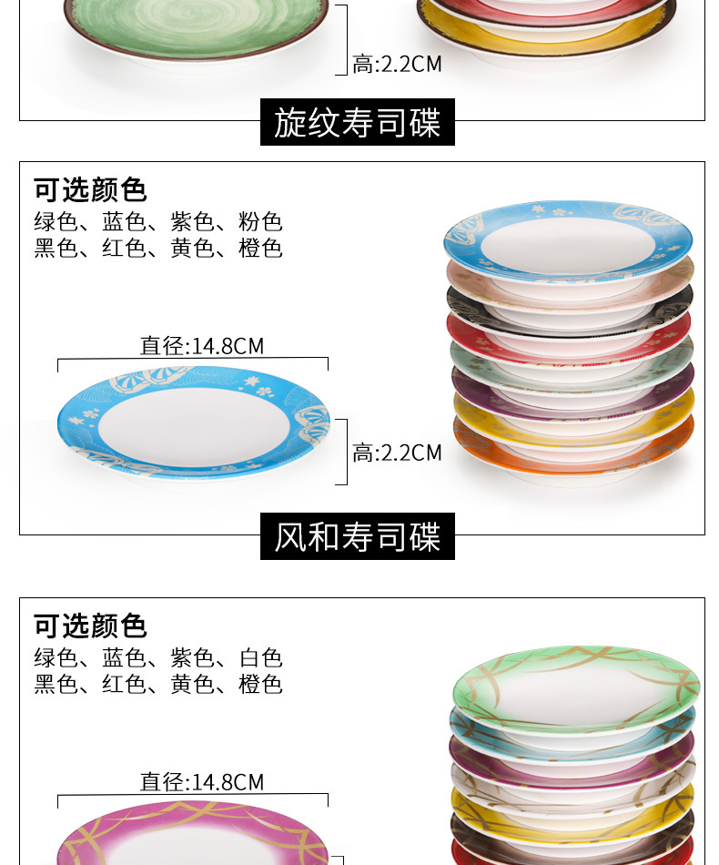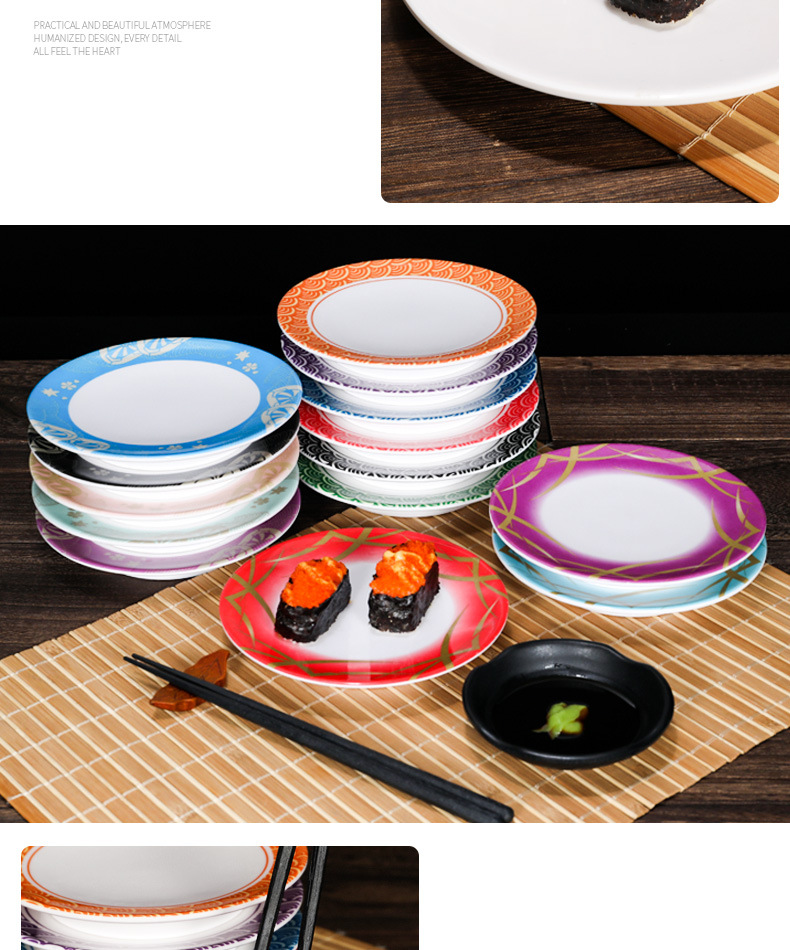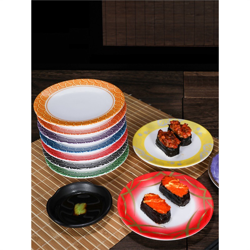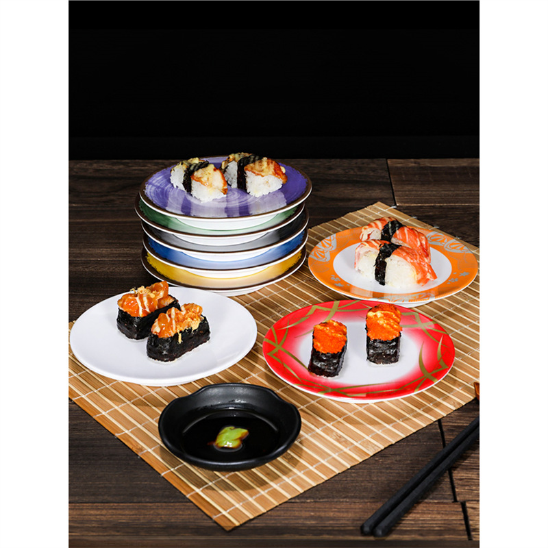 멜라민 모조 도자기 회전식 스시 접시, 스낵 플라스틱 창의적인 스시 접시, 특별한 일본식 요리용 두꺼운 회오리바람 접시