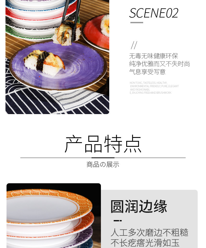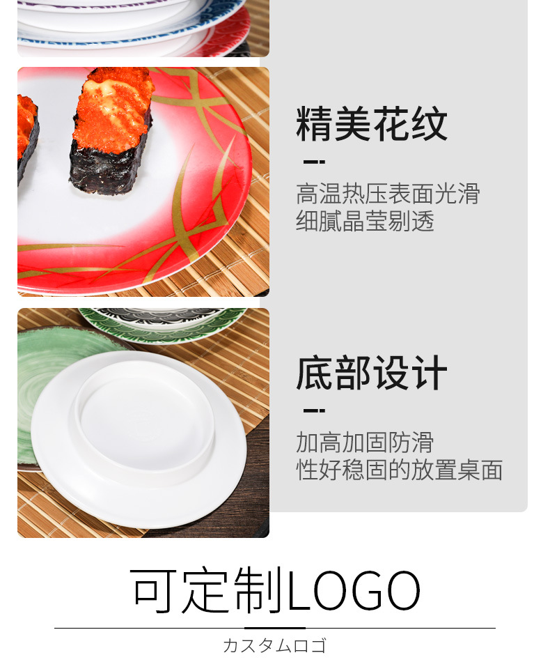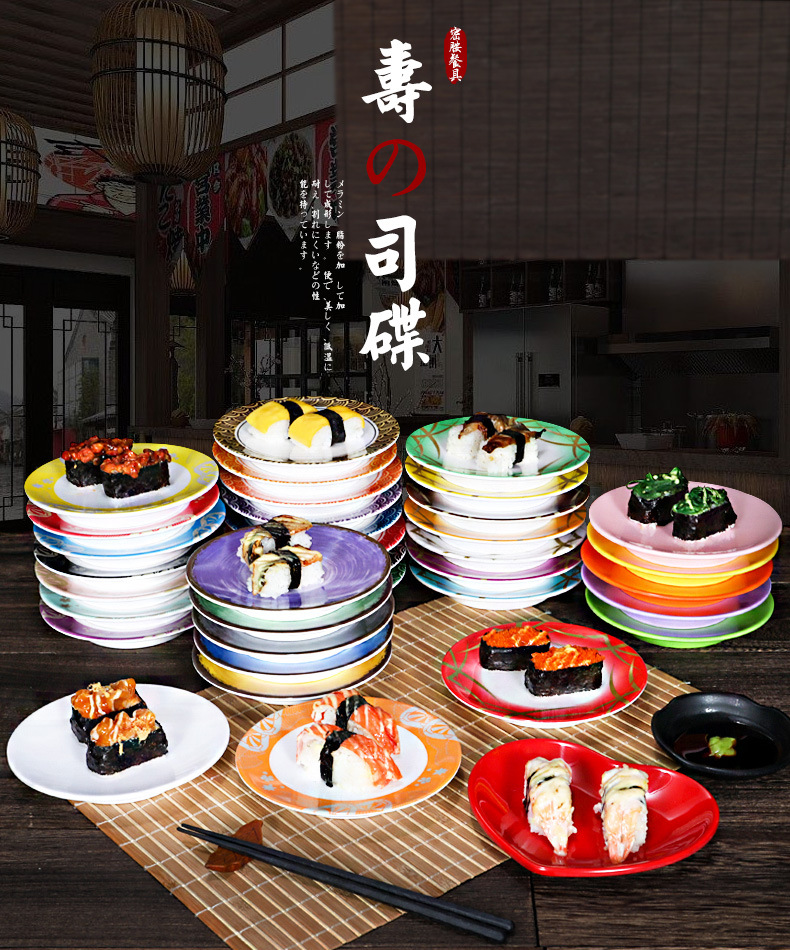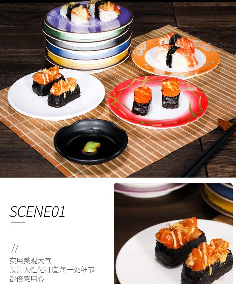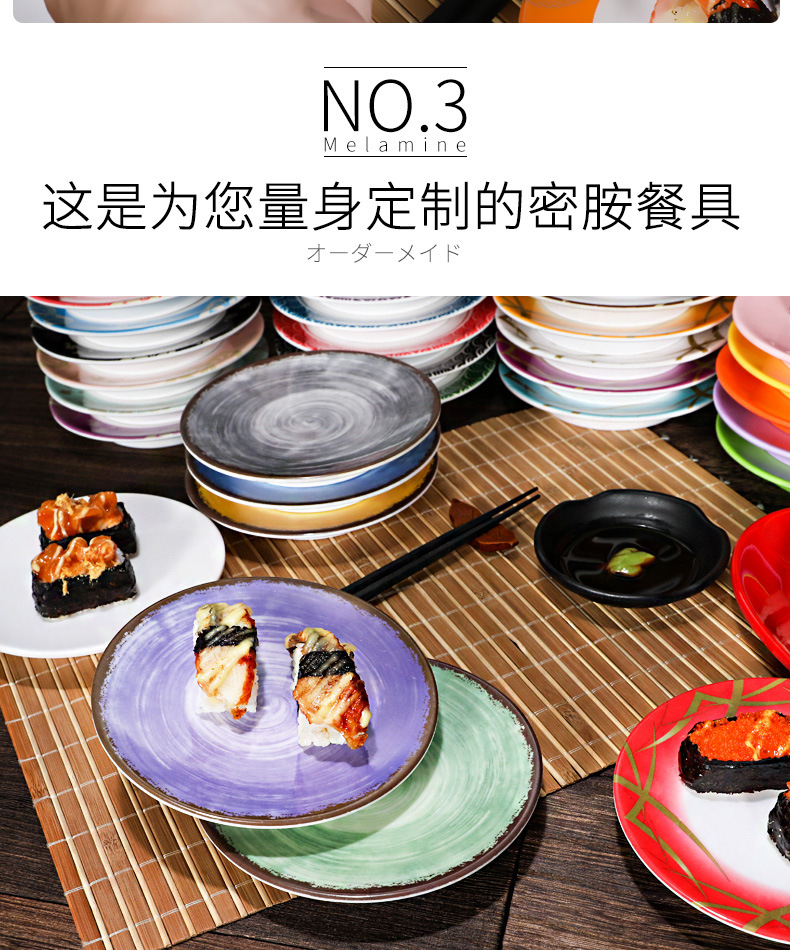 멜라민 모조 도자기 회전식 스시 접시, 스낵 플라스틱 창의적인 스시 접시, 특별한 일본식 요리용 두꺼운 회오리바람 접시