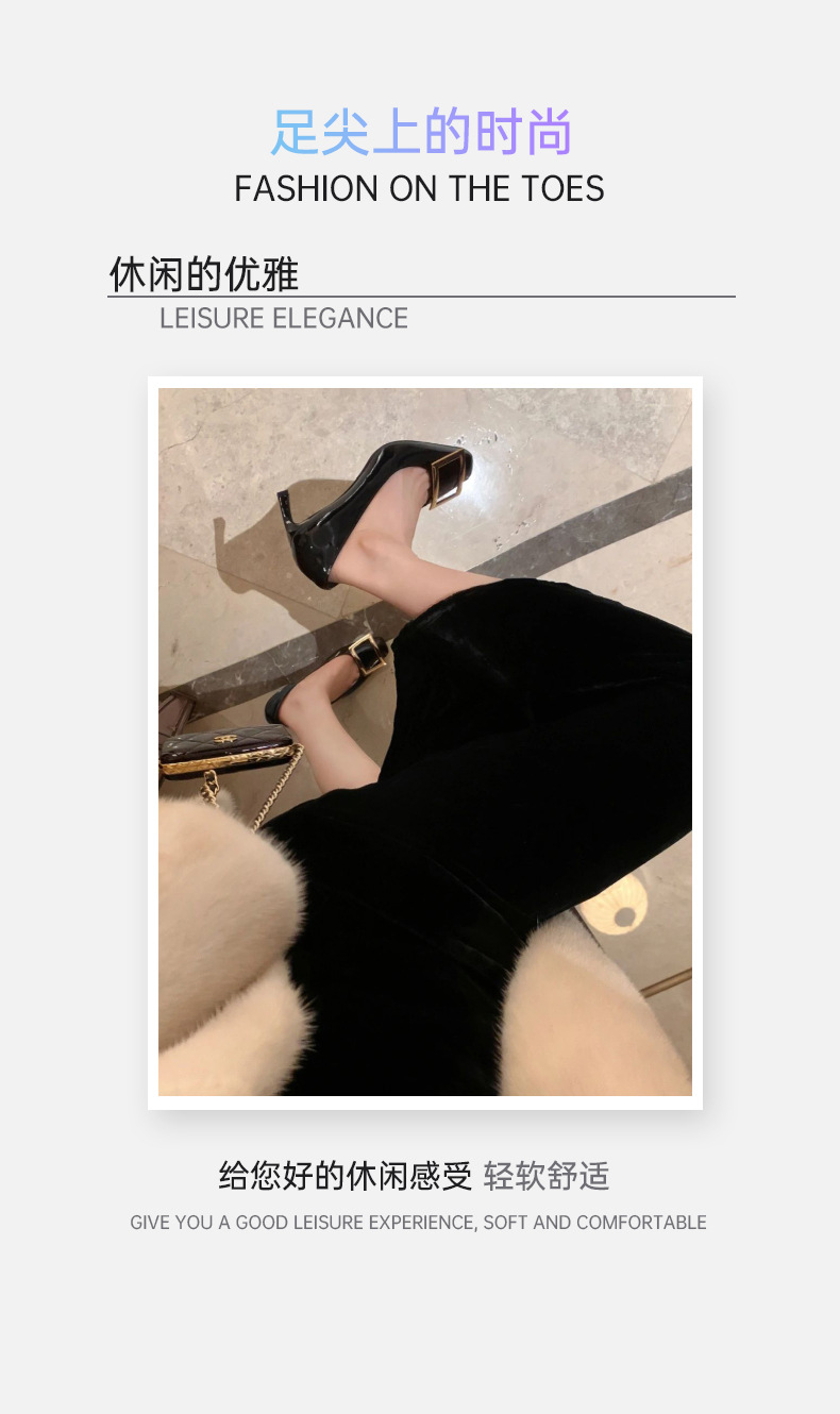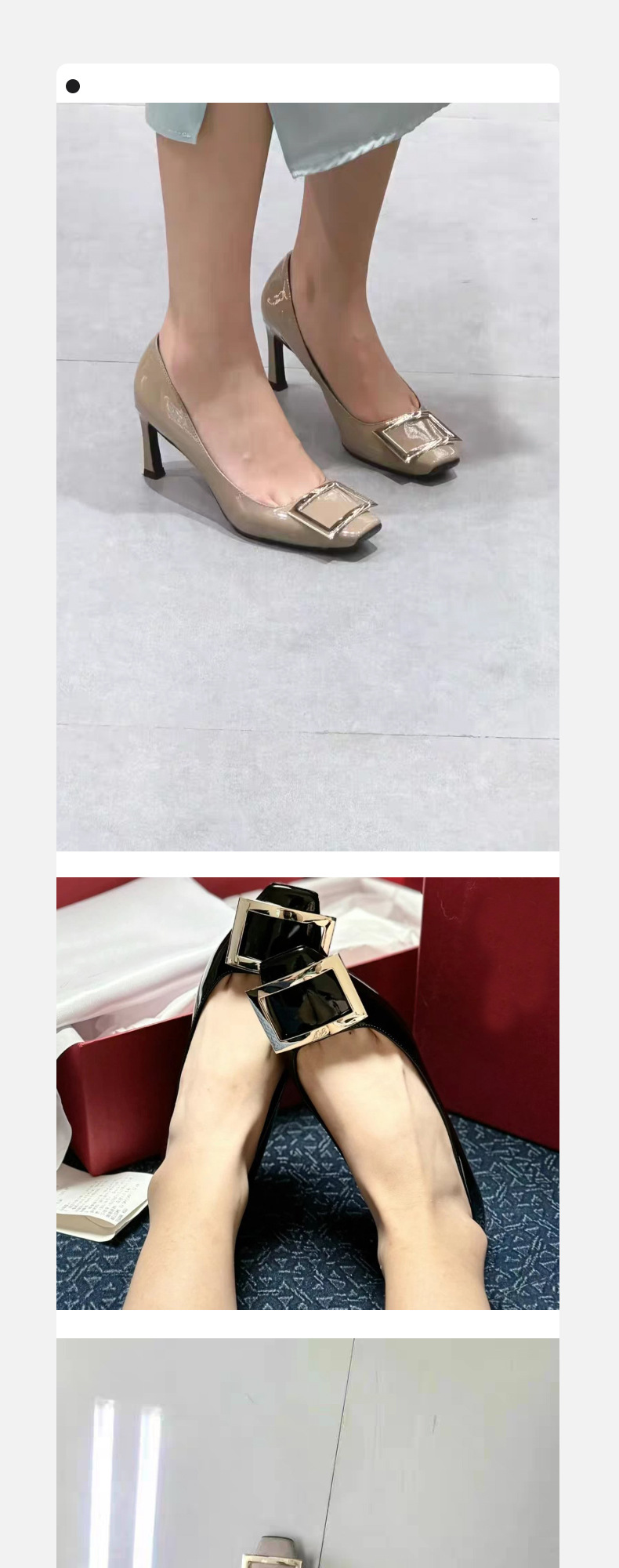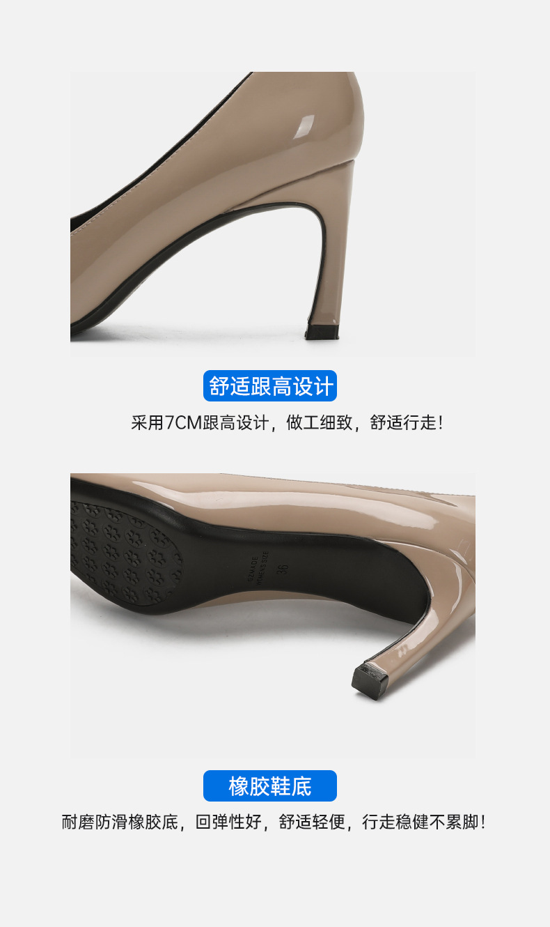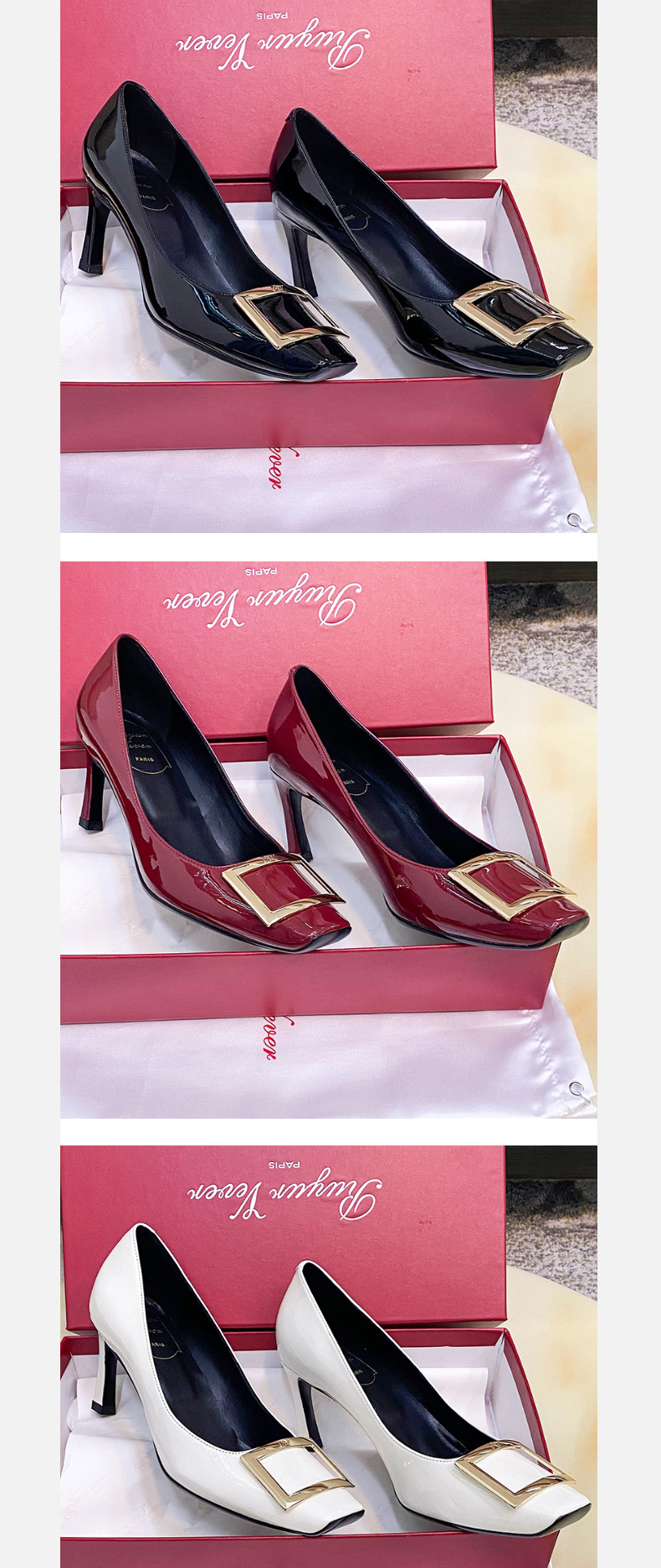 2026년 초봄 신상 rv 페이턴트 가죽 사각 버클 하이힐, 직장 출퇴근용 ol 얕은굽 소가죽 여성화, 원피스 드롭쉬핑