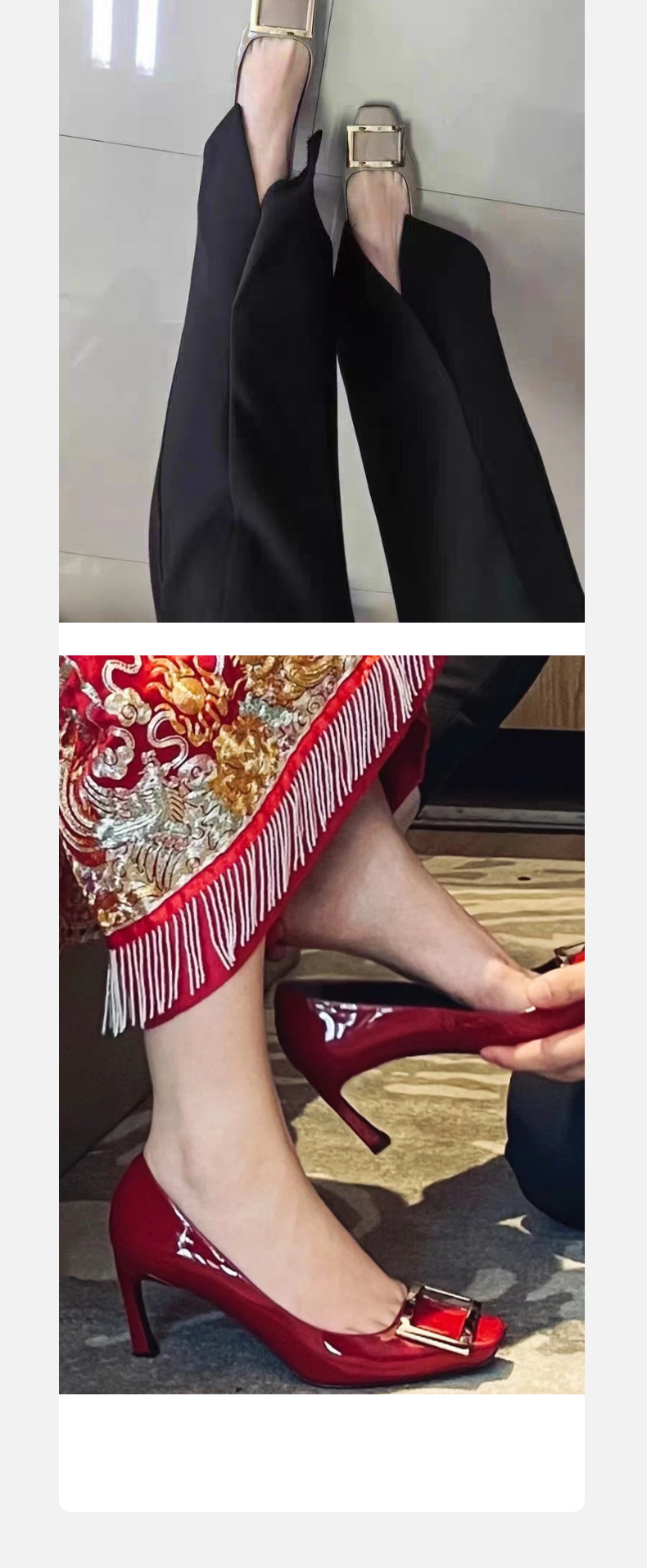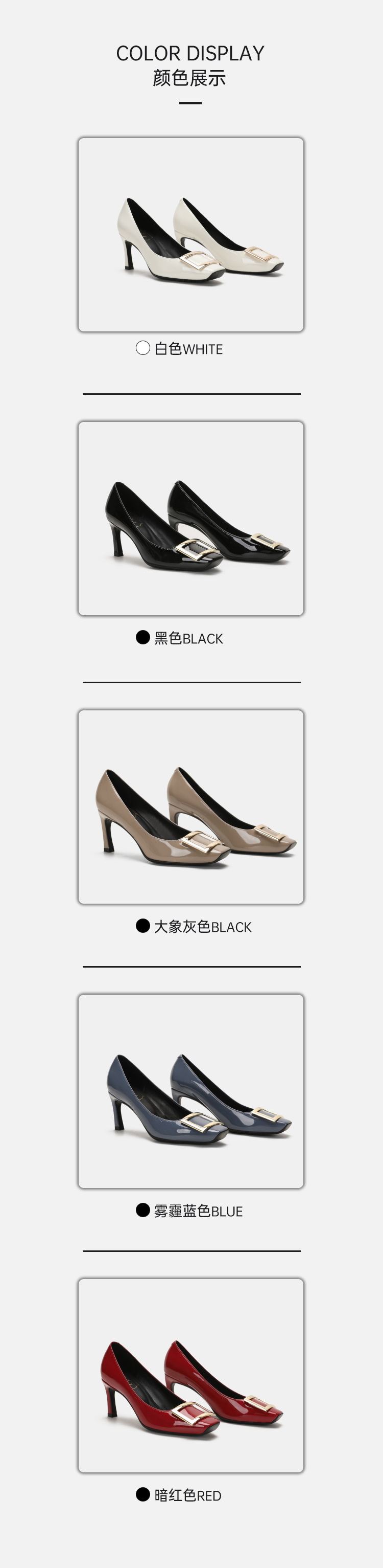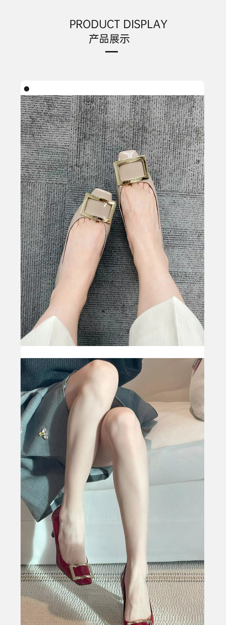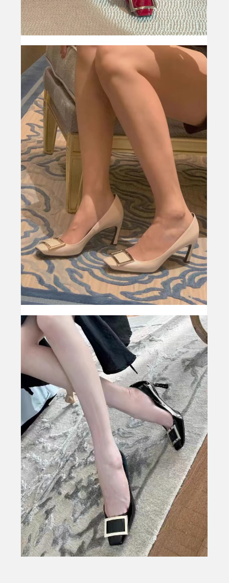2026년 초봄 신상 rv 페이턴트 가죽 사각 버클 하이힐, 직장 출퇴근용 ol 얕은굽 소가죽 여성화, 원피스 드롭쉬핑