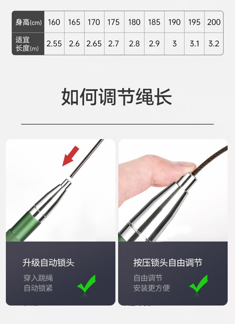 피트니스 장비, 피트니스 줄넘기, 어린이 줄넘기, 학생 줄넘기, 자동 잠금 줄넘기, 스포츠 줄넘기, 경주 줄넘기
