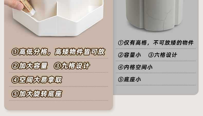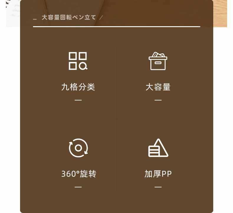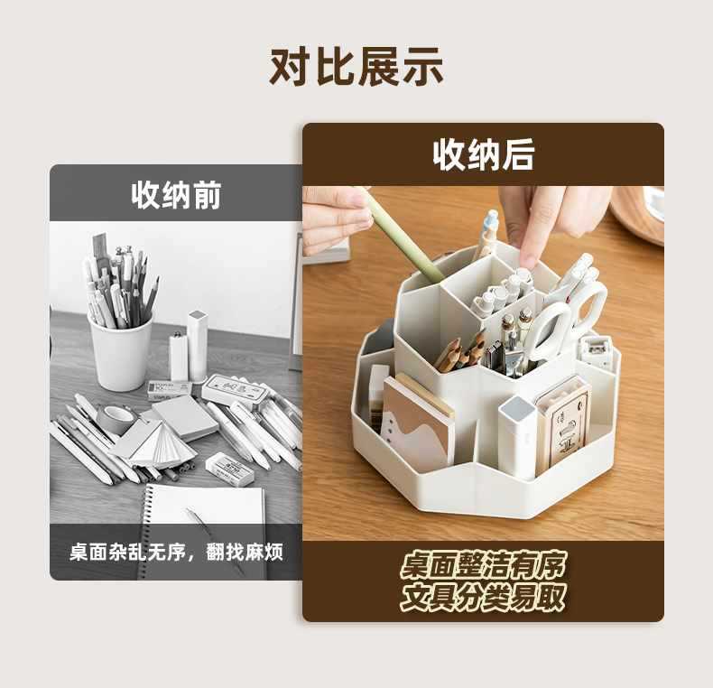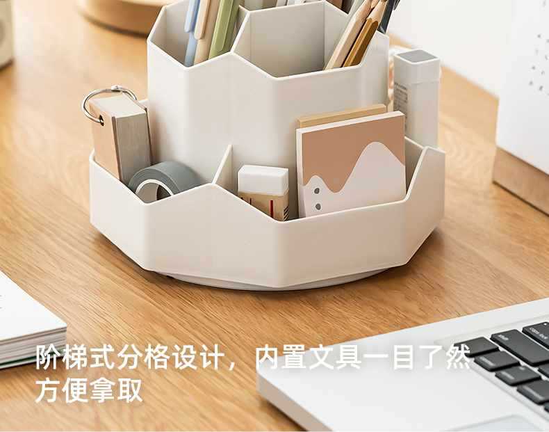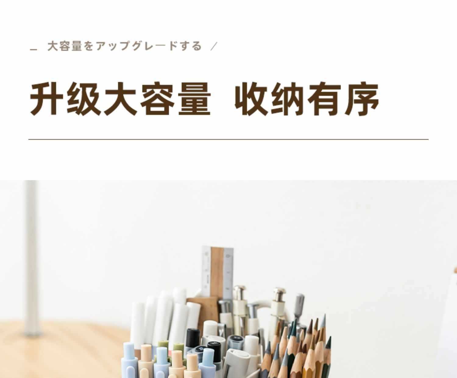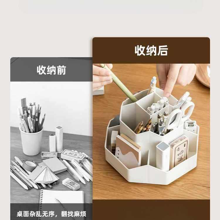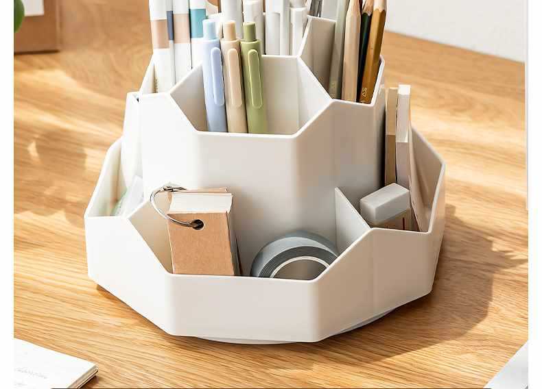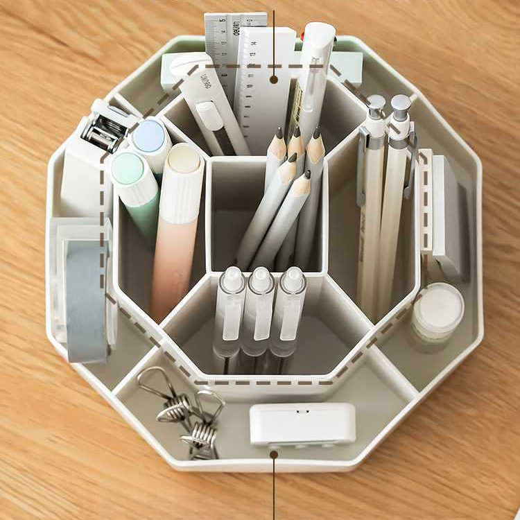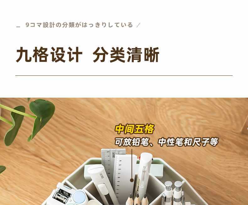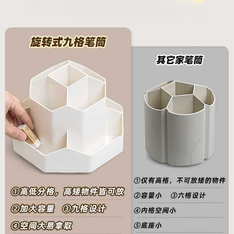 새로 업그레이드 된 9 그리드 대용량 회전 펜 홀더 저장 상자 사무실 학생 데스크탑 문구 보관 조명 고급 느낌