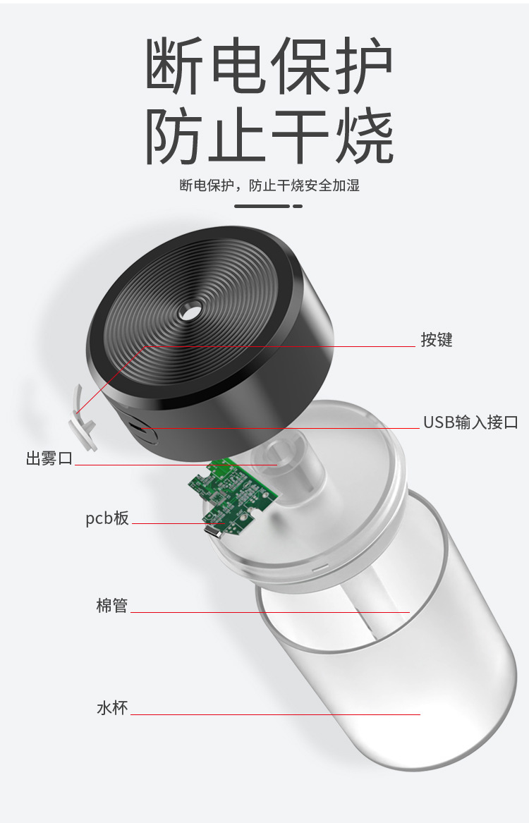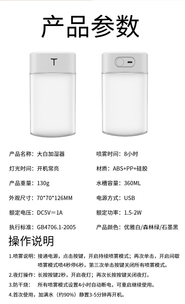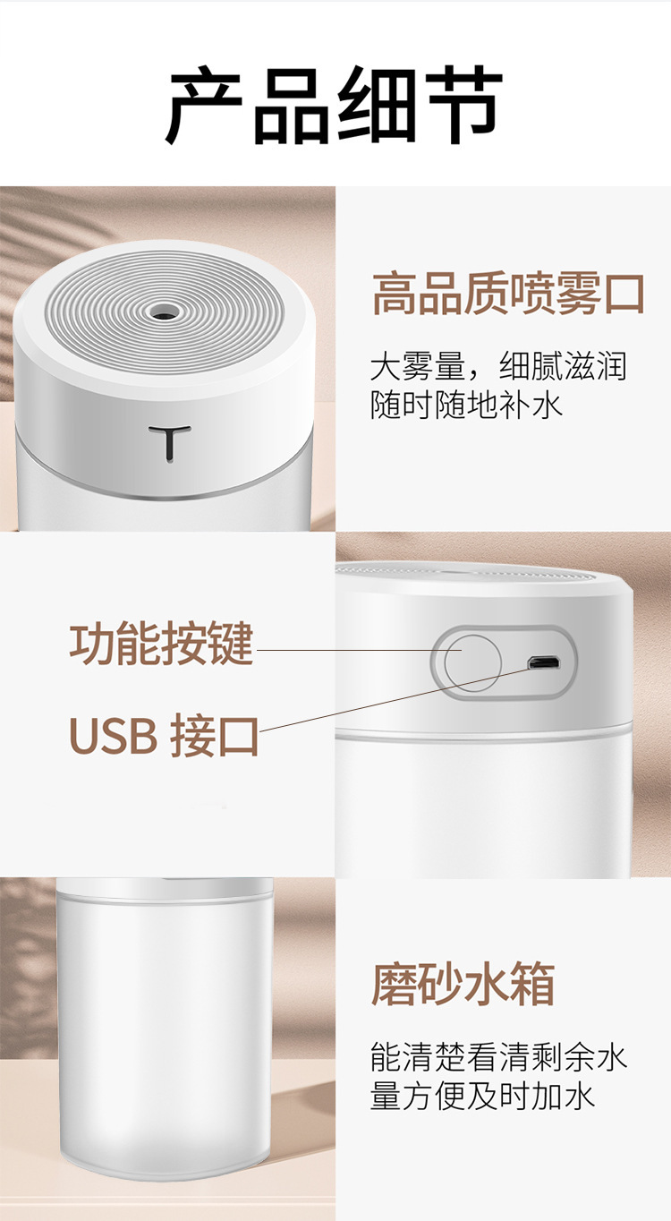 국경을 넘는 신제품 USB 무소음 대형 화이트 가습기 창의적인 휴대용 미스트 분무기 대용량 미니 컴팩트 데스크탑