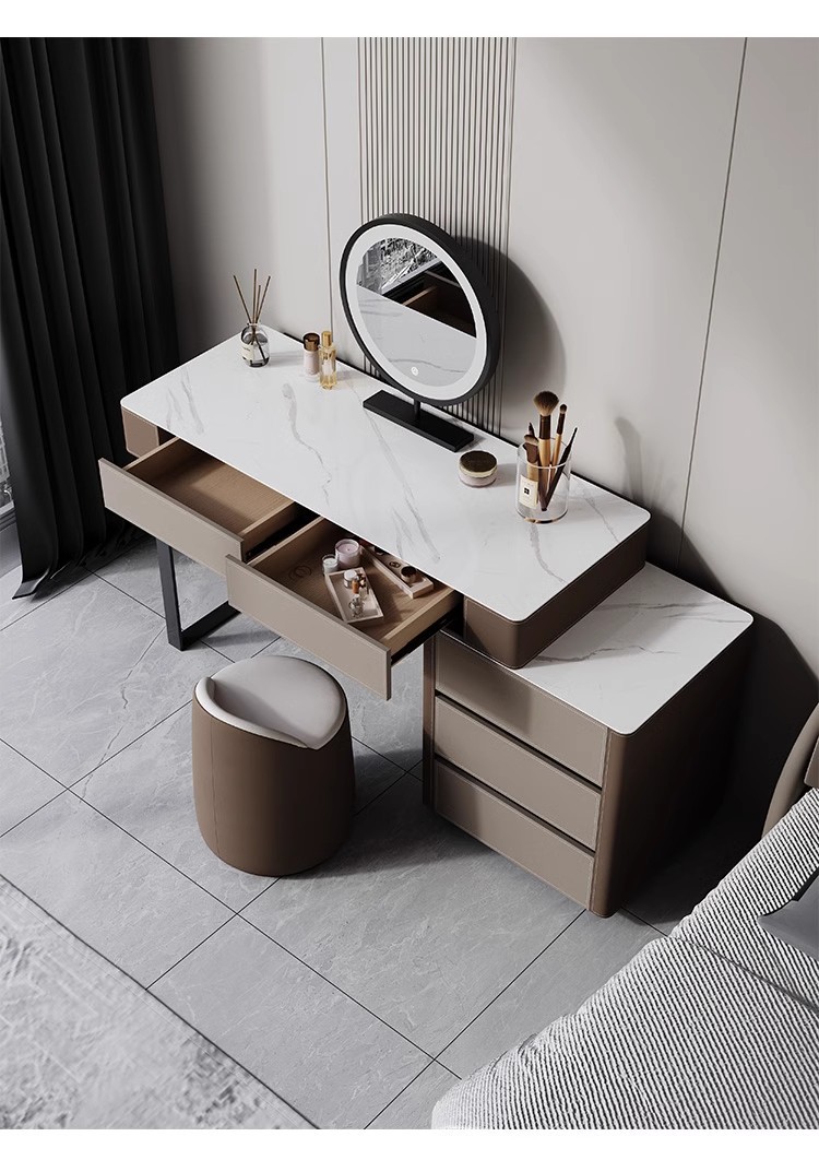 이탈리아 빛 럭셔리 인터넷 유행 작은 아파트 바위 패널 메이크업 테이블 저장 내각 통합 안장 가죽 간단한 현대 드레싱 테이블