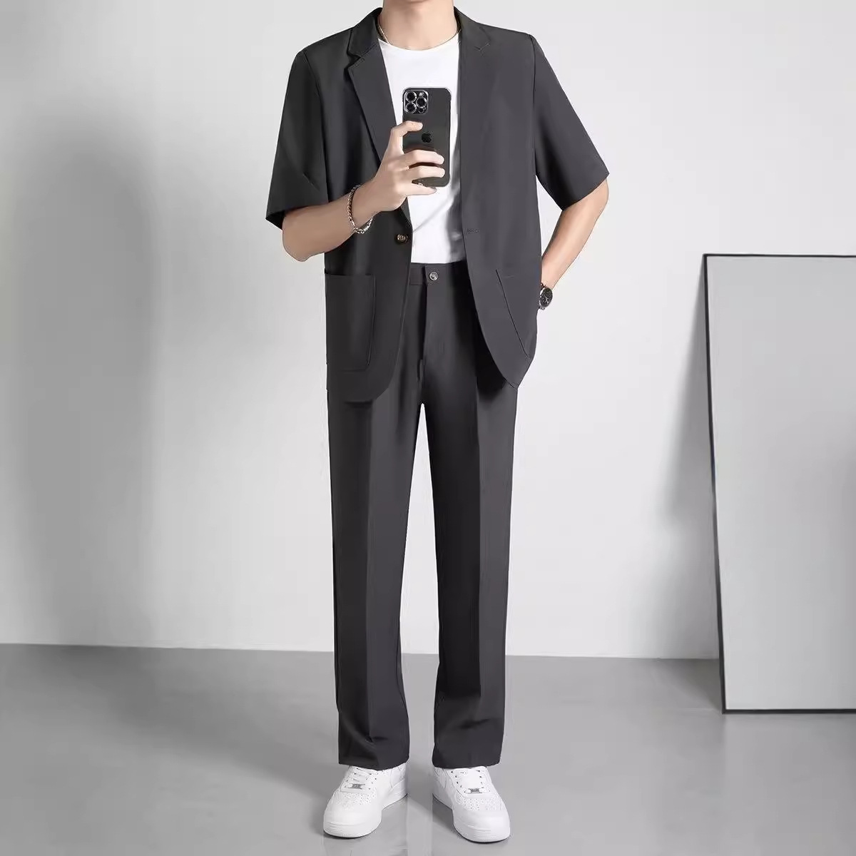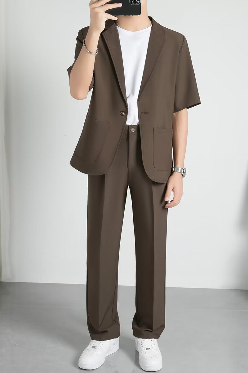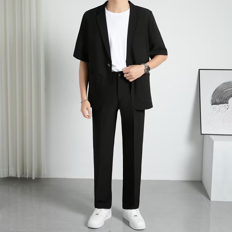 여름 새로운 패션 잘 생긴 반팔 세트 남자 세트 남자 반팔 캐주얼 세트 여름 얇은 세트