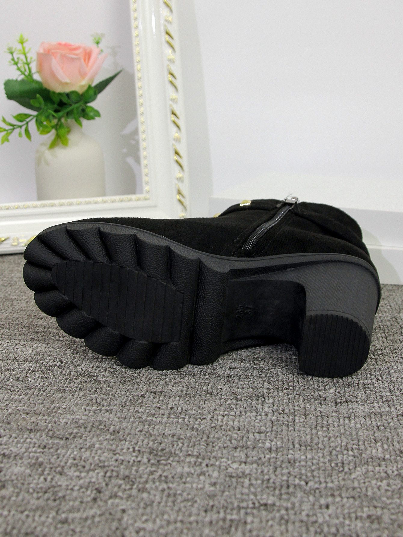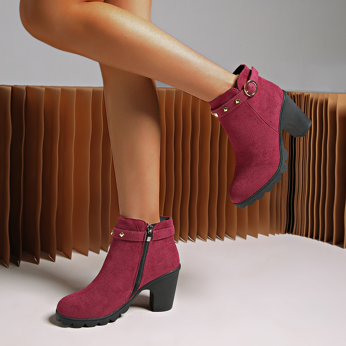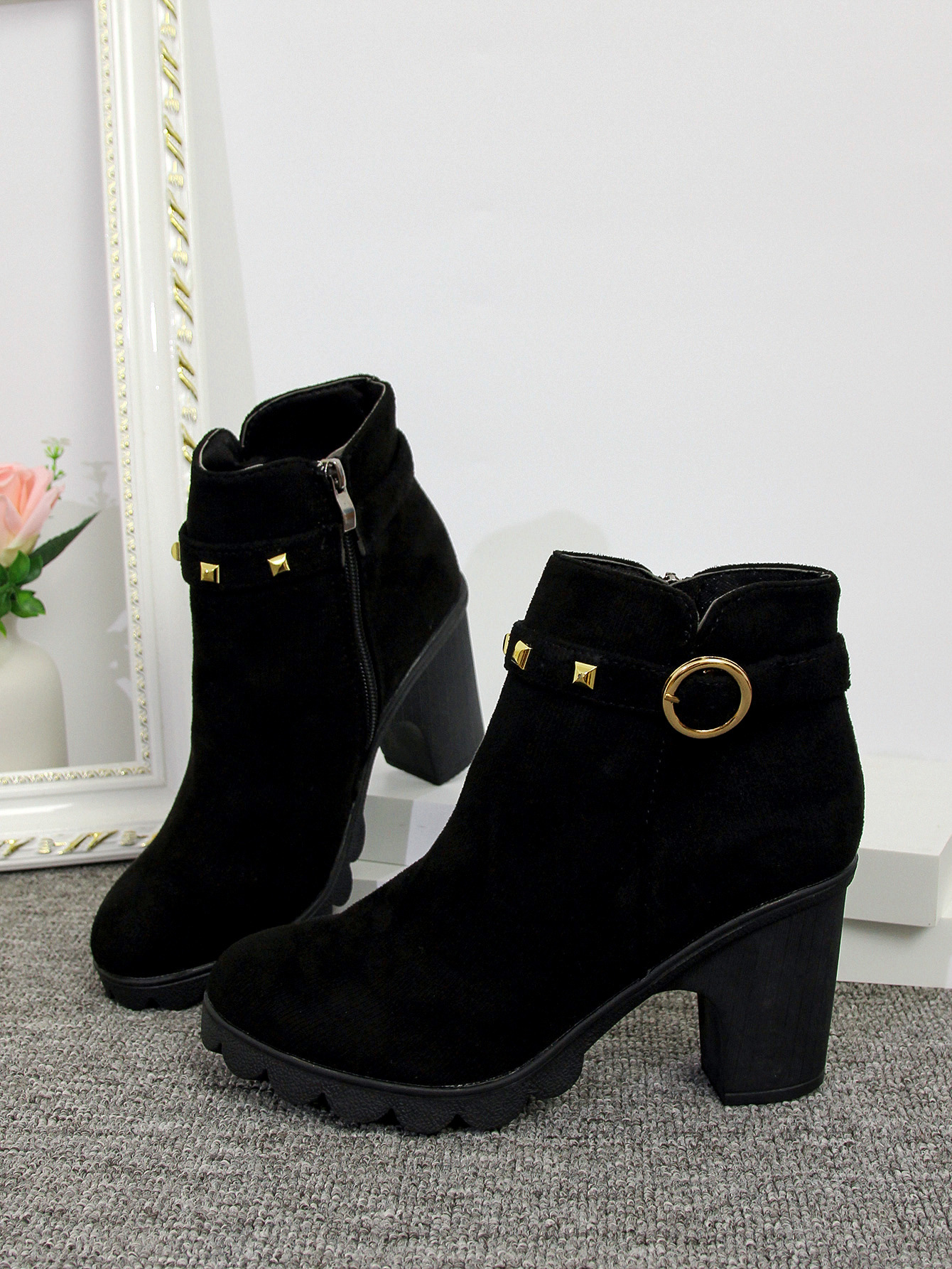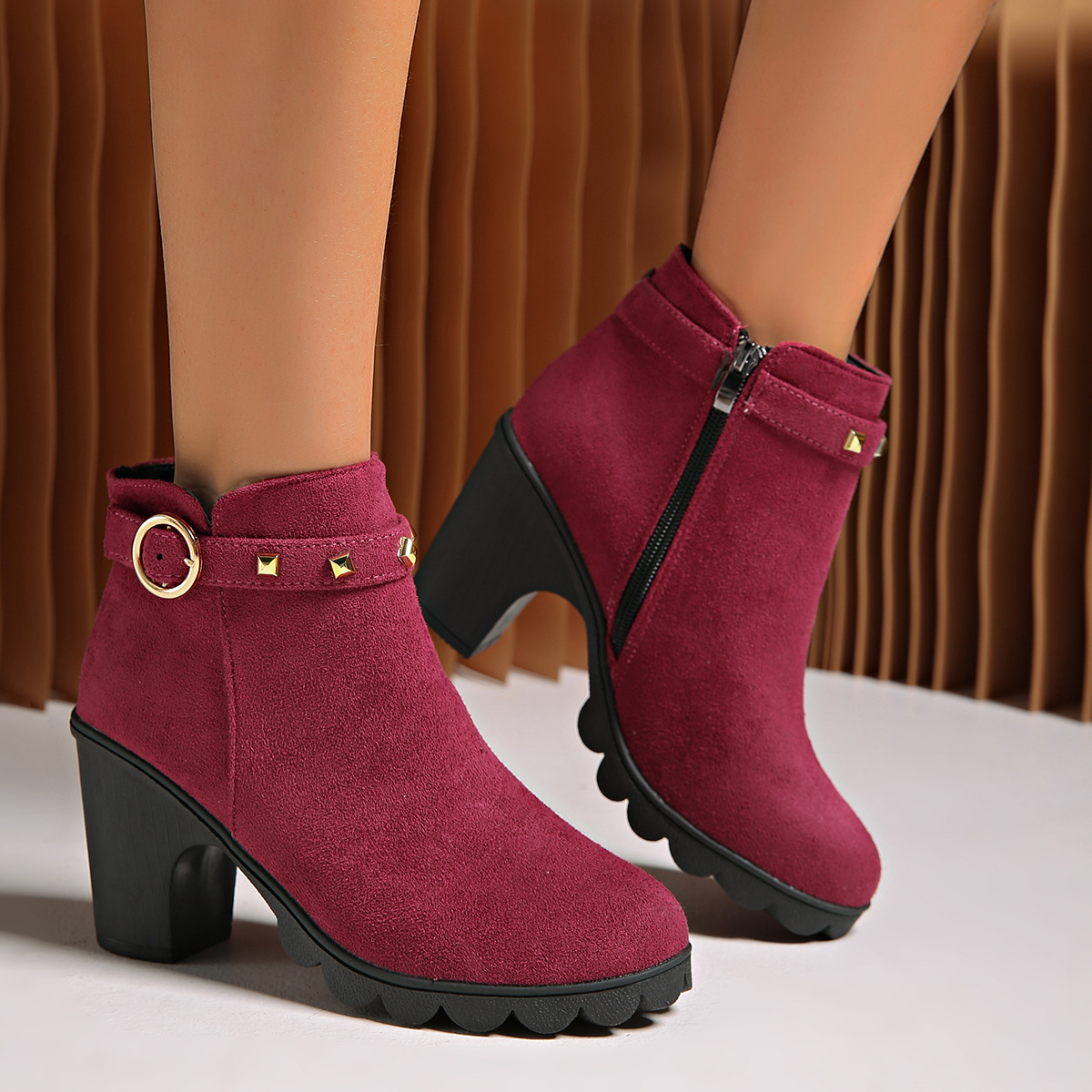 2024 가을과 겨울을위한 대외 무역 플러스 사이즈 하이힐 여성 부츠 새로운 패션 마틴 부츠 두꺼운 힐 라운드 헤드 사이드 지퍼 짧은 부츠