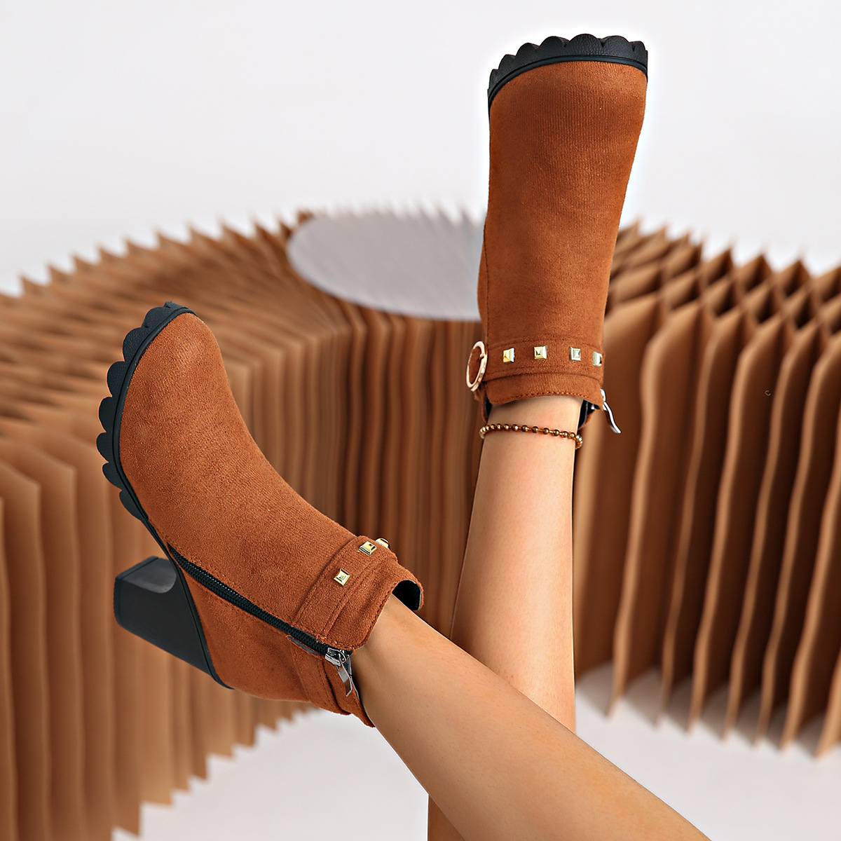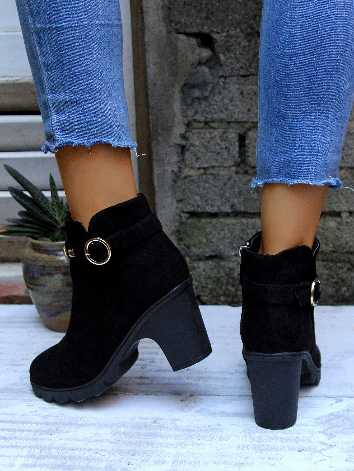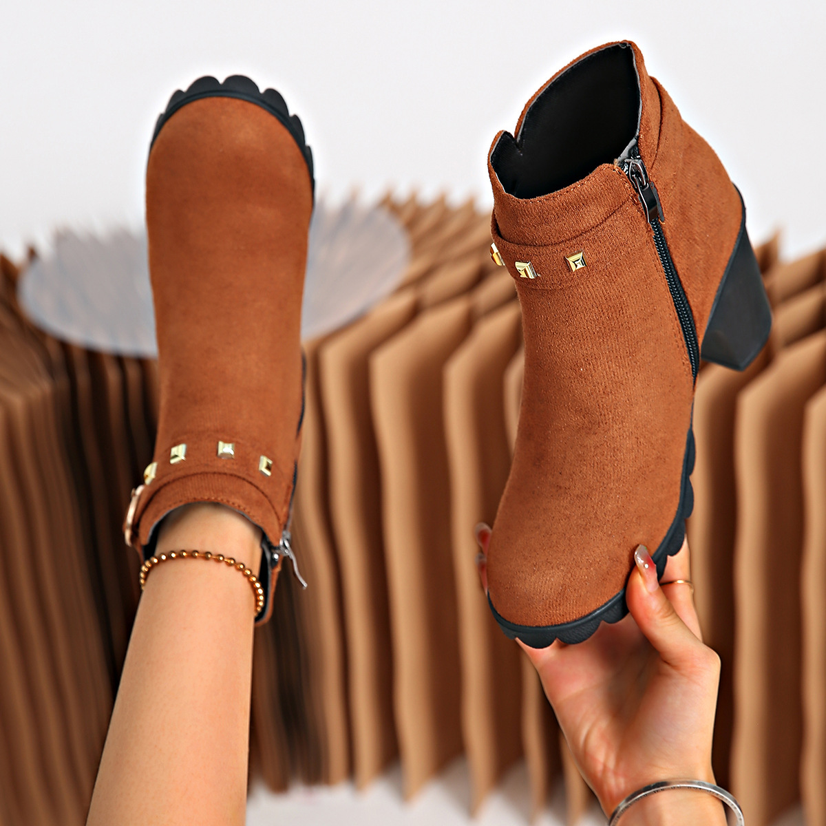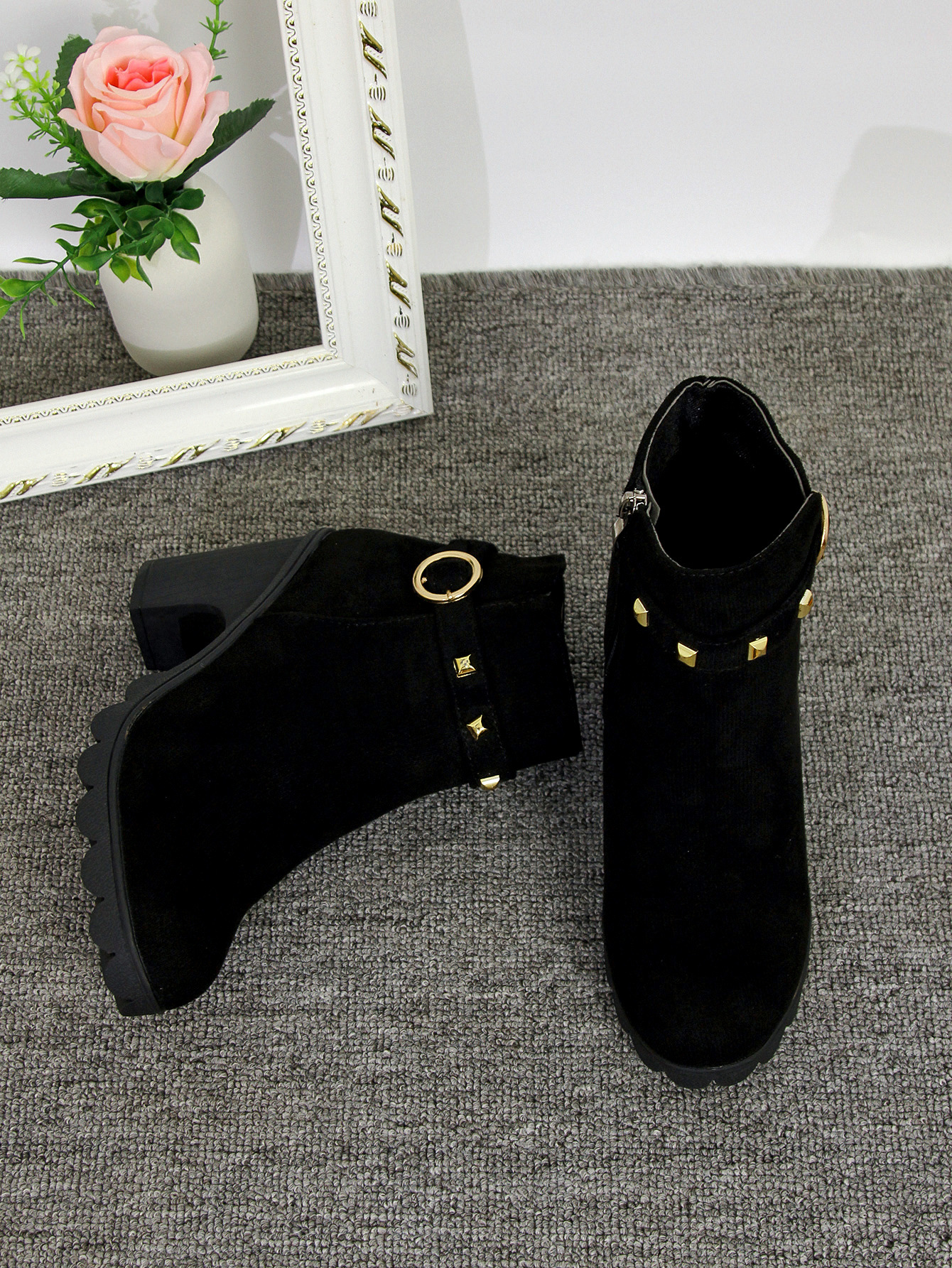 2024 가을과 겨울을위한 대외 무역 플러스 사이즈 하이힐 여성 부츠 새로운 패션 마틴 부츠 두꺼운 힐 라운드 헤드 사이드 지퍼 짧은 부츠