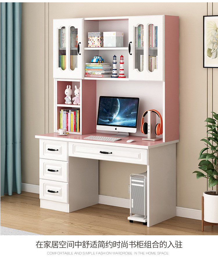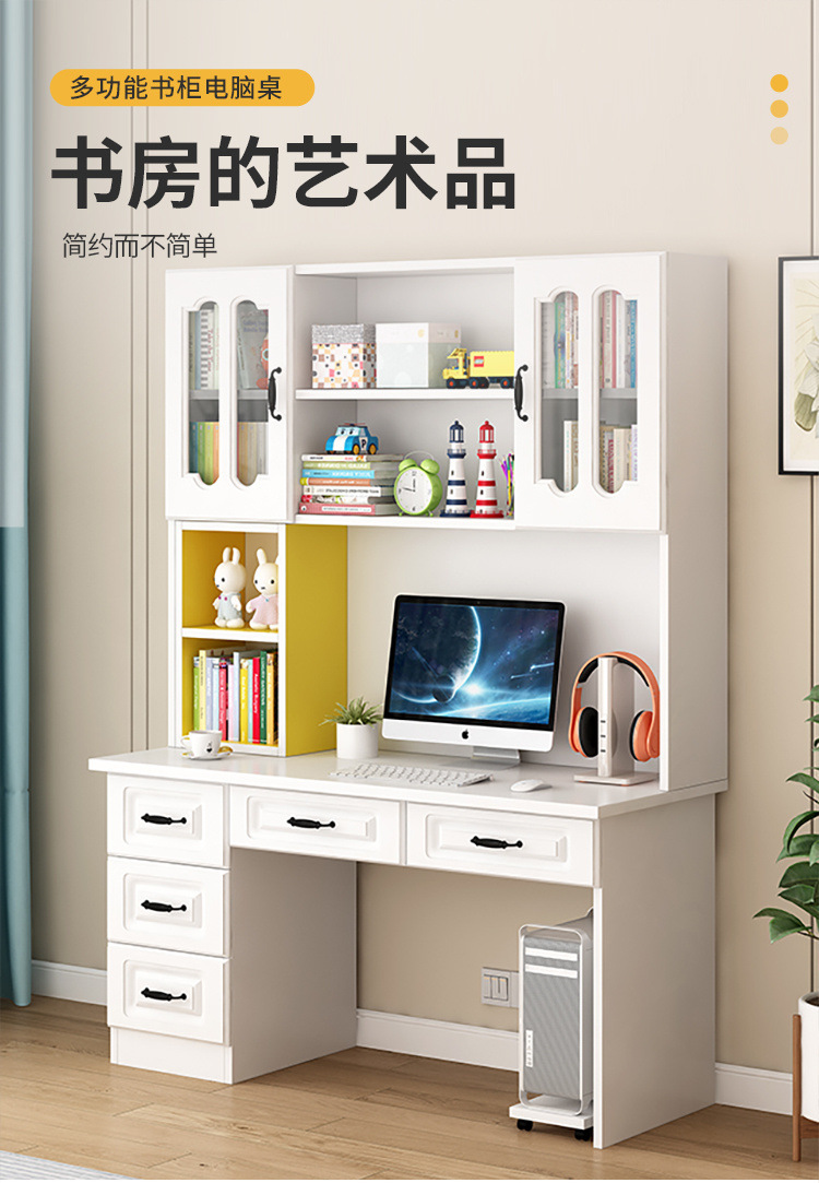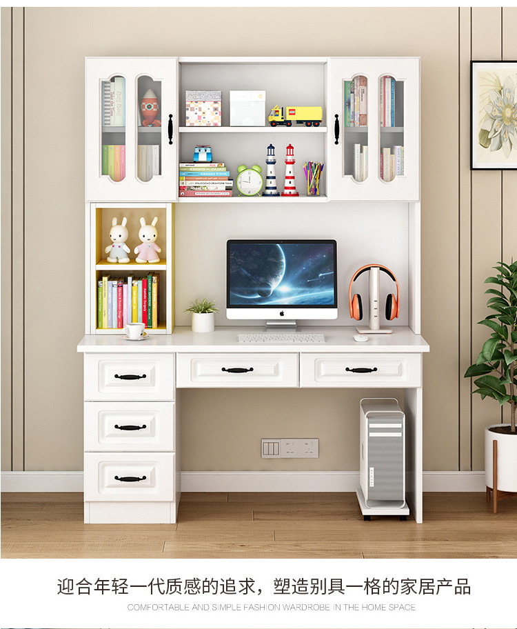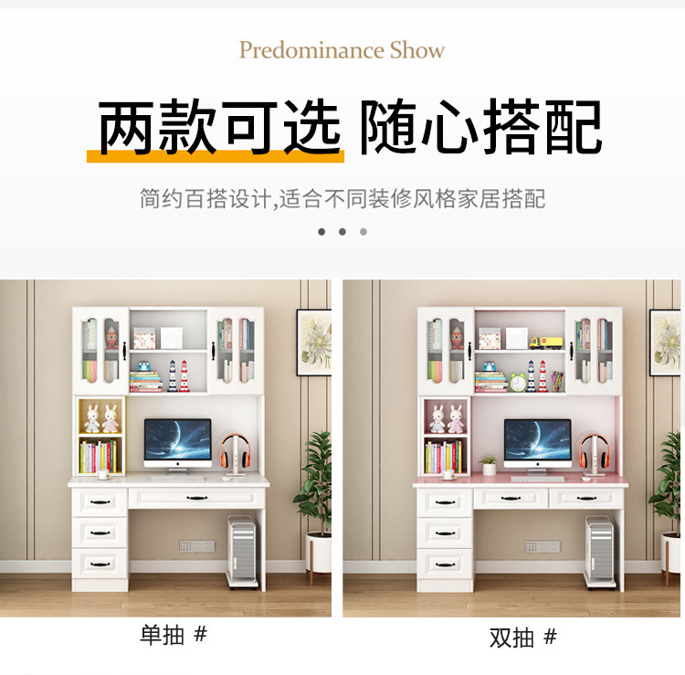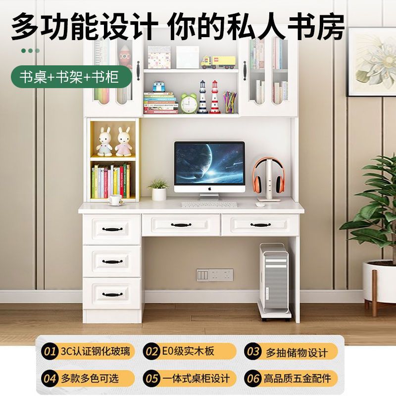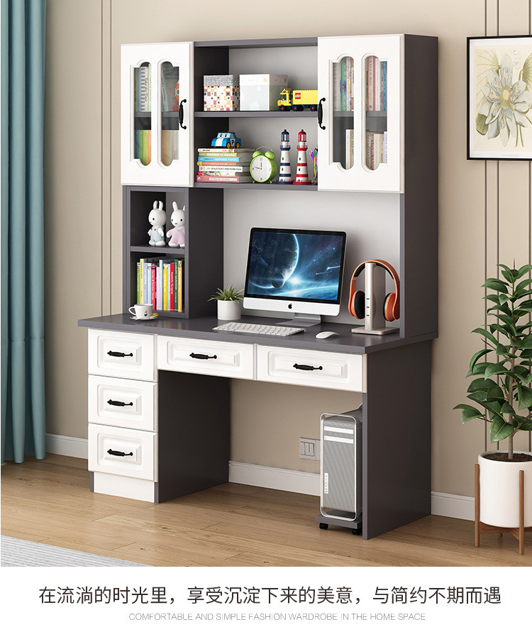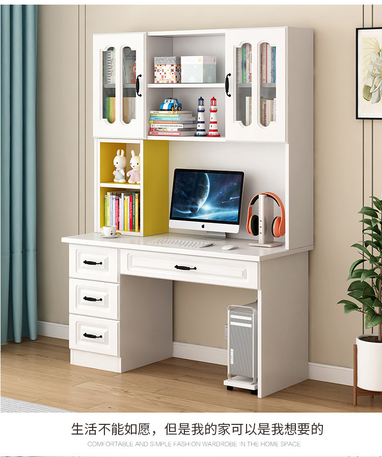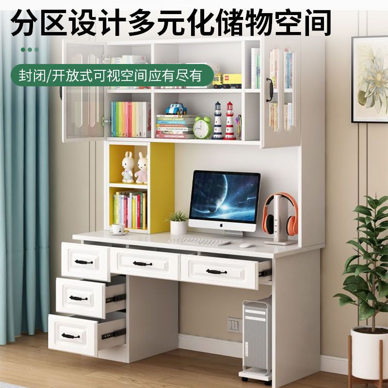 단단한 나무 책상 책장 통합 책장 홈 컴퓨터 책상 간단한 침실 학생 공부 테이블 쓰기 책상