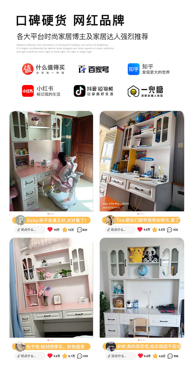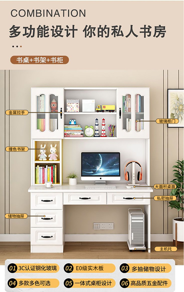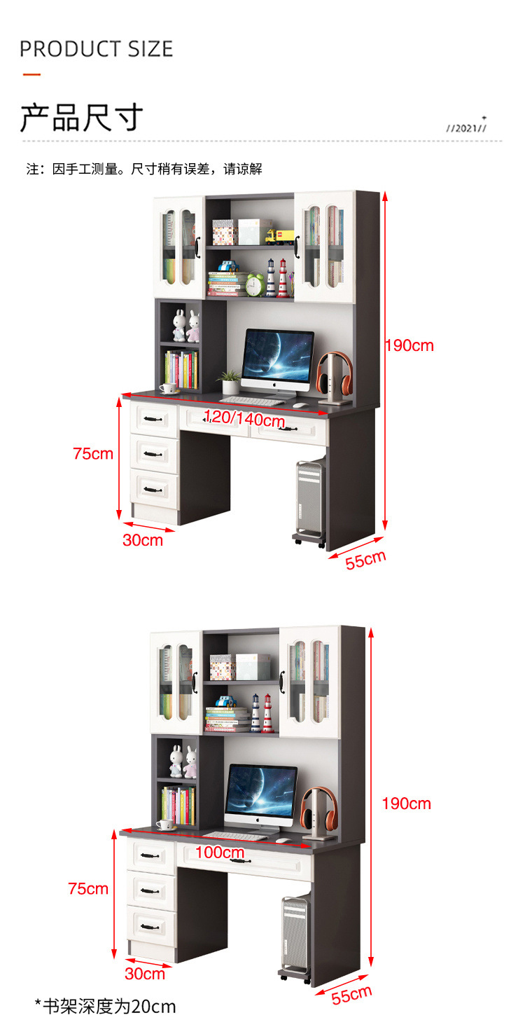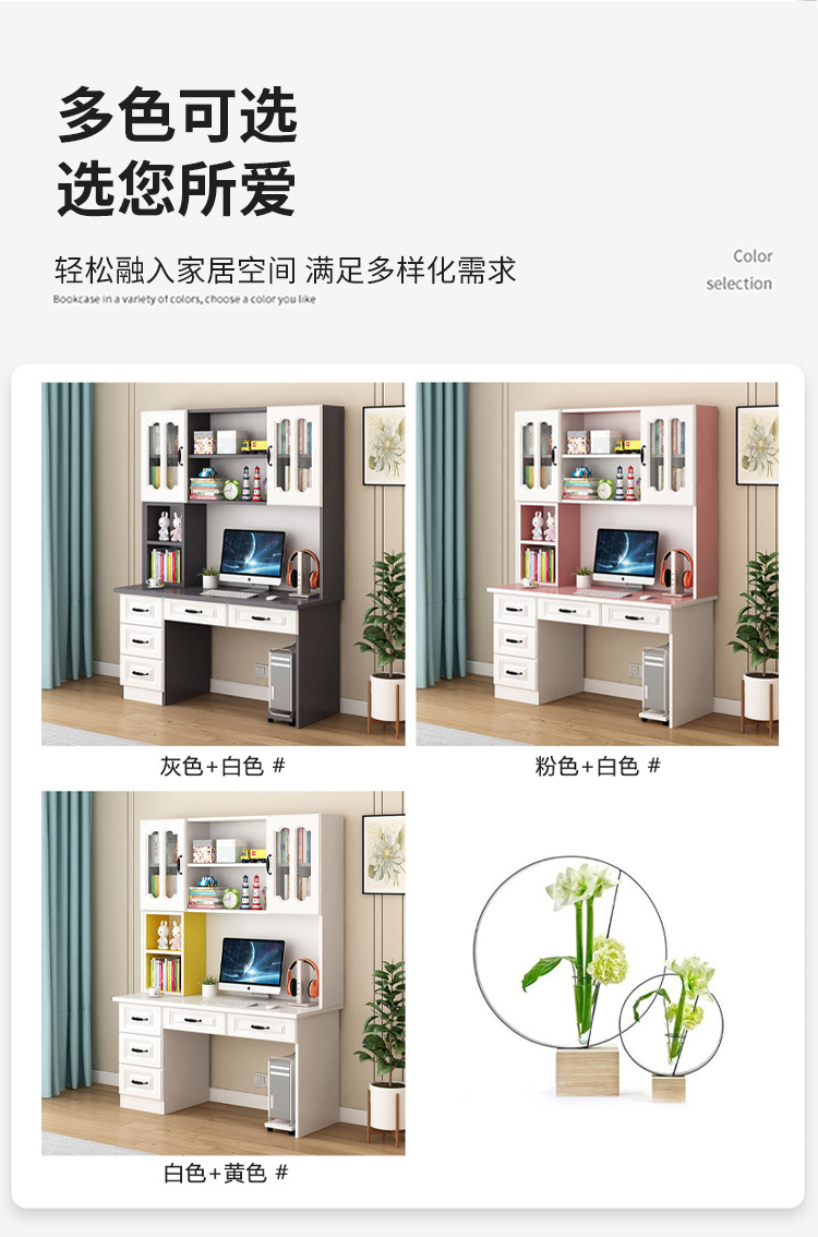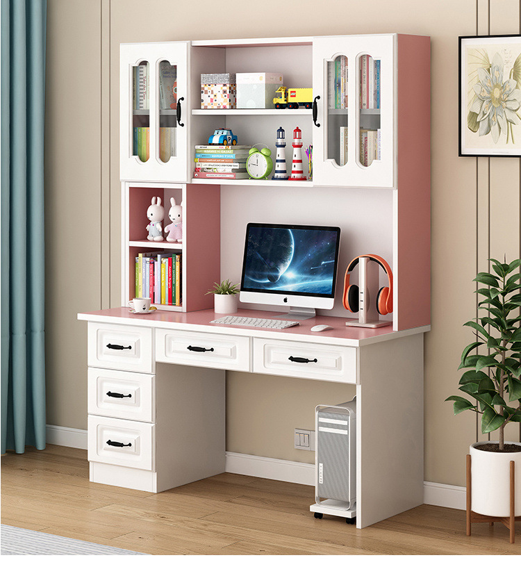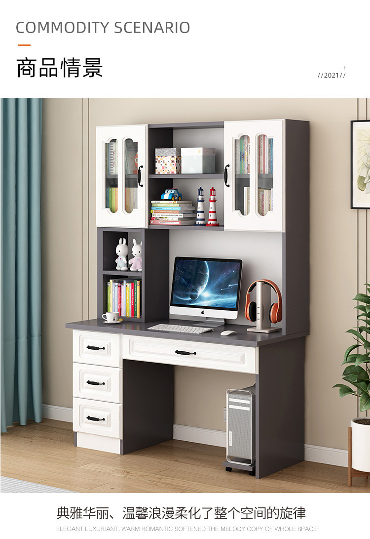 단단한 나무 책상 책장 통합 책장 홈 컴퓨터 책상 간단한 침실 학생 공부 테이블 쓰기 책상