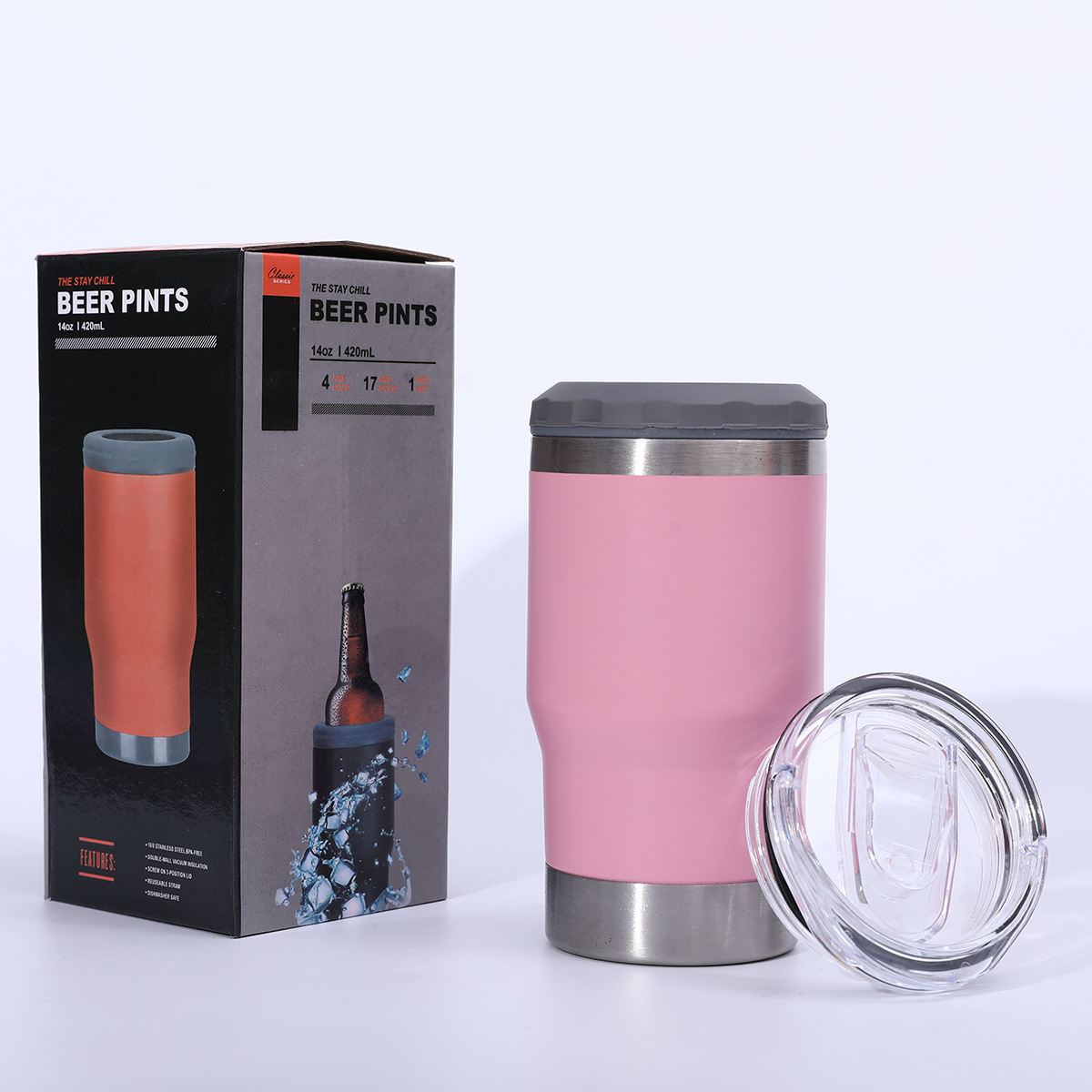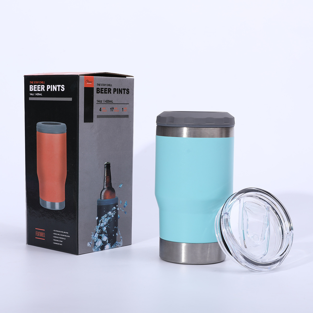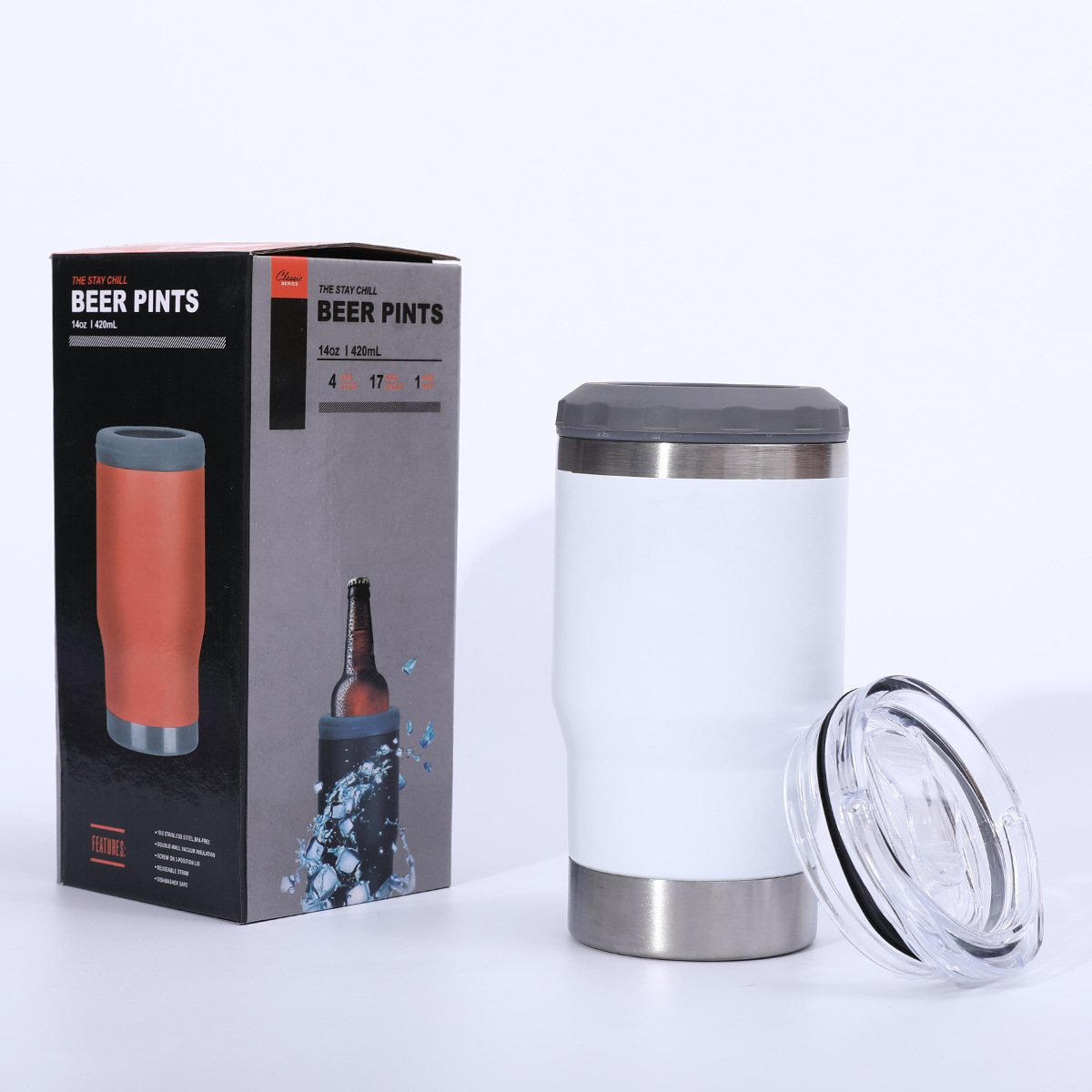 병 오프너 14oz 차가운 보존 탱크 304 스테인레스 스틸 진공 자동차 보온병 컵 야외 편리한 맥주 컵과 함께 제공