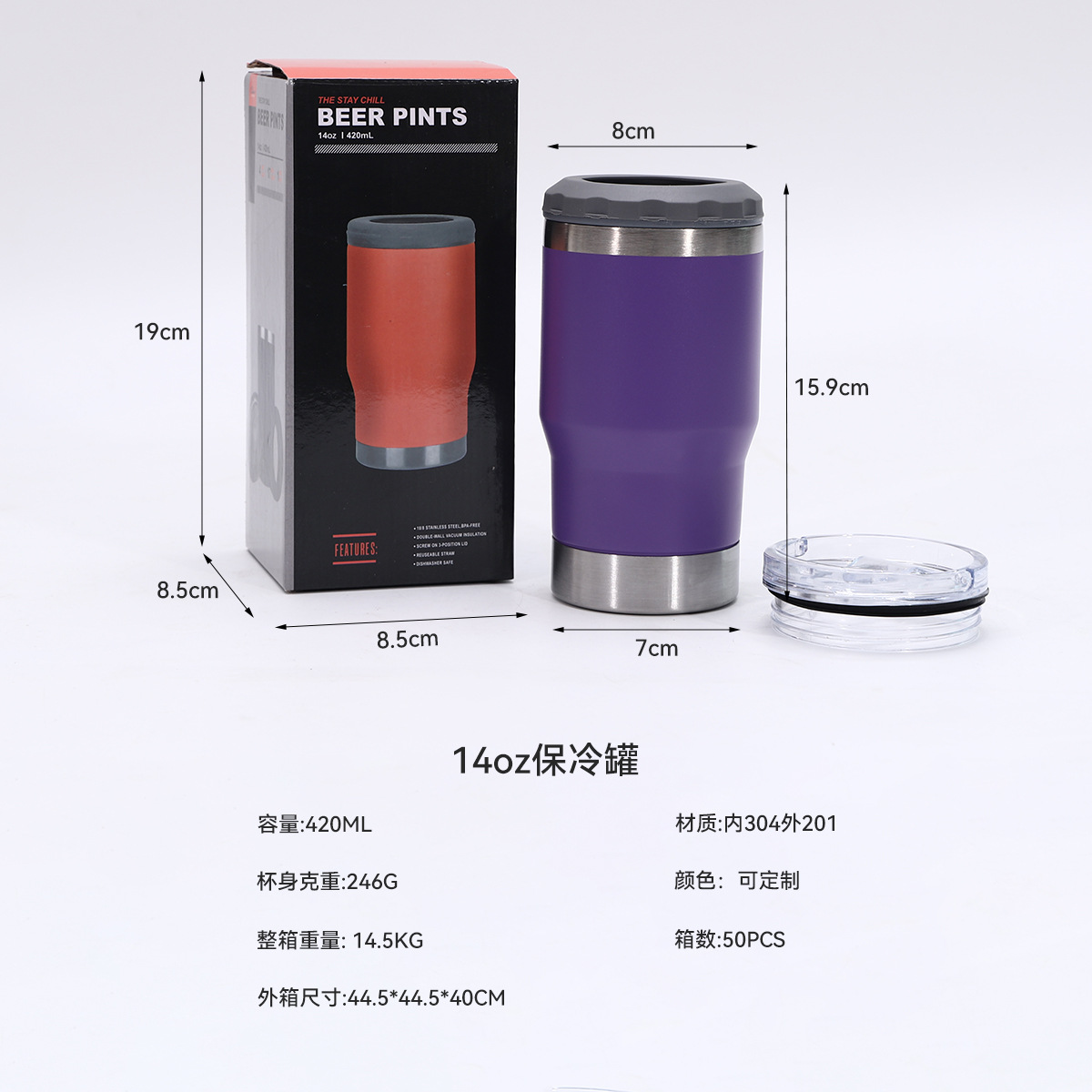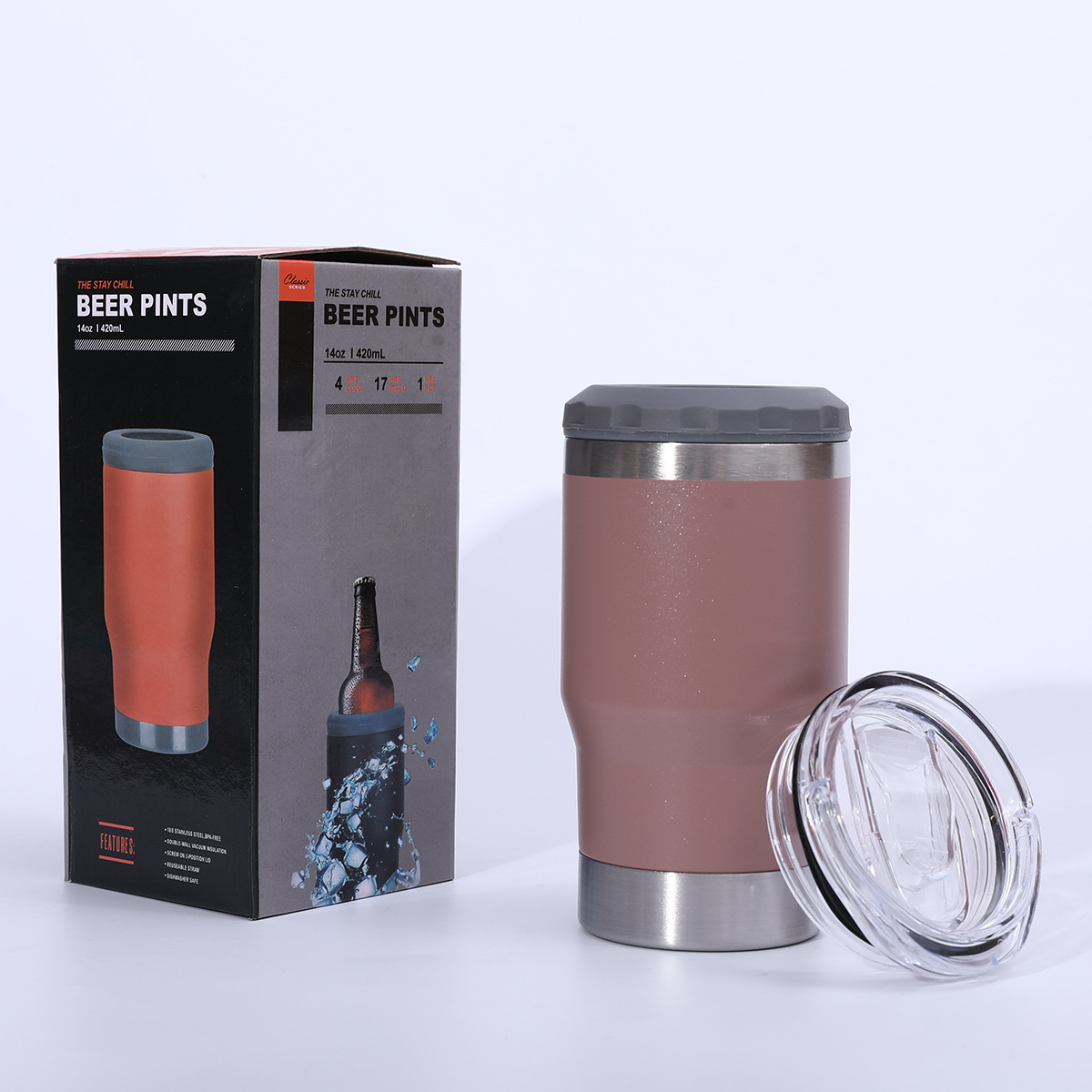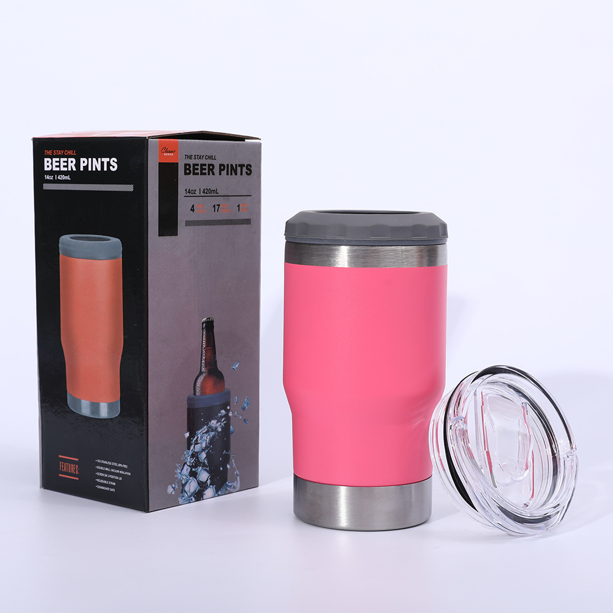 병 오프너 14oz 차가운 보존 탱크 304 스테인레스 스틸 진공 자동차 보온병 컵 야외 편리한 맥주 컵과 함께 제공