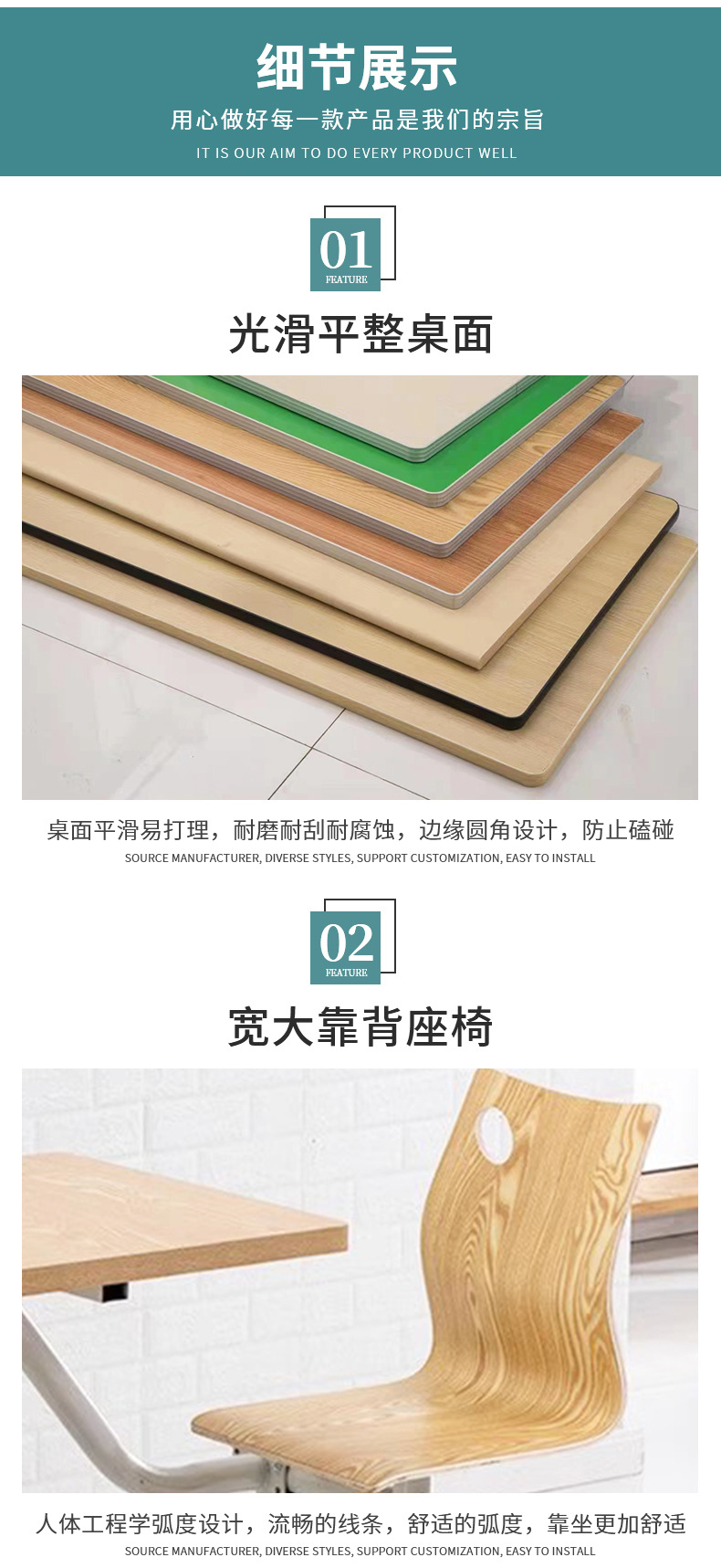 식당 식탁 간단한 직사각형 학교 공장 직원 결합 빠른 가구 식탁과 의자 식당 스낵 4인 6인