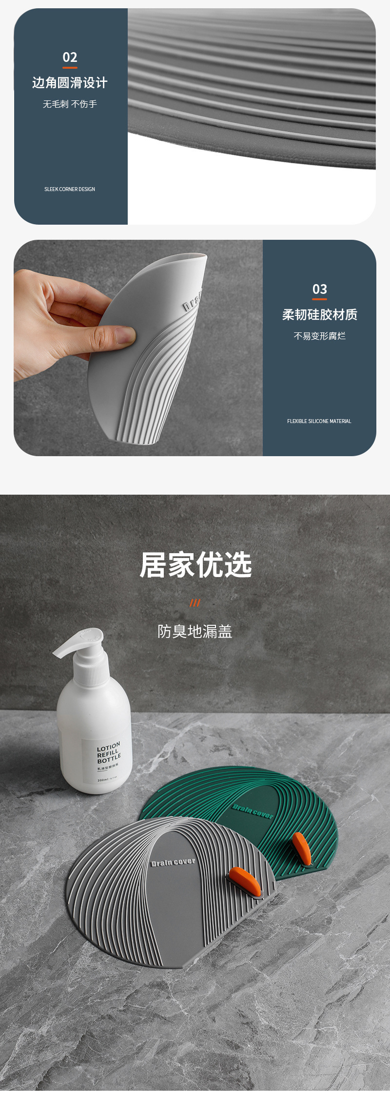 바닥 배수 탈취제 실리콘 매트 화장실 주방 하수구 반대로 반취 방지 냄새 방지 곤충 하수도 덮개