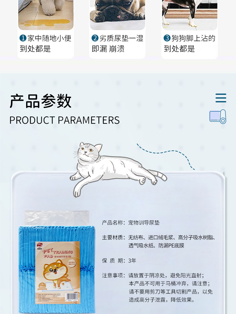Shande 애완 동물 제품 개 훈련 패드 두꺼운 흡수 패드 고양이 기저귀 일회용 관리 패드