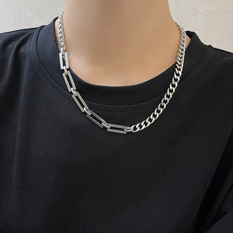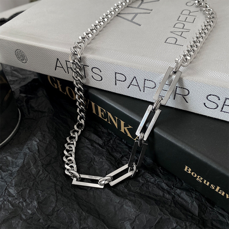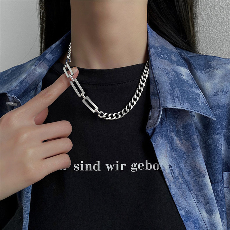티타늄 스틸 바느질 목걸이 남성용 트렌디 한 Ins 콜드 스타일 쿠바 두꺼운 체인 여성의 가벼운 럭셔리 틈새 디자인 쥬얼리 콜라 본 체인