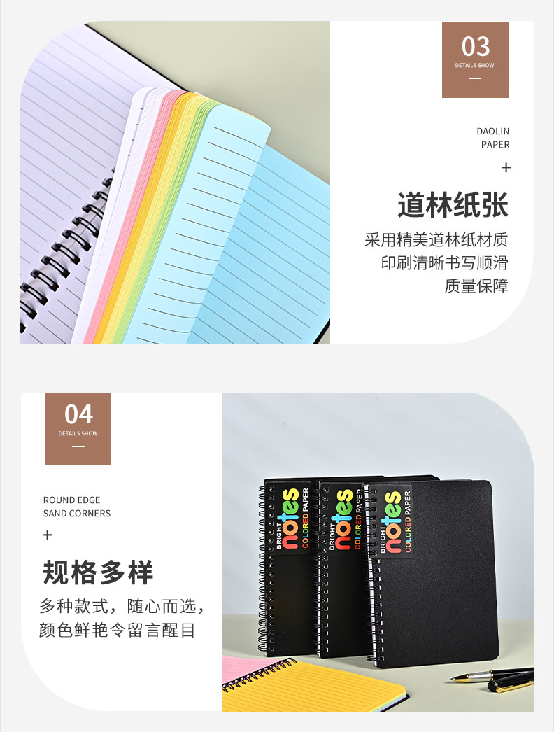 간단한 코일 북 PP 커버 컬러 내부 페이지 학생 A6 사무실 문화 용품 노트북 휴대용 메모장