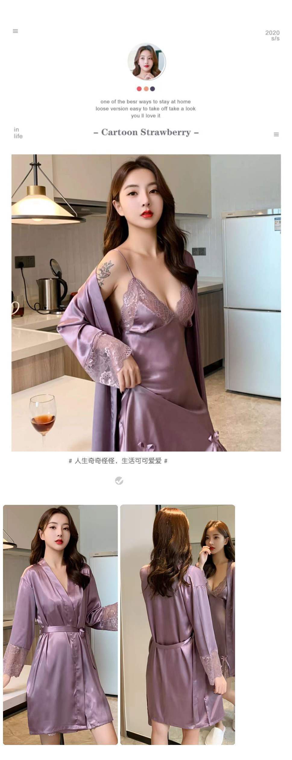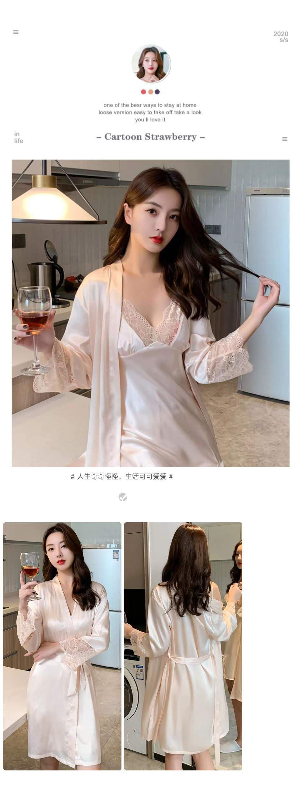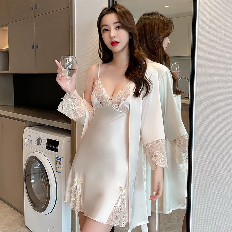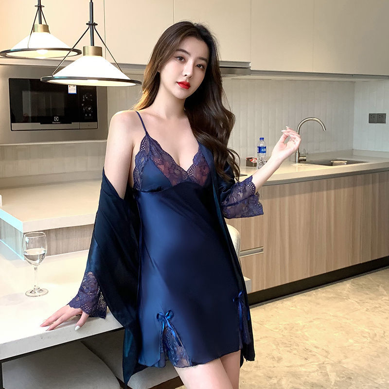 섹시한 잠옷 여자 여름 아이스 실크 얇은 레이스 2022 봄 가을의 새 슬링 잠옷 세트