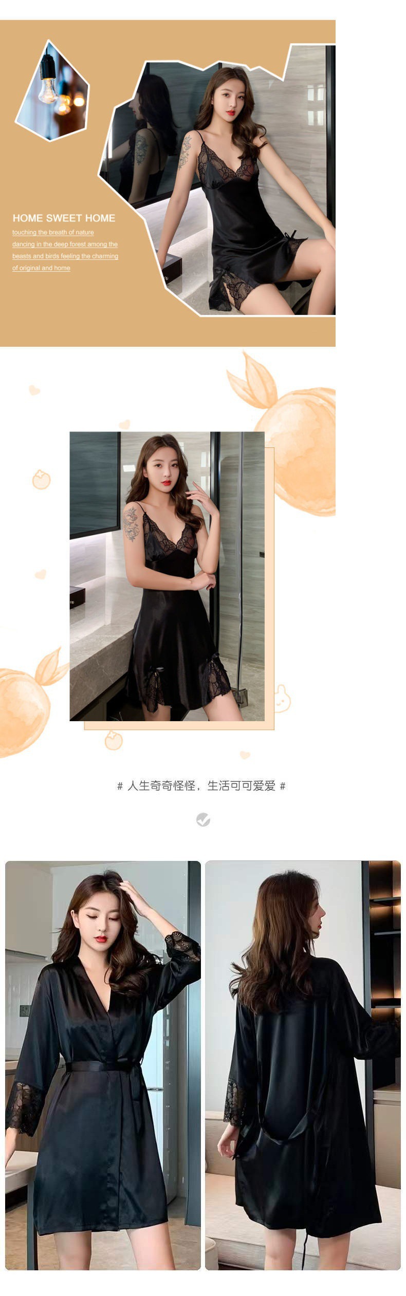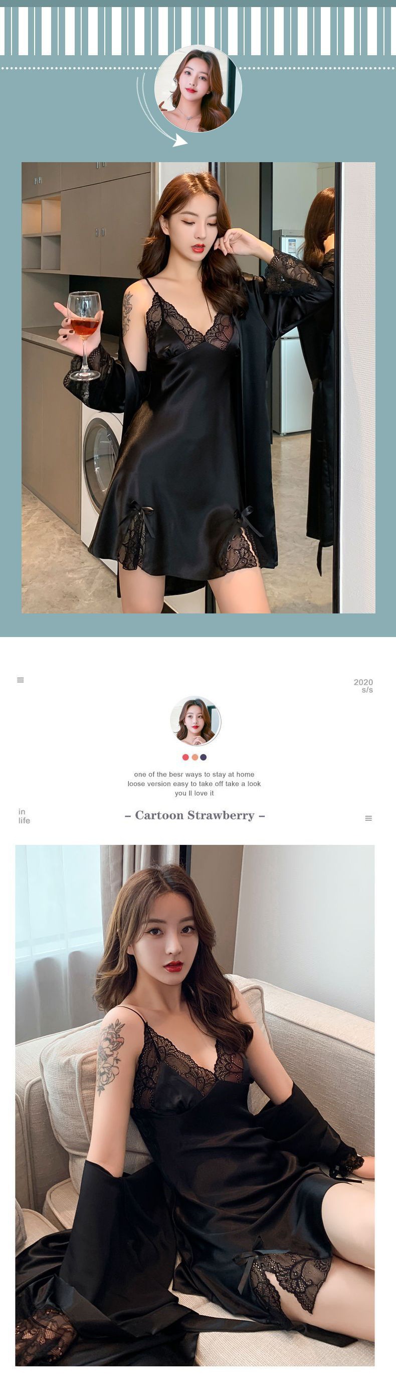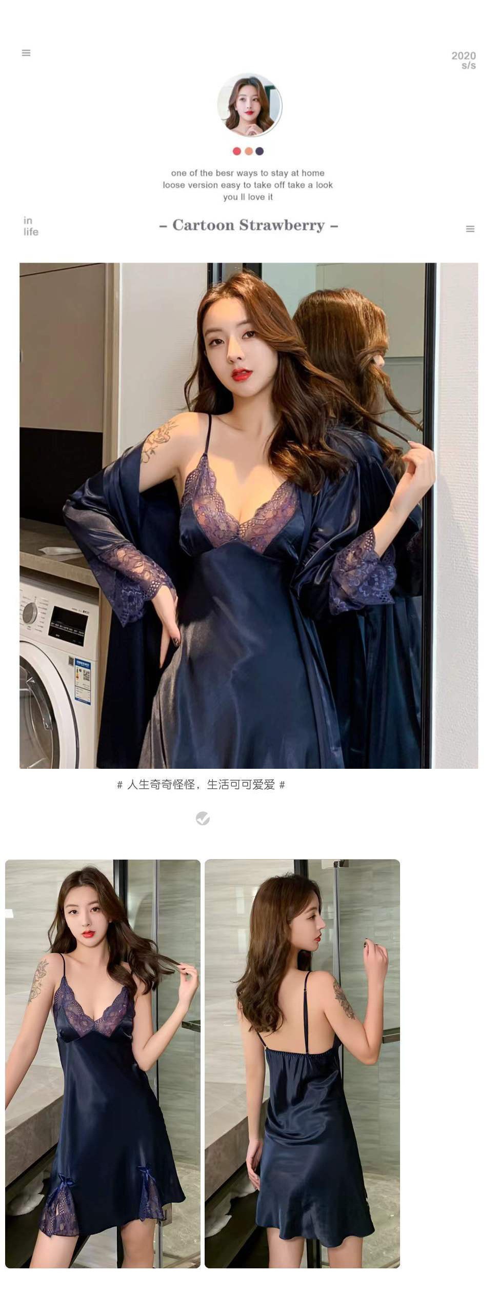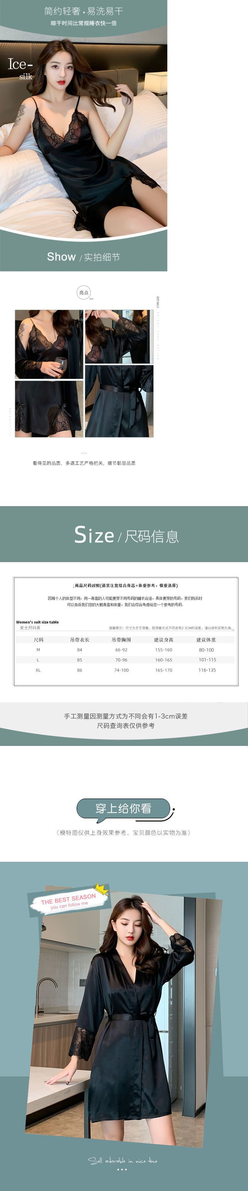 섹시한 잠옷 여자 여름 아이스 실크 얇은 레이스 2022 봄 가을의 새 슬링 잠옷 세트