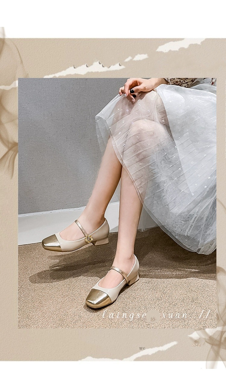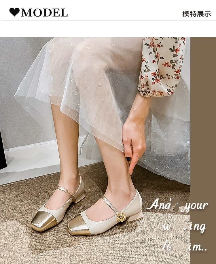 두꺼운 굽의 우아한 스타일, 얕은 앞코의 만능 여성화, 2026년 신상 여름 진짜 부드러운 가죽 프렌치 메리제인 스몰 사이즈 여성화