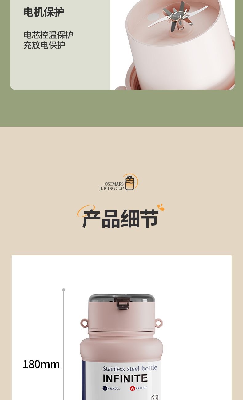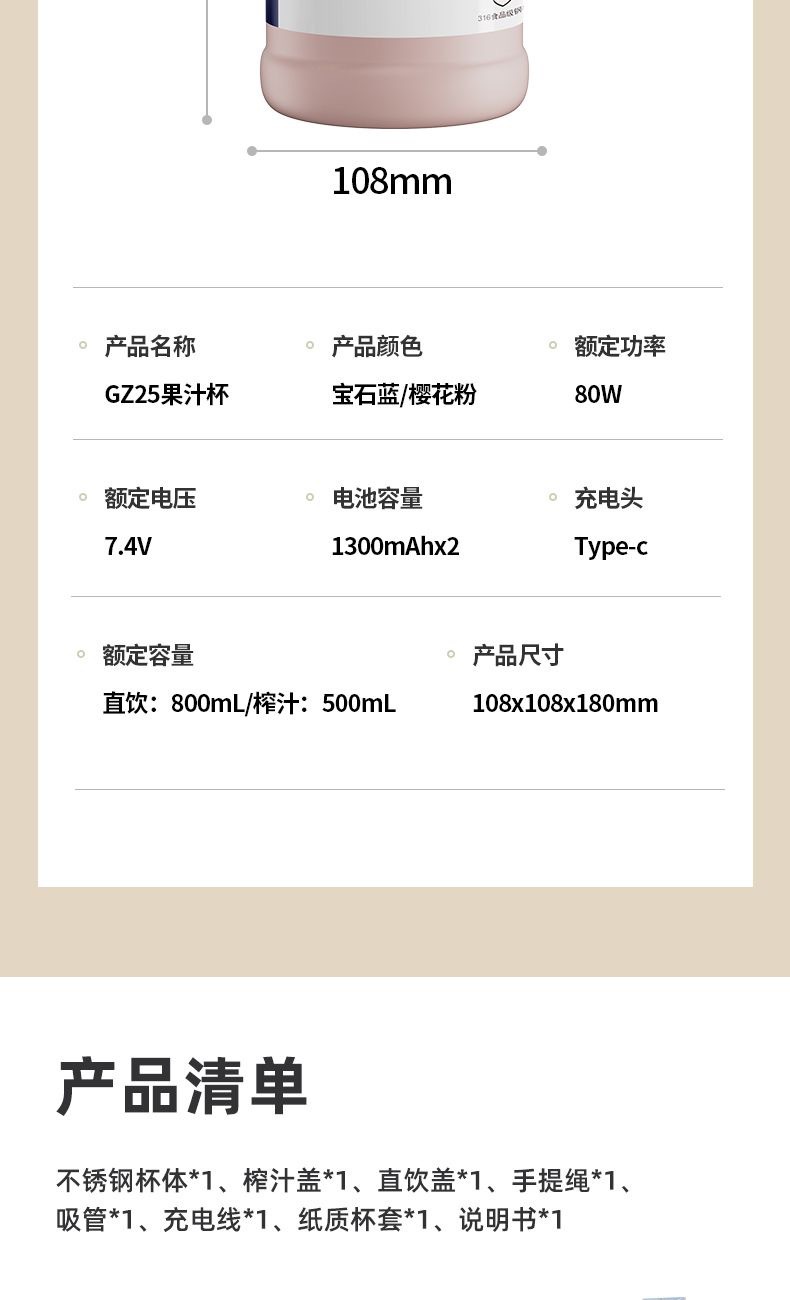 榨汁容量:500ml 直饮容量:800ml