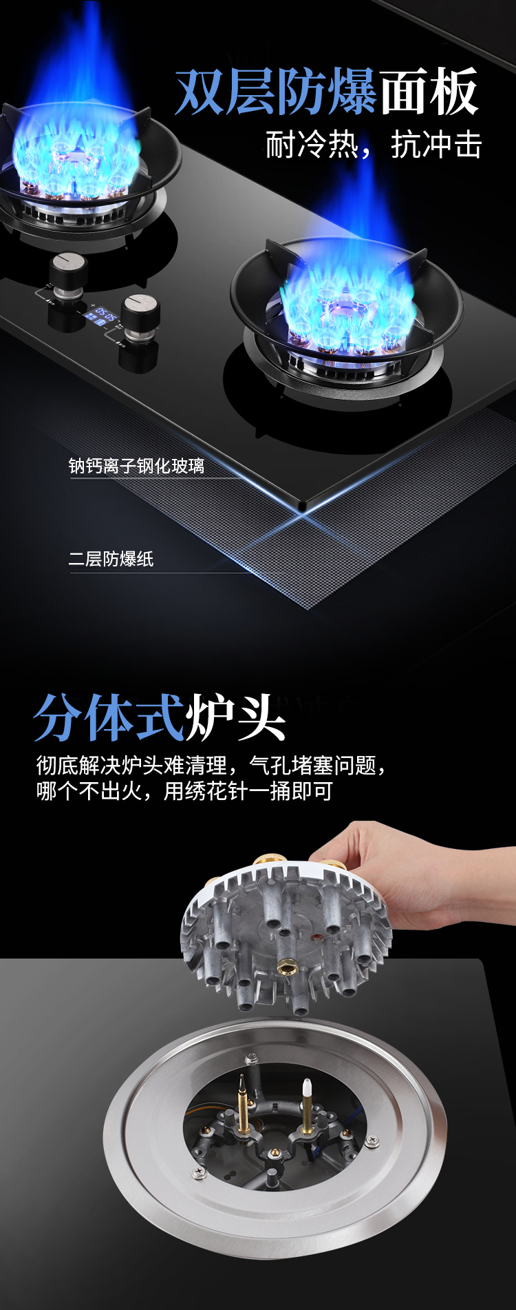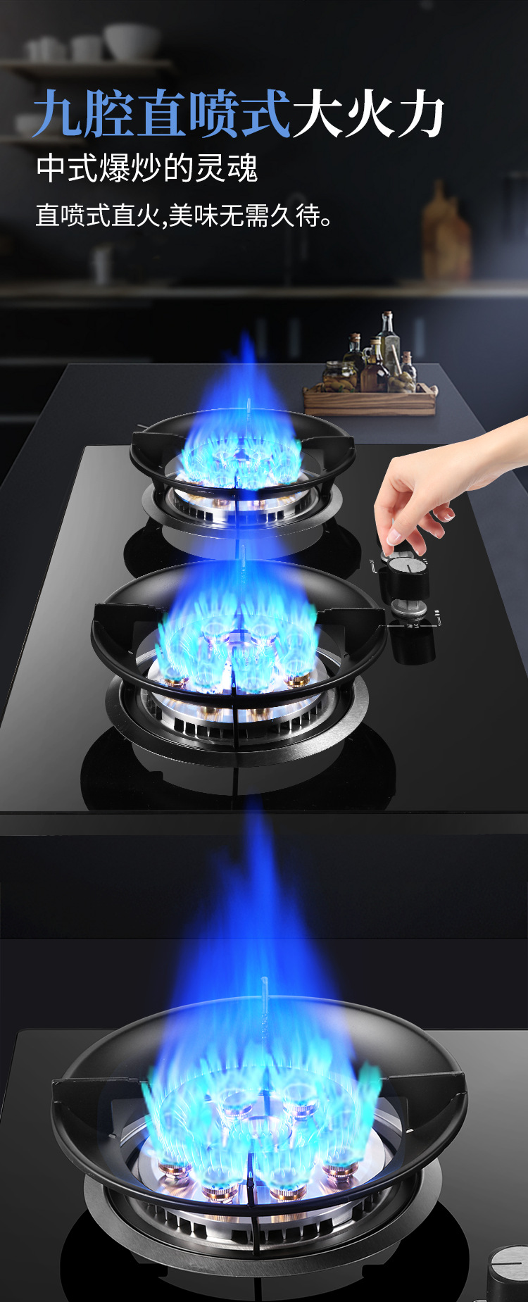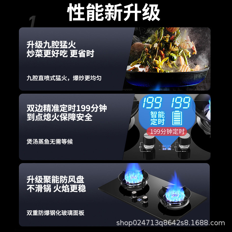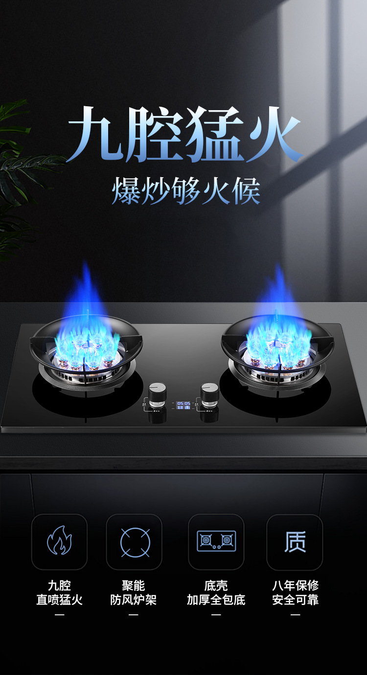 도매 9 챔버 치열한 화재 대형 화재 가스 스토브 가정용 더블 스토브 가스 스토브 강화 유리 액화 가스 스토브