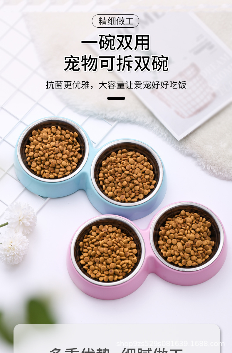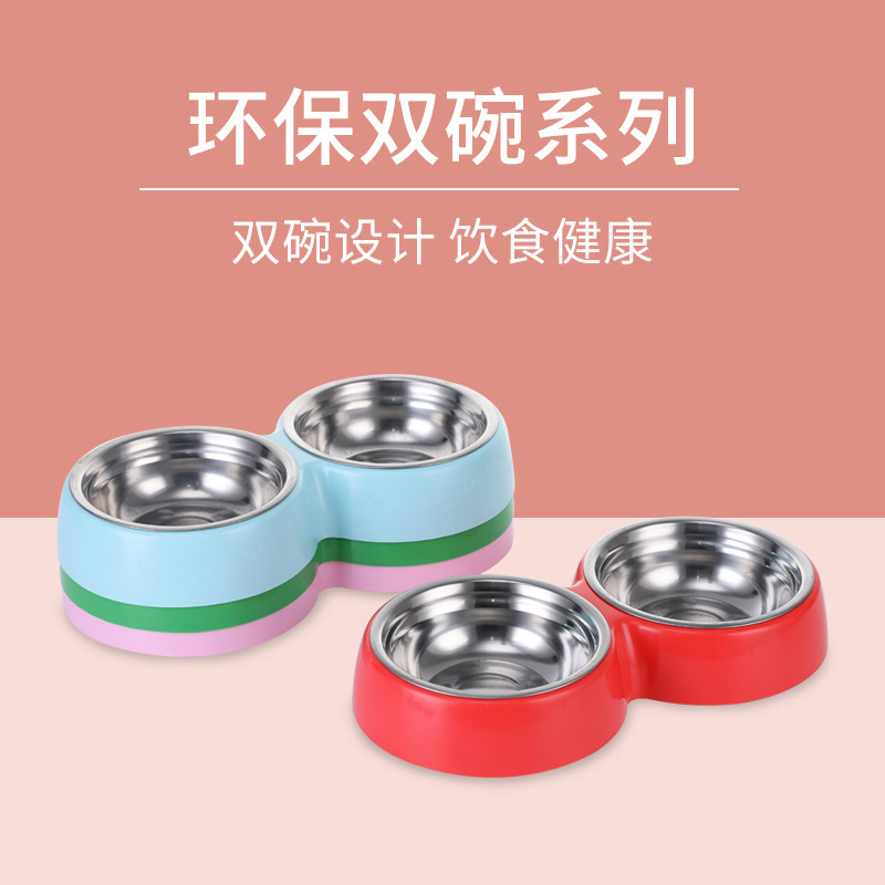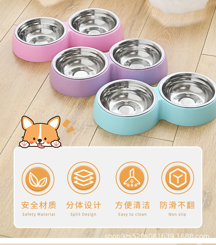 캔디 컬러 애완 동물 스테인레스 스틸 더블 그릇 개 그릇 고양이 그릇 먹이 물 그릇 애완 동물 개 그릇 공장 도매