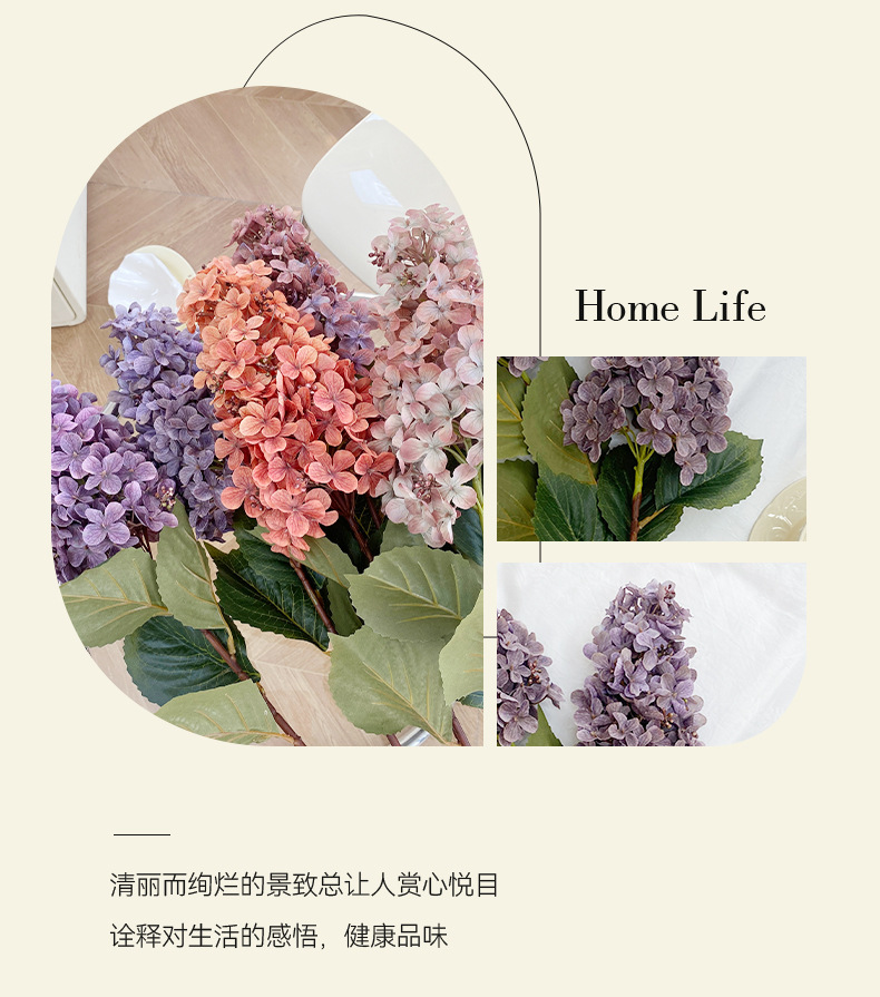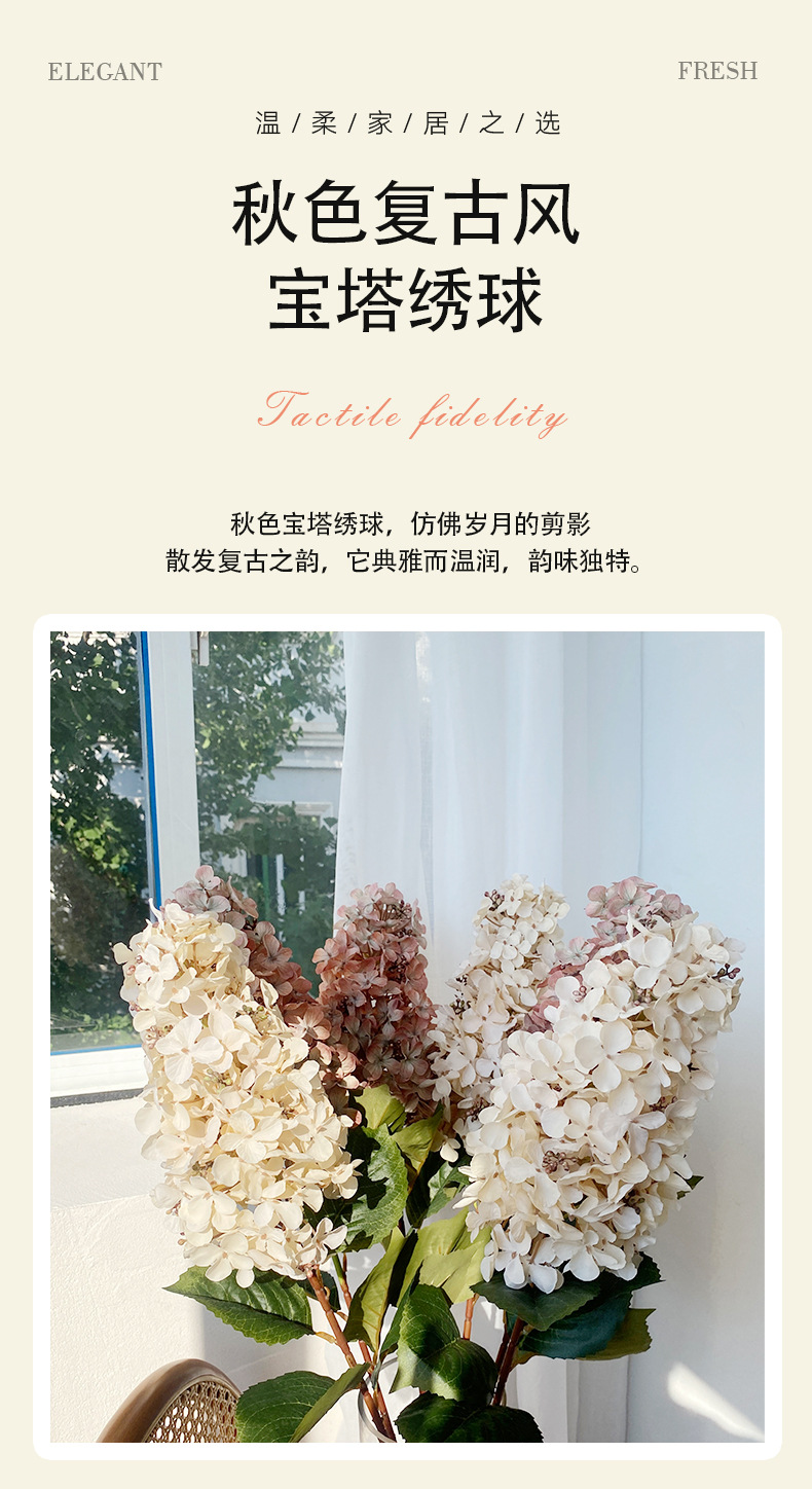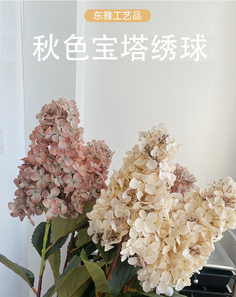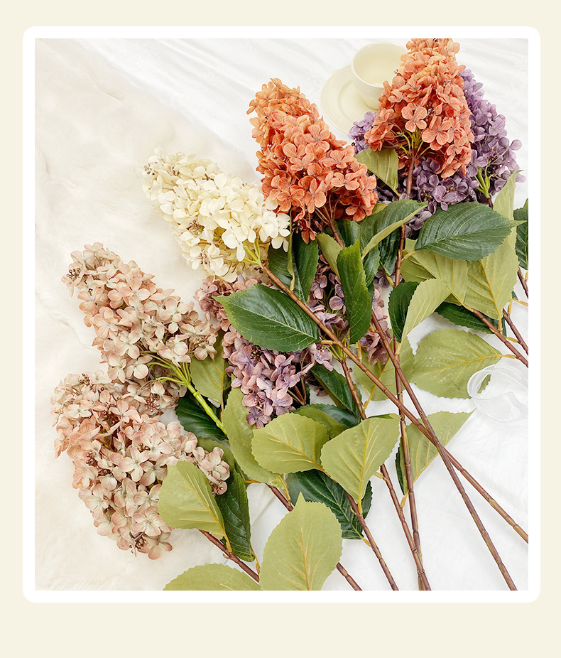 공장 도매 높은 색상 가치 가을 수국 시뮬레이션 꽃 웨딩 꽃꽂이 사진 소품 모네 정원 장식