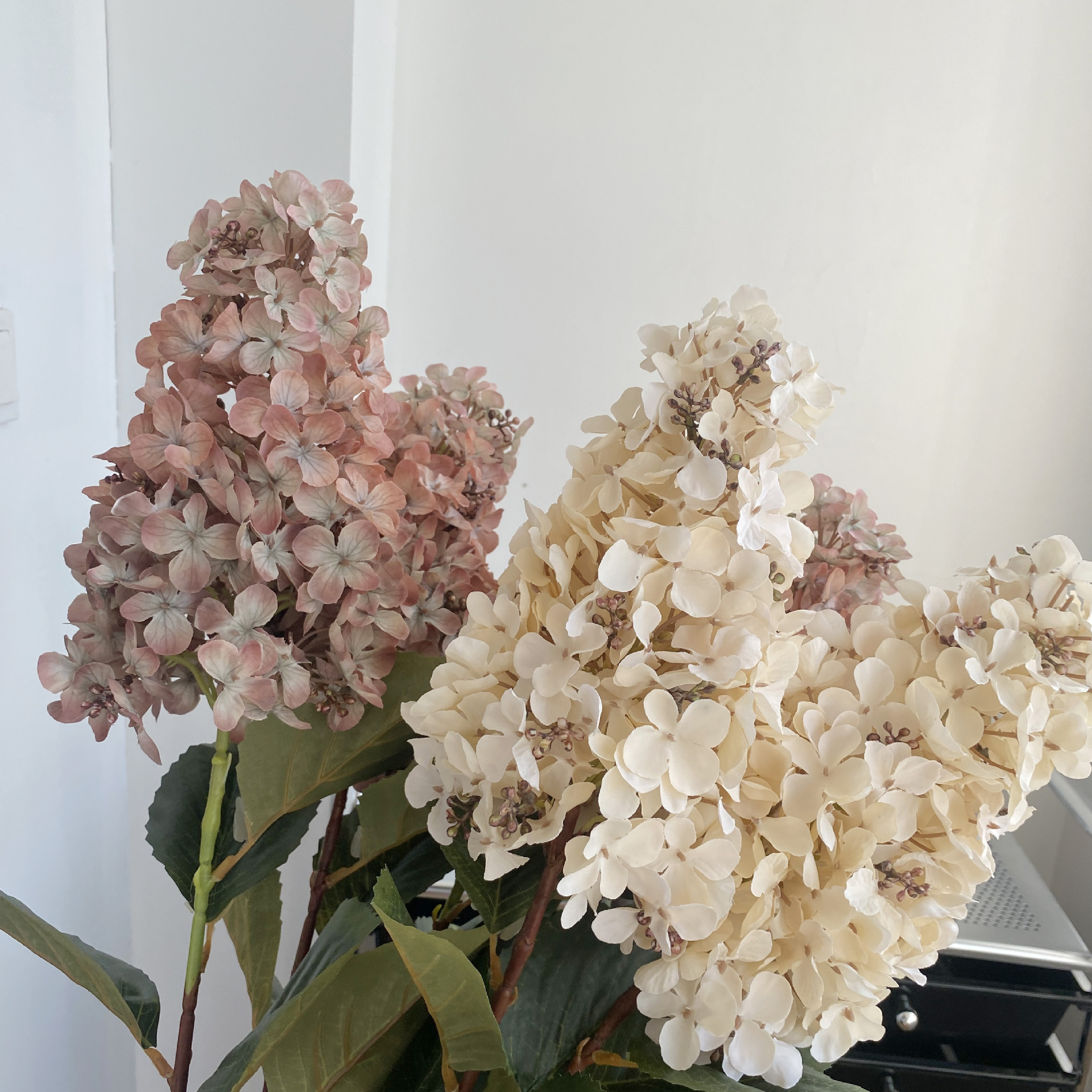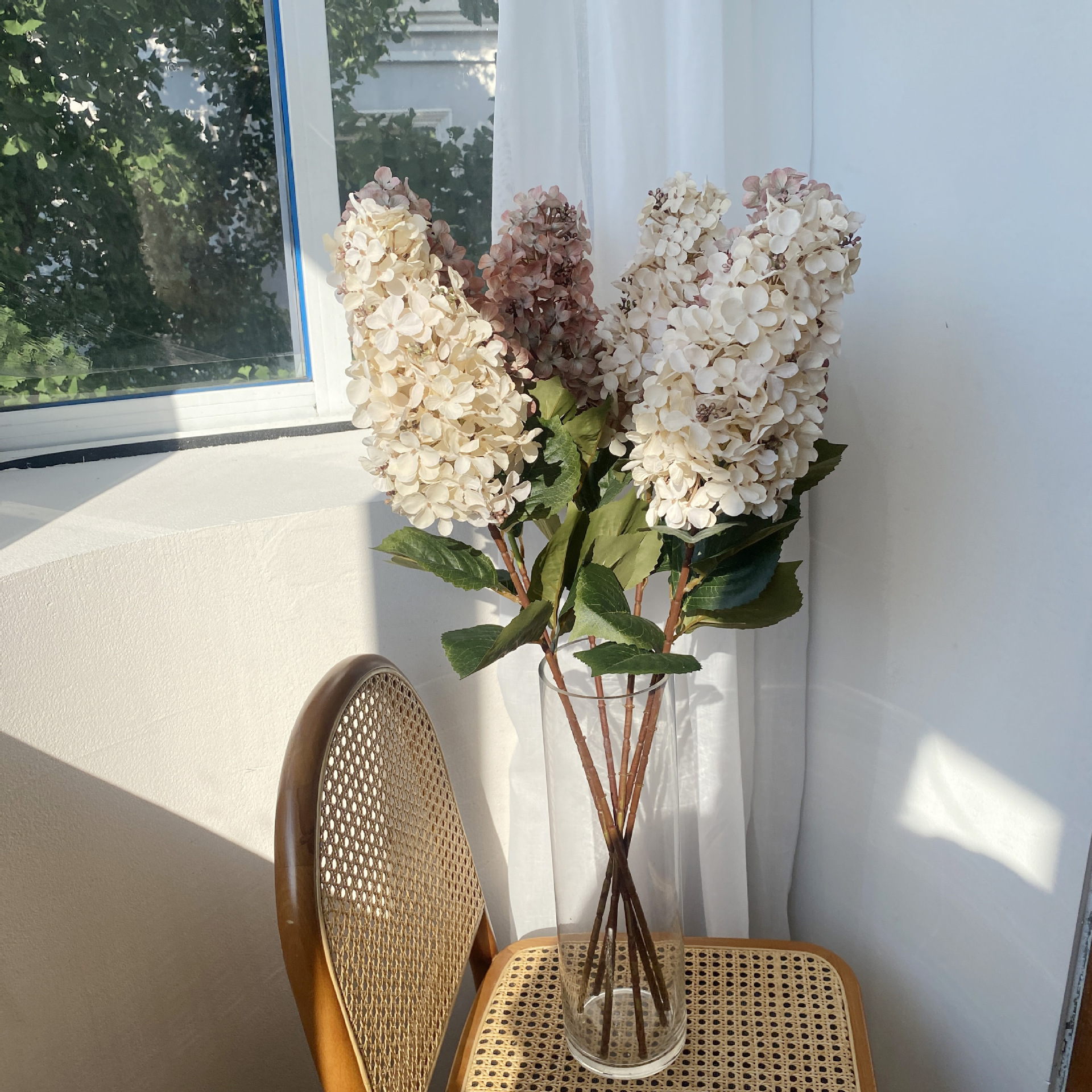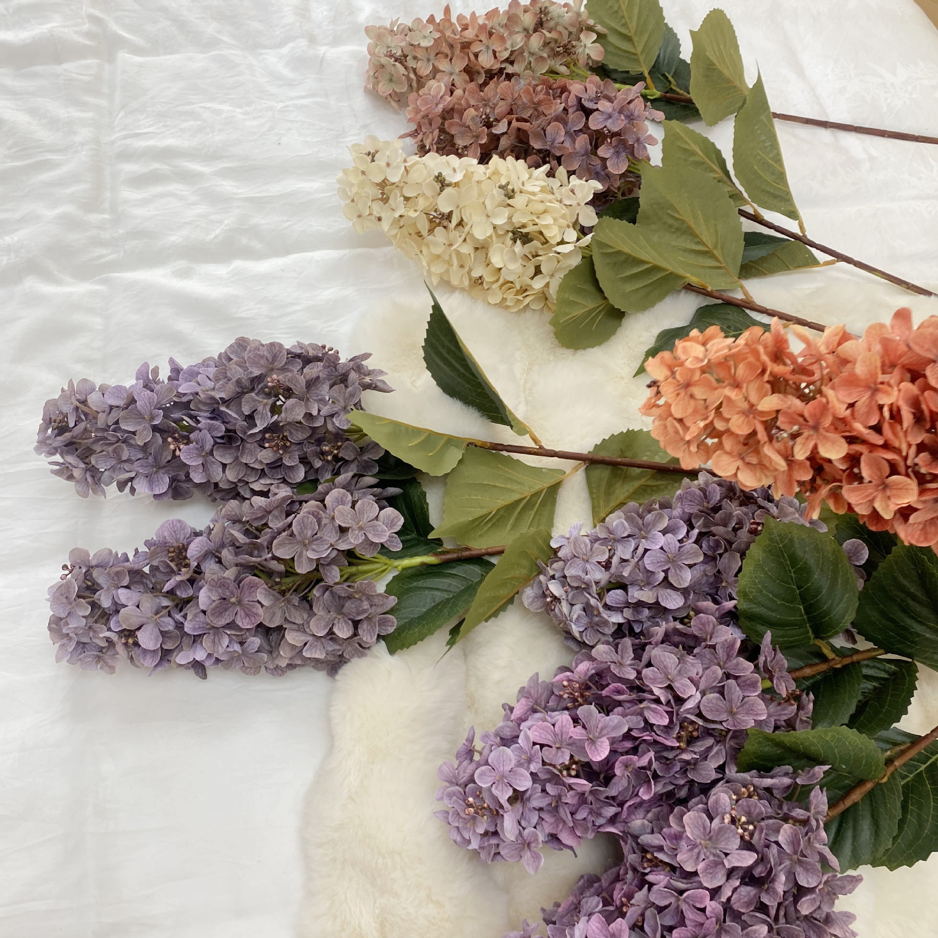 공장 도매 높은 색상 가치 가을 수국 시뮬레이션 꽃 웨딩 꽃꽂이 사진 소품 모네 정원 장식