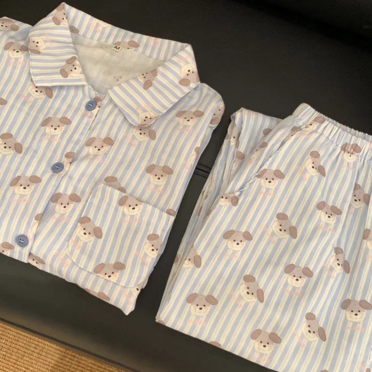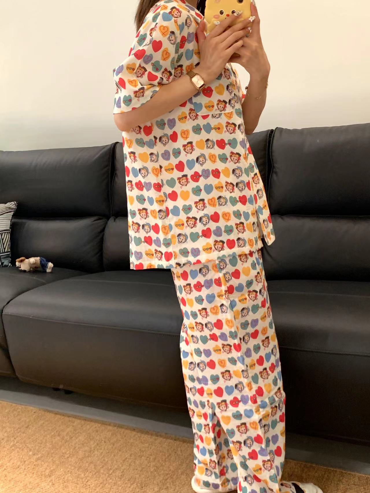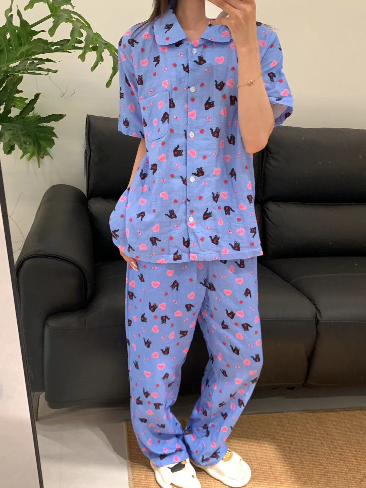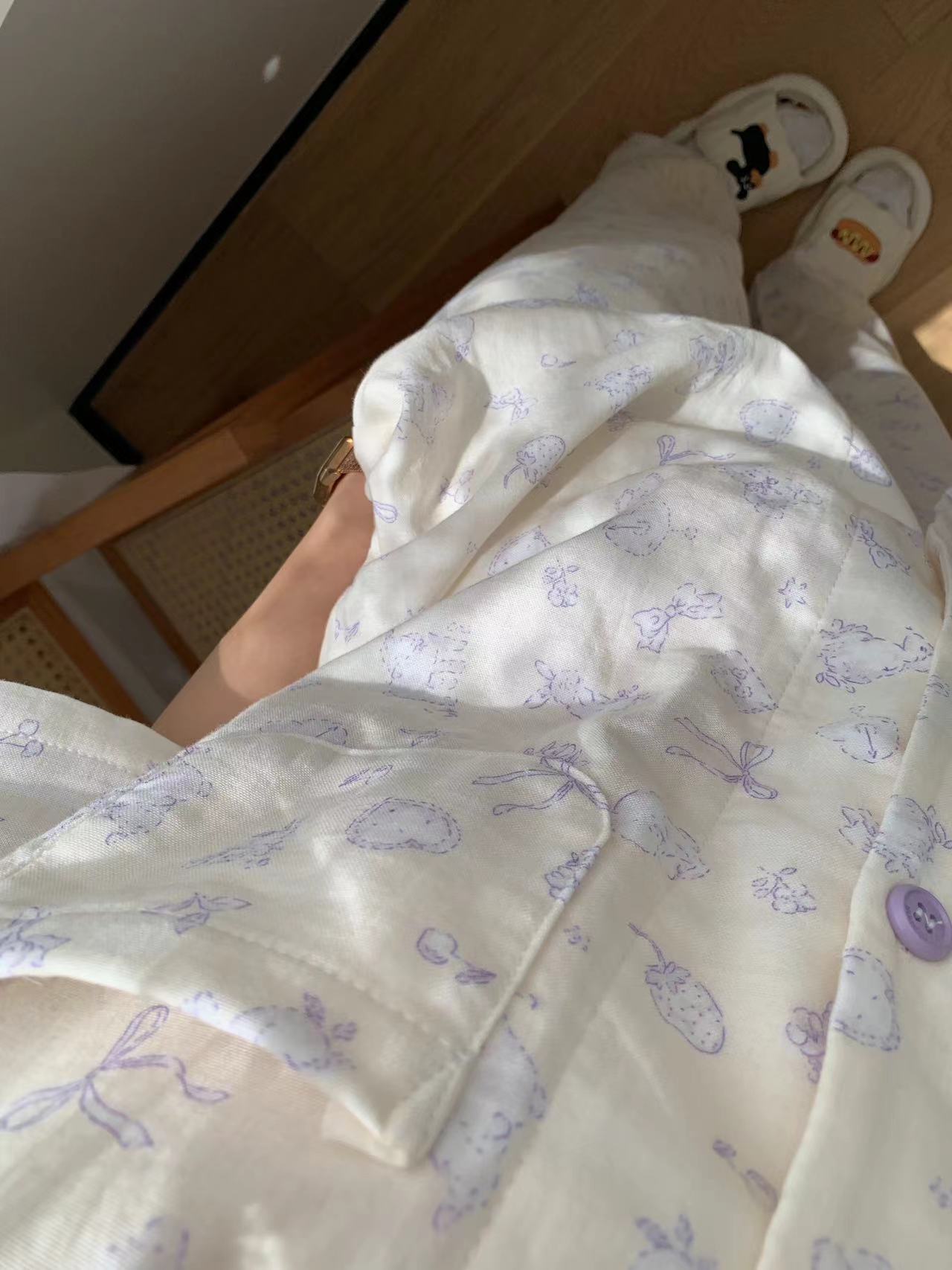 반팔 바지 세트 면 더블 레이어 거즈 잠옷 귀여운 달콤한 홈 옷 느슨한 느긋한 면화 잠옷