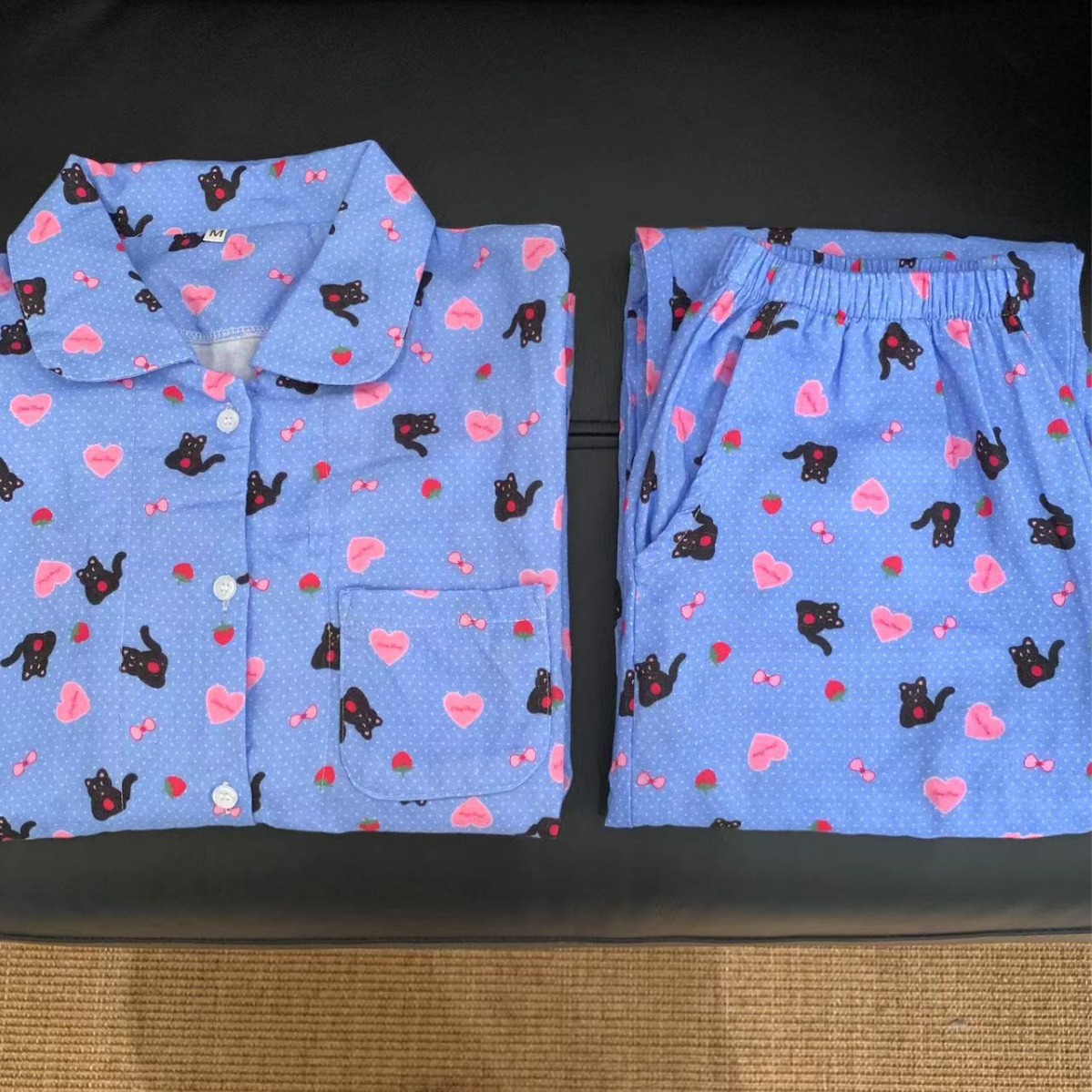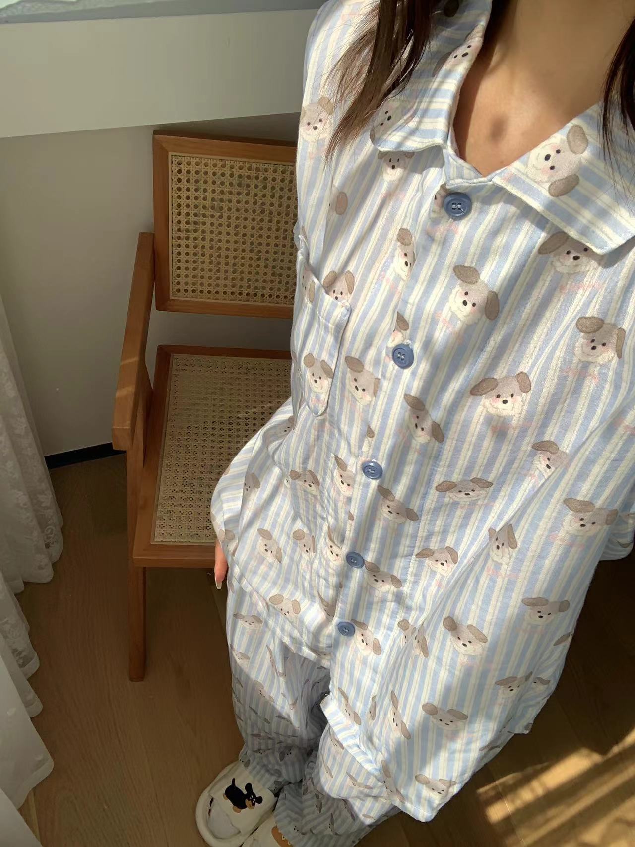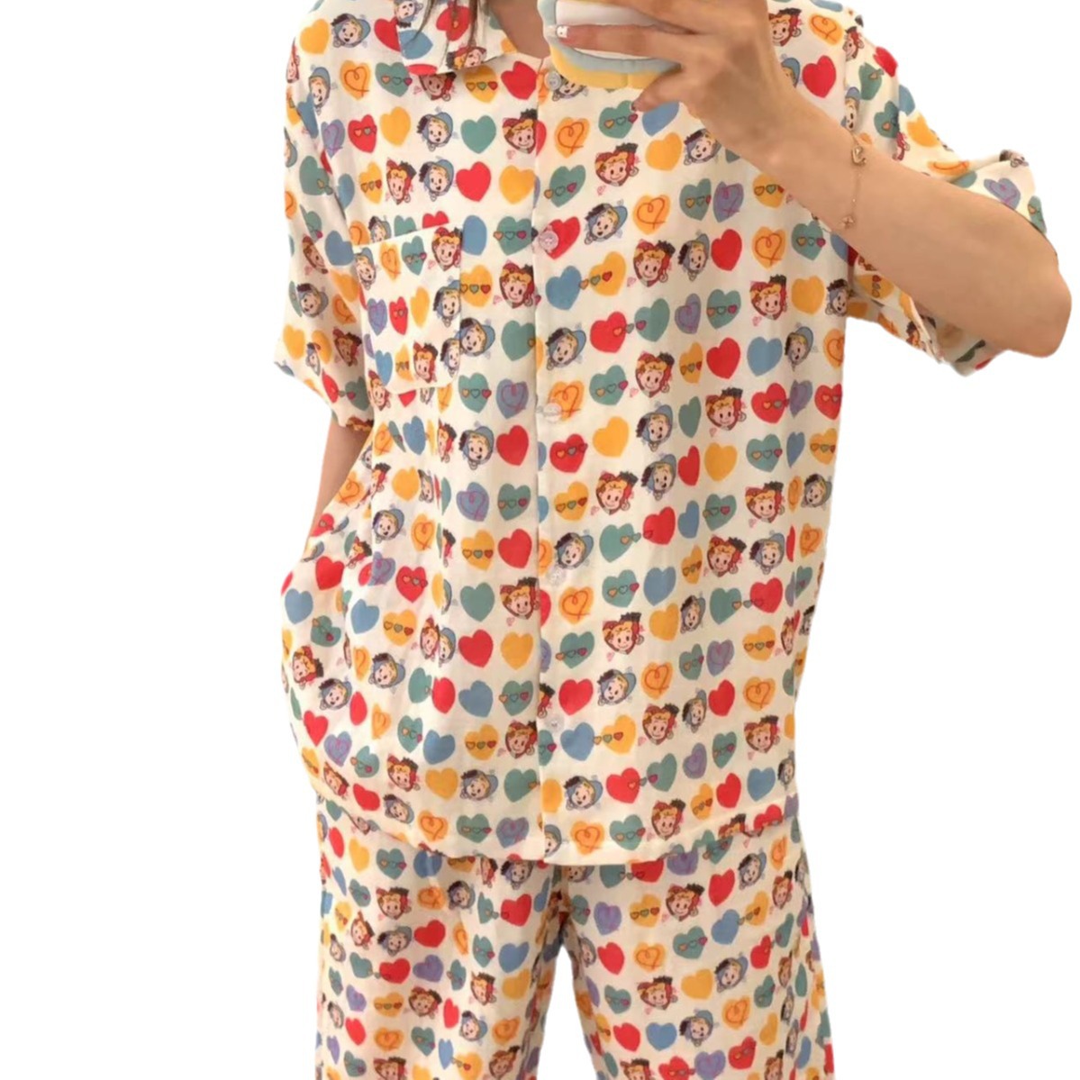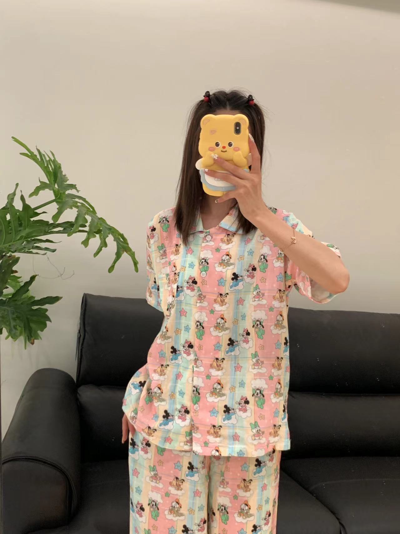 반팔 바지 세트 면 더블 레이어 거즈 잠옷 귀여운 달콤한 홈 옷 느슨한 느긋한 면화 잠옷