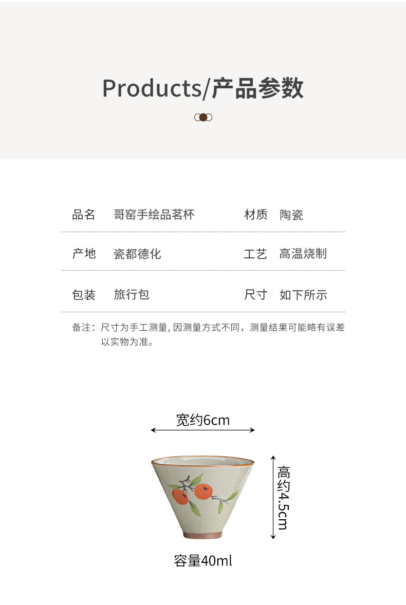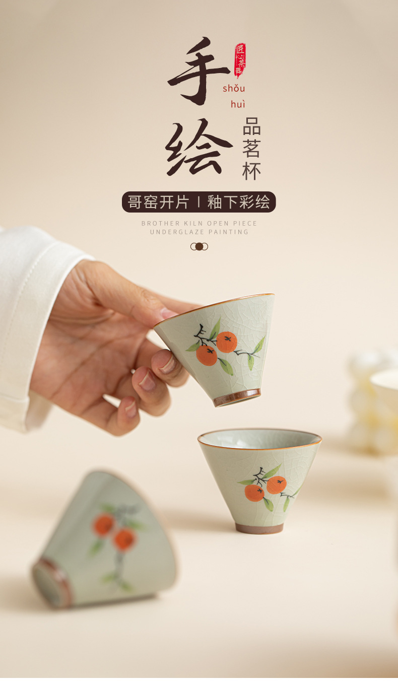 게야오 손으로 그린 찻잔 - 감
