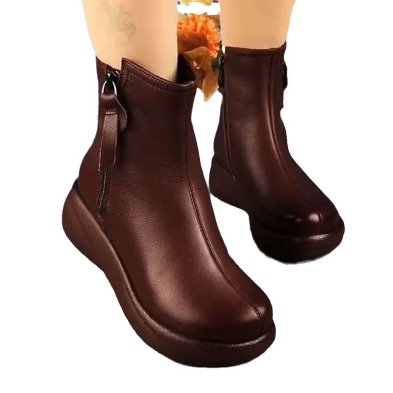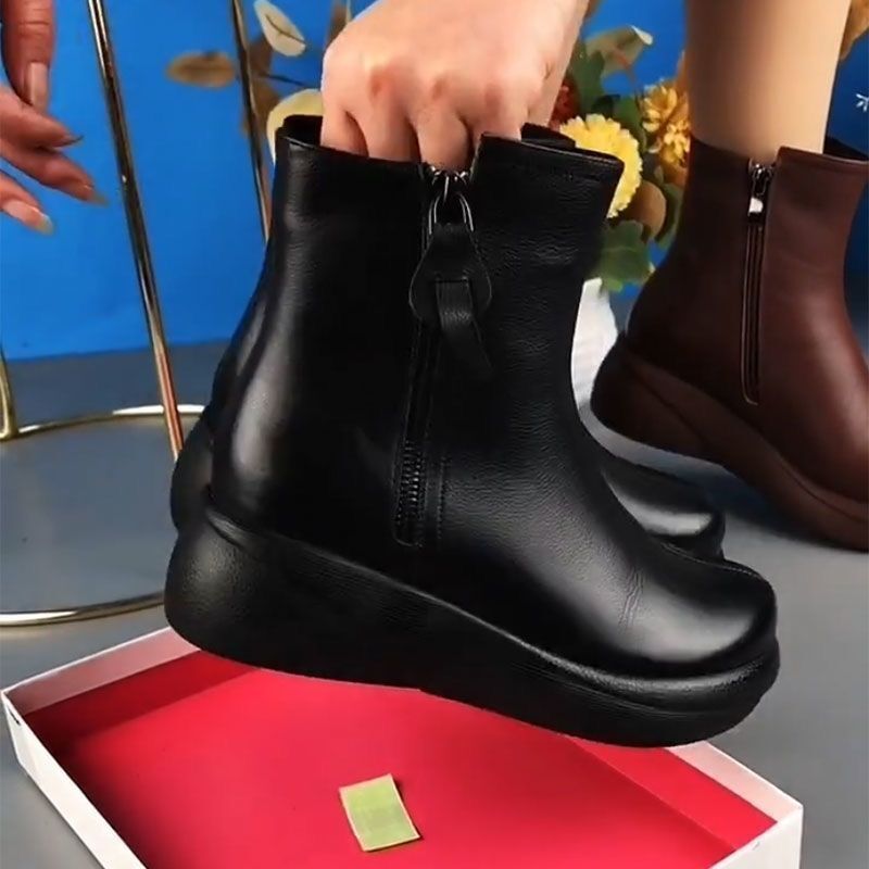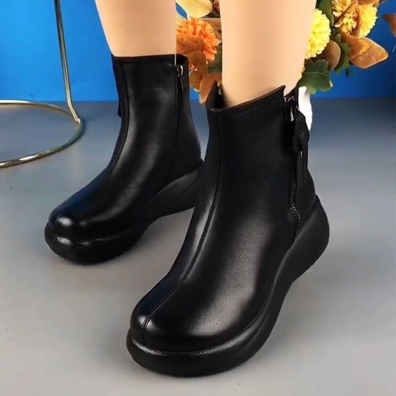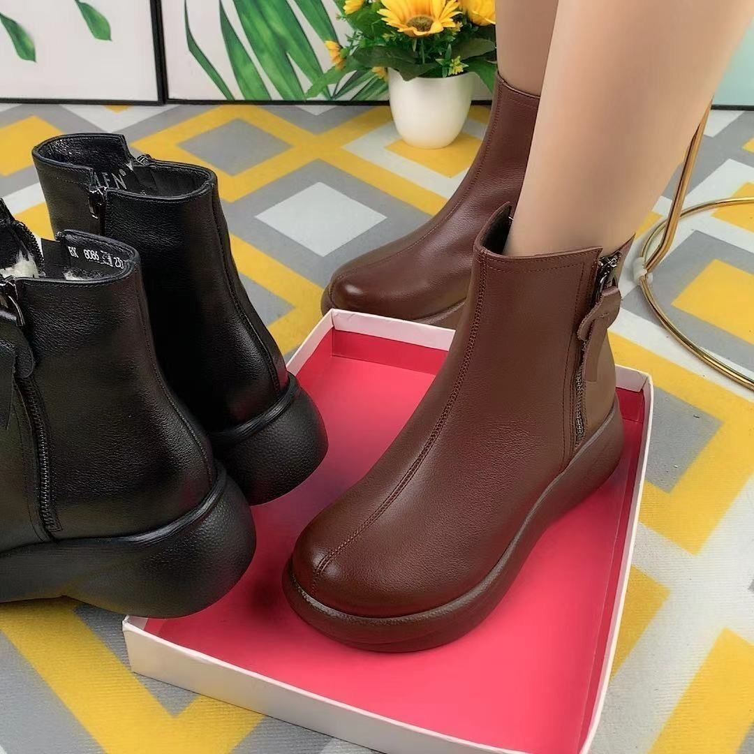 [가을과 겨울 폭발] 짧은 배럴 마틴 부츠 여성 2024 새로운 더블 지퍼 두꺼운 하단 소프트 짧은 부츠 여성용 가죽 부츠
