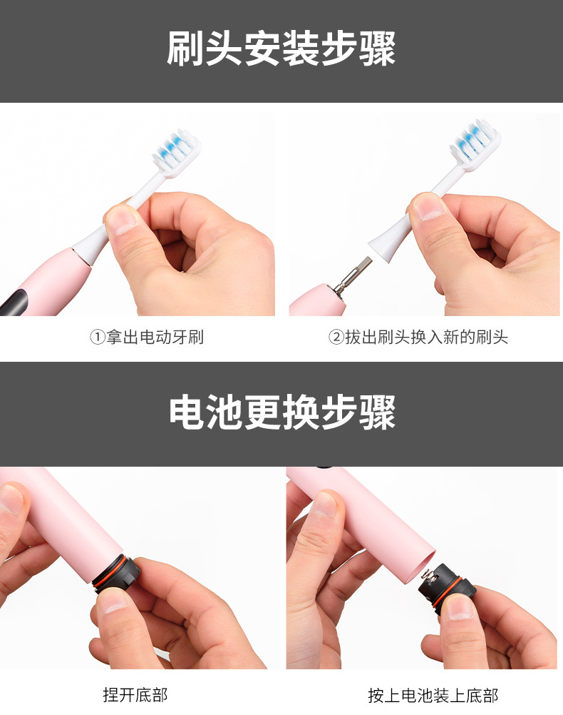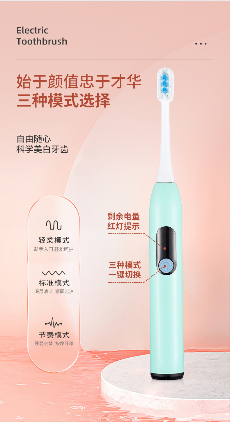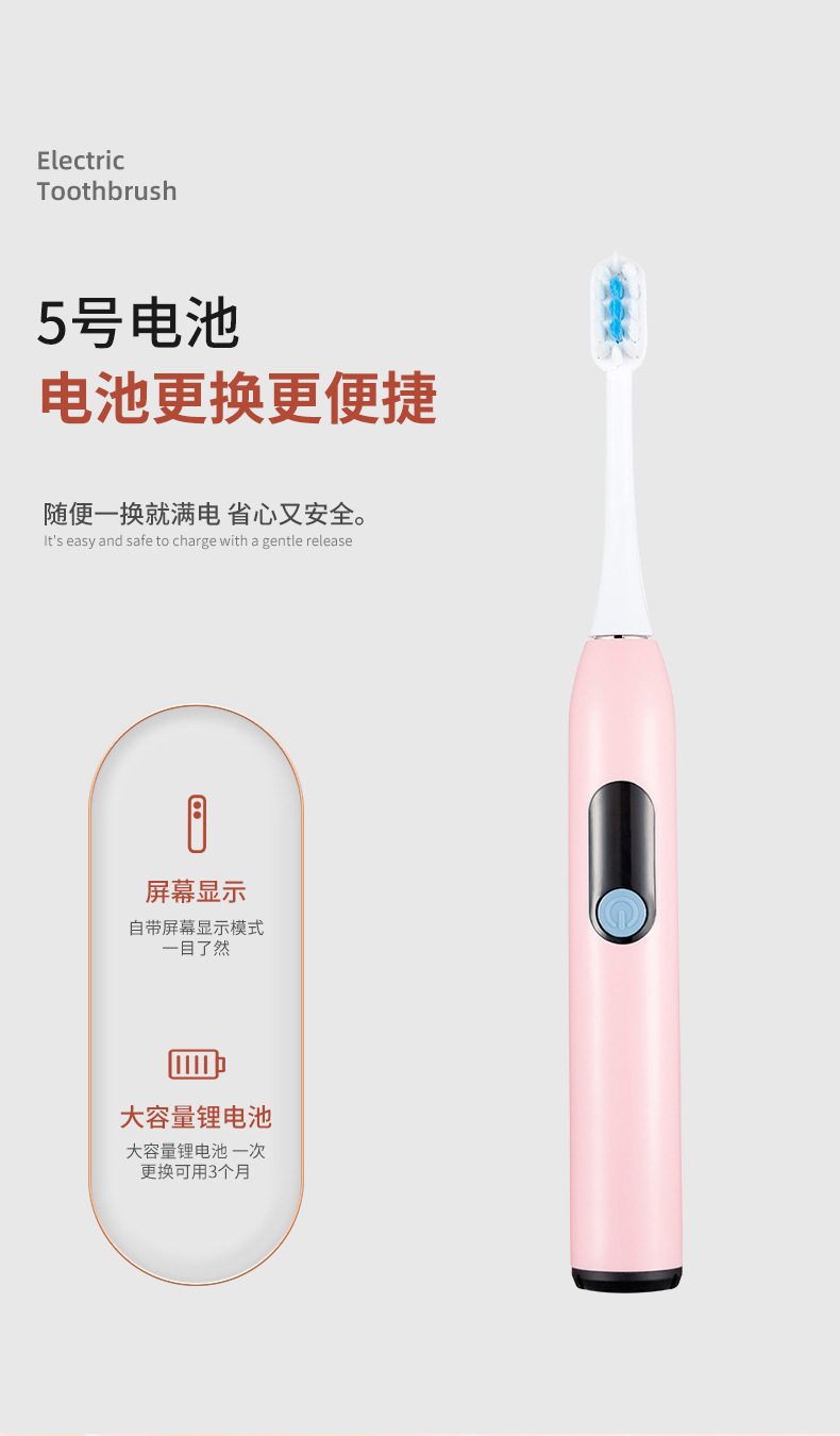 공장 도매 국경 신제품 전동 칫솔 부드러운 머리 스마트 성인 모델 배터리 모델 선물 상자 무선