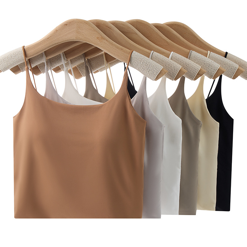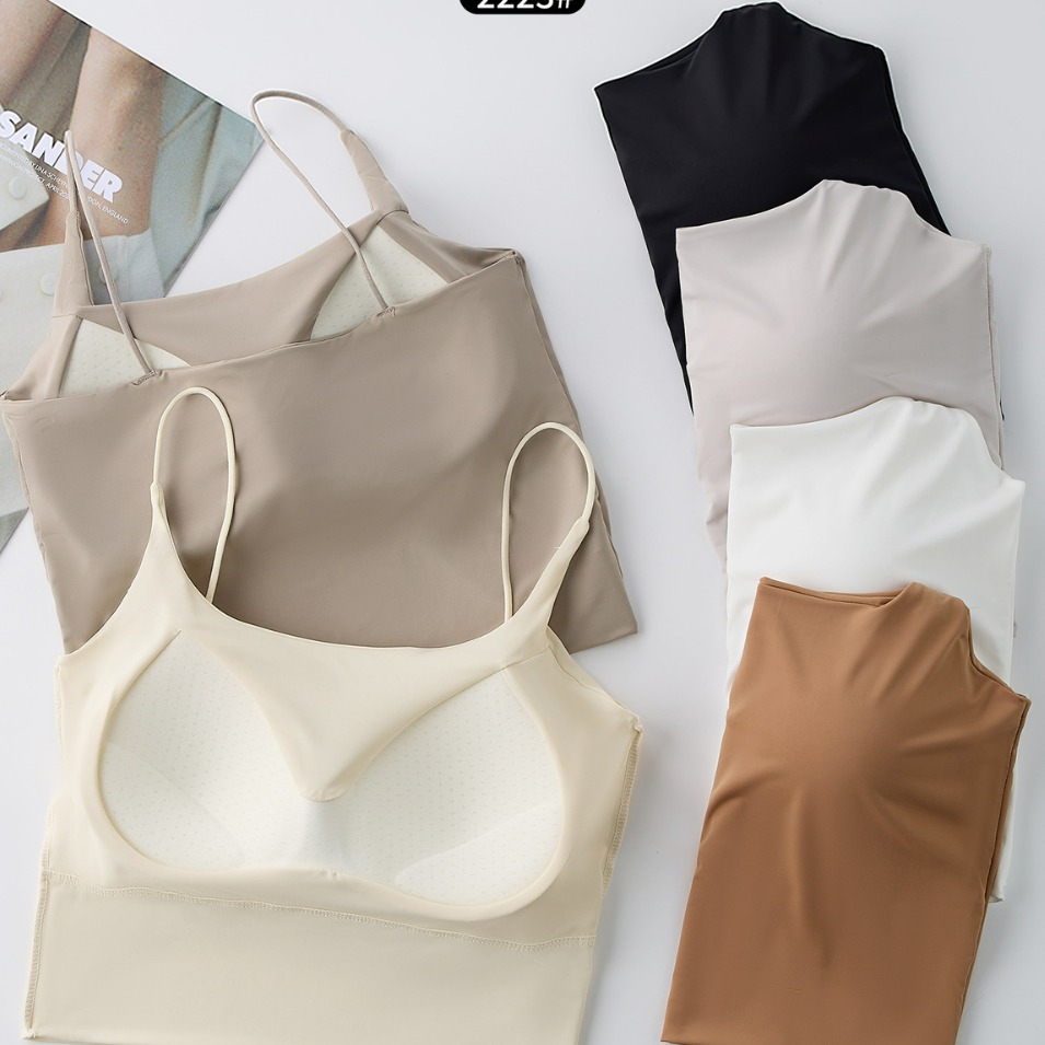 아이스 실크 추적없는 미디어와 롱 에디션 아름다운 백 속옷 여름 작은 카미 솔 조끼 가슴 패드 튜브 탑 섹시한 통기성 내부 브래지어
