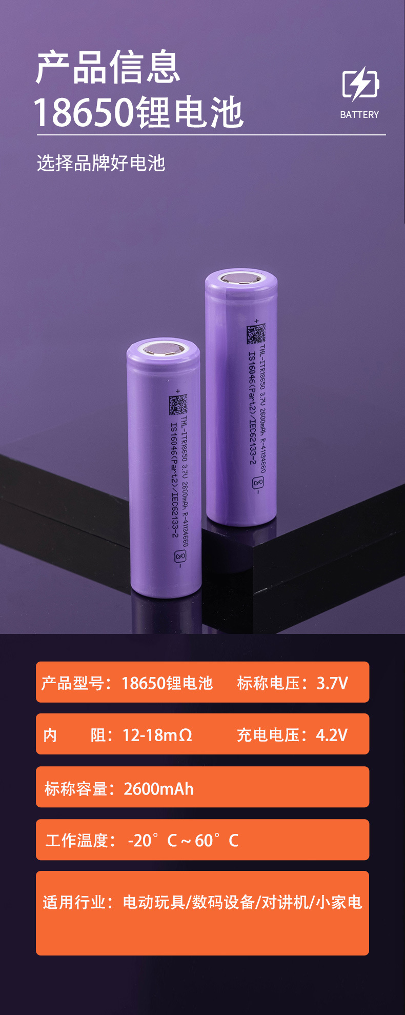 Tianeng 18650 리튬 배터리 2600mAh 충전 보물 전원 3C 배터리 충전 온수 가방 장난감 총 리튬 배터리