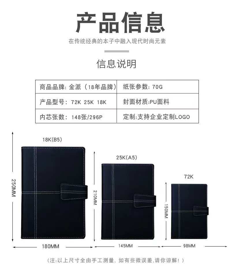 진파이 노트북 클래식 가죽 책 사무실 용품 회의 메모장 간단한 비즈니스 노트북 다기능 책